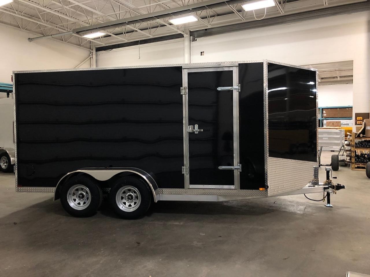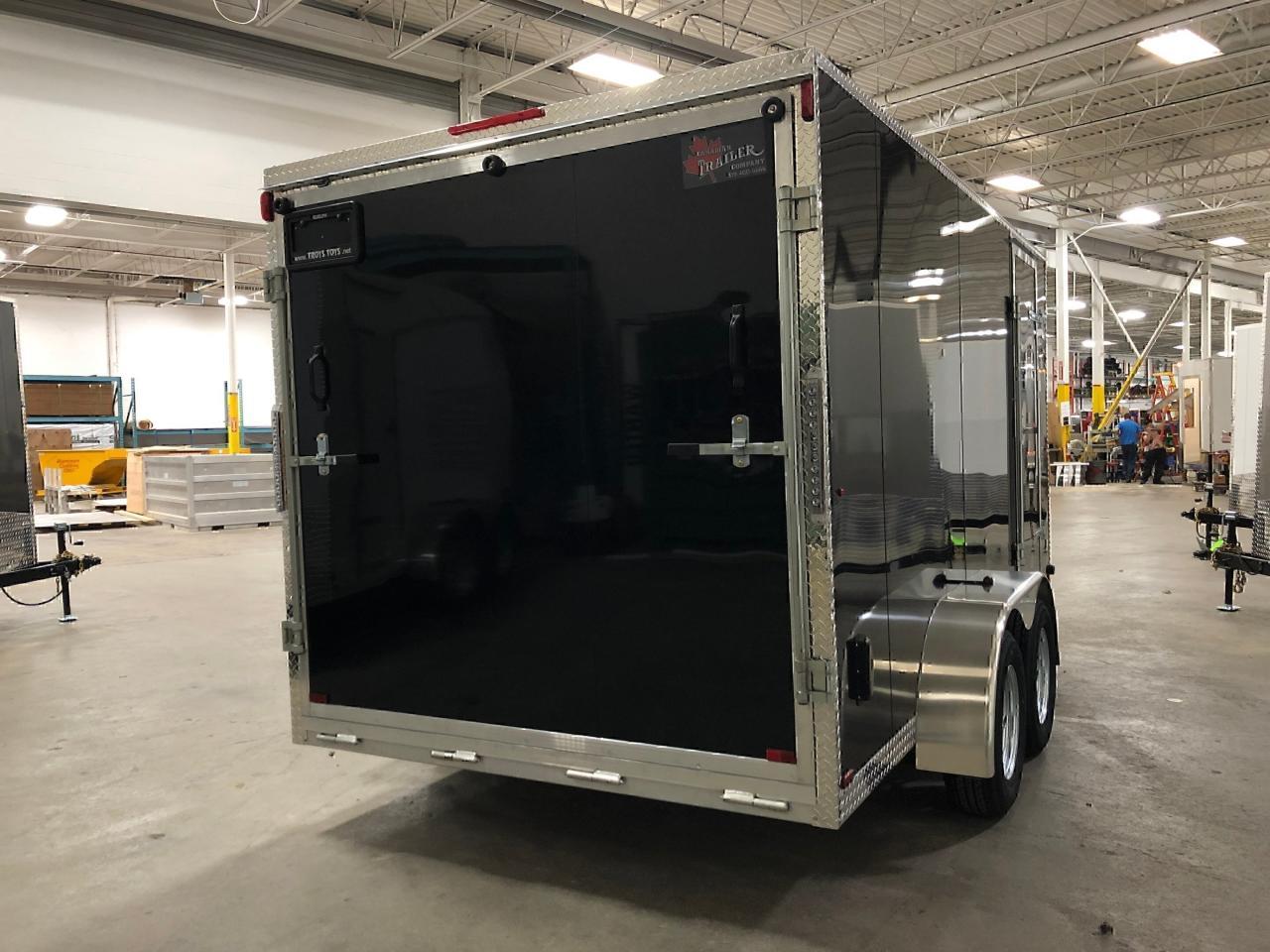 Text or Call 519-400-6666 for quick response! Canadian Built Trailers - Cargo Trailers Custom build your trailer at Troys Toys today! Visit our website www.troystoys.net for full inventory. OVER 100 TRAILERS IN STOCK!! *Prices do not include sales tax or registration* This Model: 2019 CTC 7X14 V-Nose (Size does not include the v-nose; size plus the v-nose) HEIGHT: 6'6" COLOUR: Black FRAME: Aluminum REAR DOOR: Ramp Door (W/ Spring Assist) 15 RADIAL TIRES ON: 15 Galvanized Wheels AXLE(S) TYPE: Tandem, dropped AXLE(S) CAPACITY: 3500lb/ea HITCH: 2 5/16 Ball OTHER OPTIONS: RV Latch Standard Options with all CTC Trailers: Screwless exterior cladding (.30) with checker plate trim all around Polished aluminum fenders One piece aluminum roof Angled diamond checker plate stone guard on v-nose 16 o/c square tubing frame (Roof, Walls & Floor) Curb-side man-door 3/4 fir plywood floor 3/8 fir plywood on walls Exterior L.E.D lighting Side Vents Bar Lock For the full 2019 Canadian Trailer Company Lineup, please visit www.canadiantrailercompany.net All trailers come with a 3-year manufacturers warranty. Some conditions apply. See store for details.