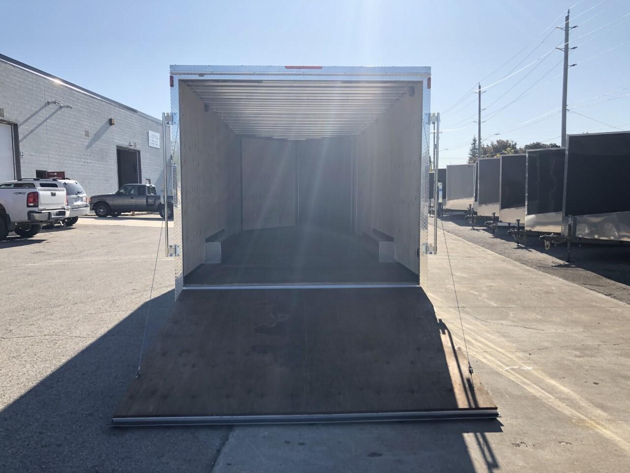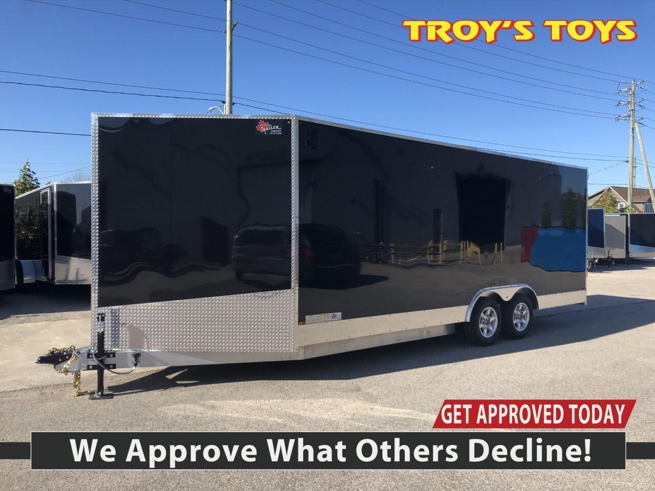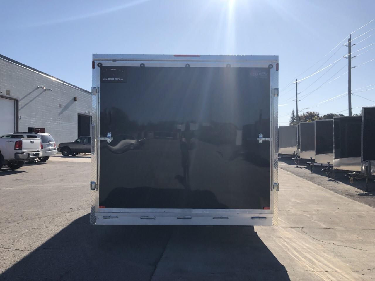 Text or Call 519-400-6666 for quick response! Canadian Built Trailers - Cargo Trailers Custom build your trailer at Troys Toys today! Visit our website www.troystoys.net for full inventory. OVER 100 TRAILERS IN STOCK!! *Prices do not include sales tax or registration* This Model: 2020 CTC 8.5X20 V-Nose (Size does not include the v-nose; size plus the v-nose) HEIGHT: 7' COLOUR: Black FRAME: Aluminum REAR DOOR: Ramp 15 RADIAL TIRES ON: 15 Galvanized Wheels AXLE(S) TYPE: Tandem, dropped AXLE(S) CAPACITY: 3500lb/ea HITCH: 2 5/16 Ball JACK: 8,000 Lb. OTHER OPTIONS: RV Latch, Pressure Treated Plywood Flooring, Extended V-Nose 5', Front Ramp Standard Options with all CTC Trailers: Screwless exterior cladding (.30) with checker plate trim all around Polished aluminum fenders One piece aluminum roof Angled diamond checker plate stone guard on v-nose 16 o/c square tubing frame (Roof, Walls & Floor) Curb-side man-door 3/4 fir plywood floor 3/8 fir plywood on walls Exterior L.E.D lighting Side Vents Bar Lock For the full 2020 Canadian Trailer Company Lineup, please visit www.canadiantrailercompany.net All trailers come with a 3-year manufacturers warranty. Some conditions apply. See store for details.