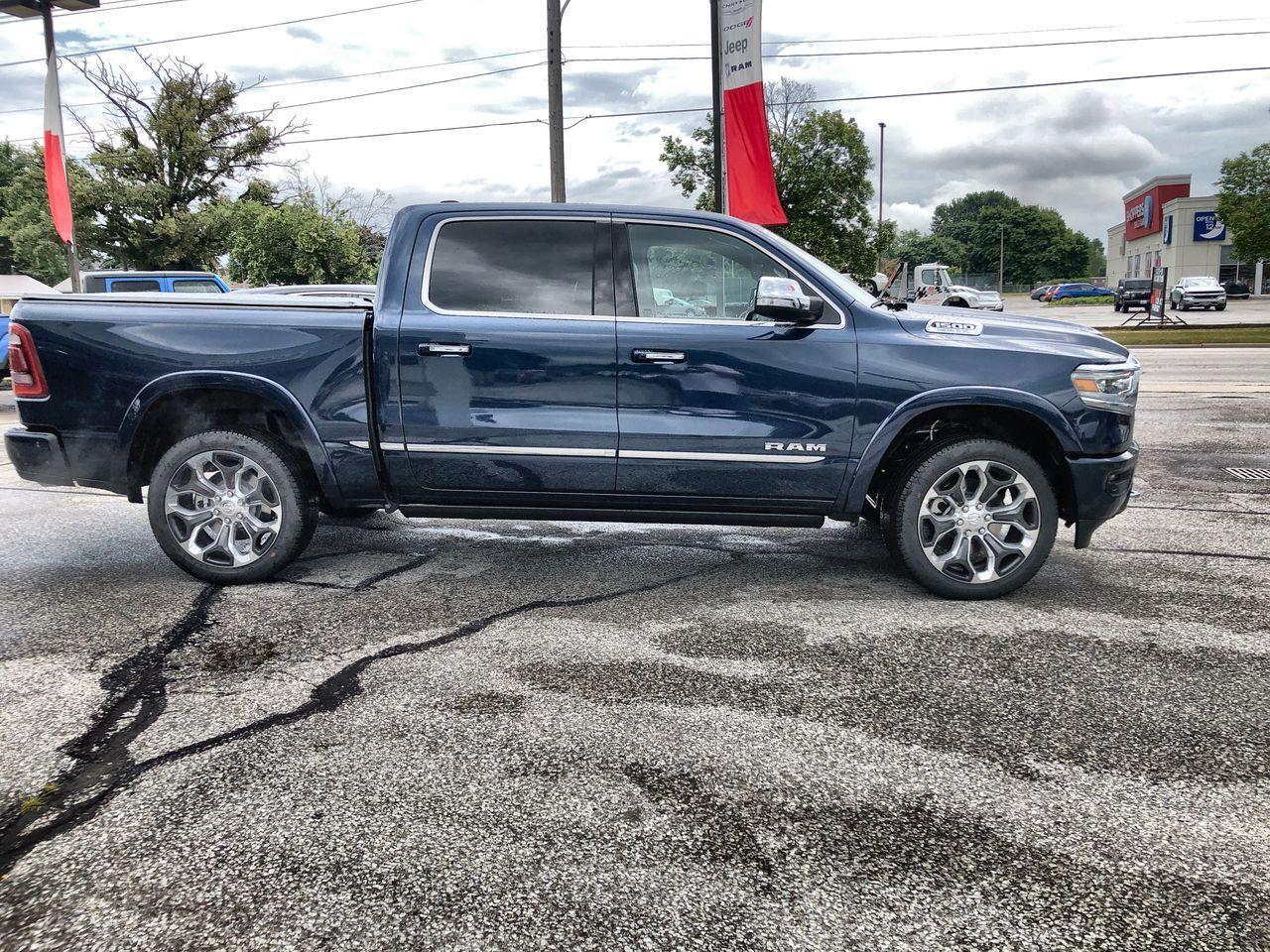 This RAM 1500 Limited, with a 8 Cylinder Engine engine, features a TRANSMISSION: 8-SPEED AUTOMATIC transmission, and generates 11 highway/16.1 city L/100km. Find this vehicle with only 50 kilometers! RAM 1500 Limited Options: This RAM 1500 Limited offers a multitude of options. Technology options include: 12" Touchscreen, Disassociated Touchscreen Display, GPS Antenna Input, GPS Navigation, Voice Recorder. Safety options include Rain Detecting Variable Intermittent Wipers, Systems Monitor, Airbag Occupancy Sensor, Curtain 1st And 2nd Row Airbags, Dual Stage Driver And Passenger Front Airbags. Visit Us: Find this RAM 1500 Limited at Bayview Chrysler Dodge today. We are conveniently located at 255 Indian Road South Sarnia Ontario N7T 3W5.