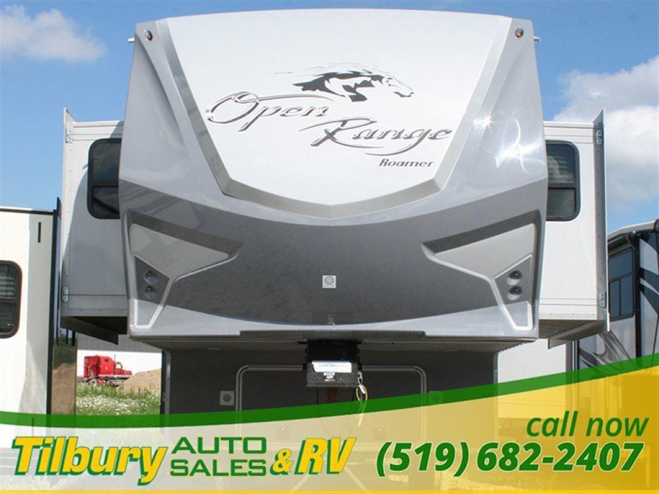 Enjoy the spaciousness of this Open Range Roamer fifth wheel by Highland Ridge RV featuring FIVE slides for more interior space, a front wall entertainment center and living space, plus a bath and a half. You and your family will find all the accommodations needed to make any camping trip enjoyable.