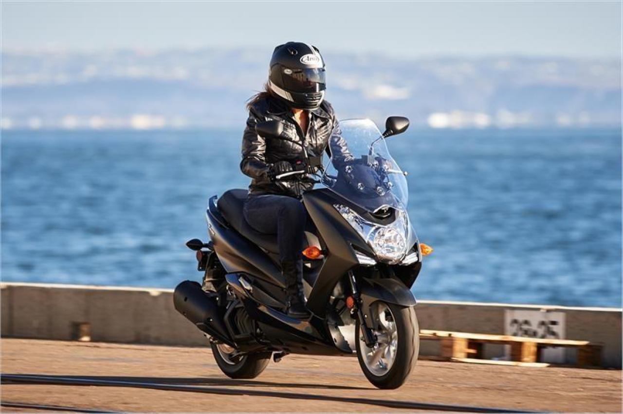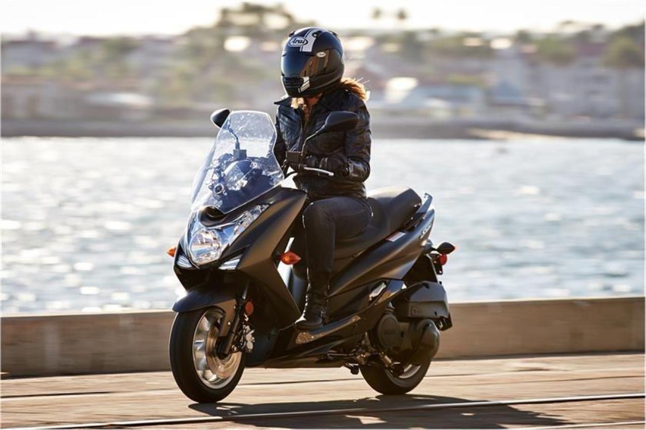 Hidden under the comfortable 2 person seat is a large 32 litre storage area capable of holding an open face or half helmet plus a rain suit and a laptop computer. Front & rear disc brakes provide solid stopping power while the bright halogen headlight surrounded by LED position lights and brilliant LED tail light add extra visibility in traffic.