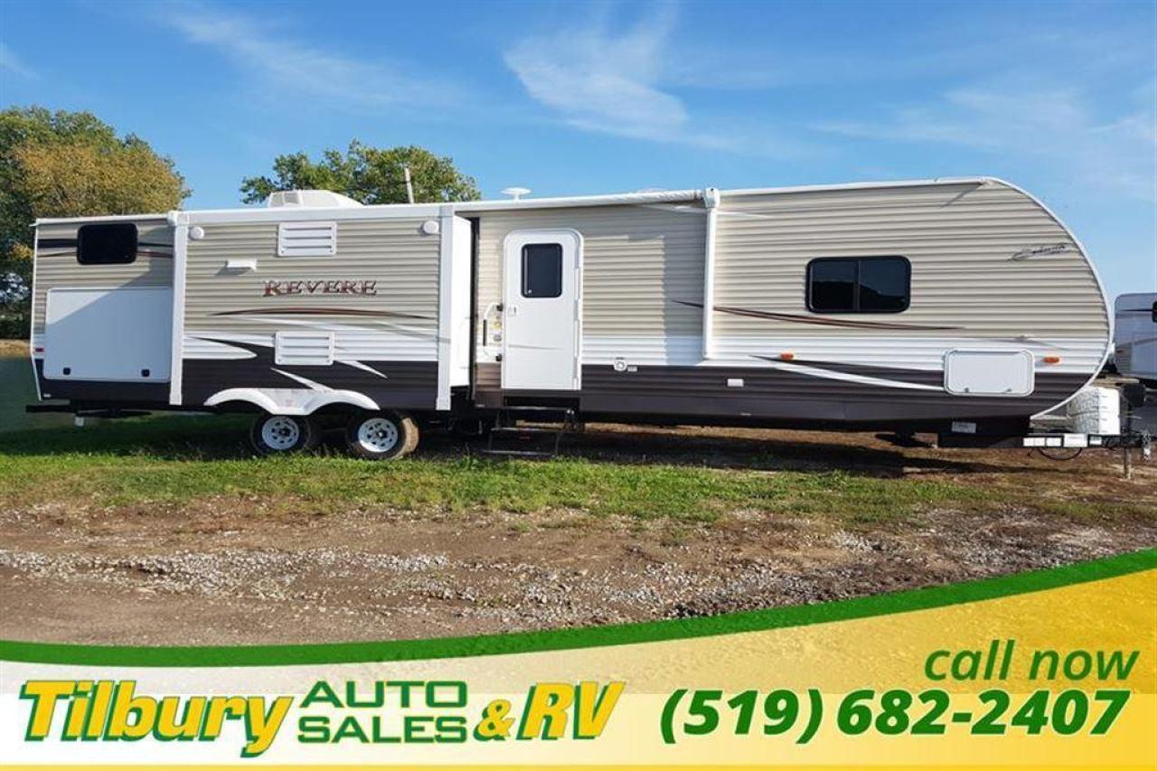 If a kitchen island, wide open floor space, and sleeping for nine sounds great, then you will want to check out this Revere 33BH travel trailer from Shasta!