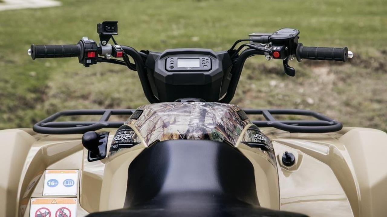 The all-new Kodiak 450 chassis styling fits a roomy riding position, low centre of gravity and a light steering effort into one complete compact package.