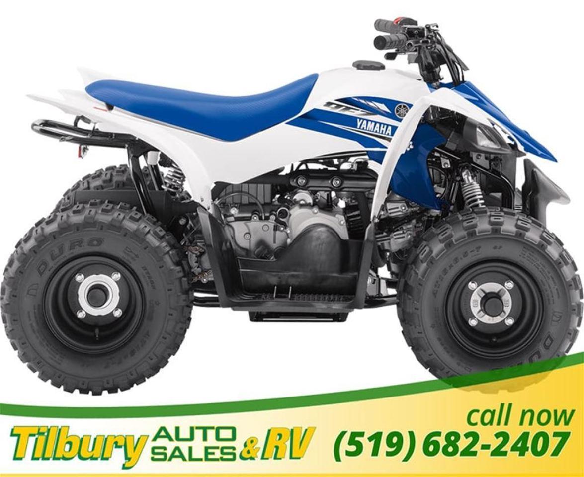 Contact Tilbury Auto Sales at 519-682-2407 or visit our lot today at 20600 HWY #42, TILBURY, ONTARIO. N0P 2L0. This is where the passion for ATVing begins. Memories are made when youngsters go on their first ride. Get your little one started on the right tread with a Yamaha Raptor 90 or YFZ50. With electric start and adjustable speed limiters, these youth ATVs will make learning to ride a confidence instilling and fun family activity! TERRAINABILITY Rugged Duro tires offer good grip in a variety of conditions 60mm of front wheel travel and 51mm on the rear help to smooth out the ride Easy to adjust drum brakes front and rear give strong and consistent stopping power. POWER 49.4cc, air-cooled, 2-valve single cylinder, engine is ultra-reliable with excellent fuel economy Fully automatic continuously variable transmission (CVT) for smooth starts and good acceleration Parental controlled RPM limiter helps regulate speed for a variety of rider skill levels DESIGN Classic Yamaha performance styling and design based on the class-leading YFZ450R Durable, sport-inspired entry-level chassis provides a spacious and comfortable riding position Easy to use and intuitive handlebar controls provide a fun and confidence inspiring ride Contact Tilbury Auto Sales at 519-682-2407 or visit our lot today at 20600 HWY #42, TILBURY, ONTARIO. N0P 2L0. Come in and speak to one of our sales professionals to book a test drive today. With Special Rate Auto Financing, a 99% Credit Approval OAC, and a variety of warranty plans suited to your needs this one's ready to drive off the lot today! Feel free to apply online or stop by and see one of our sales specialists and let us put you in the driver seat today. While every reasonable effort is made to ensure the accuracy of this data, we are not responsible for any errors or omissions contained on these pages. Please verify any information in question with a dealership sales representative. Serving, Windsor, Essex, Tilbury, Chatham, Blenheim, Rodney, St. Mary's, St. Thomas, Leamington, Harrow, Amherstburg, Kingsville, Wheatley, Belle River, Lakeshore, Wallaceburg, Sarnia,London, Lambton, Lambton County, Lambeth, Essex County, Middlesex, Middlesex County, Rodney, Dresden, Thamesville, Lasalle, Watford, Ailsa Craig, Glencoe, Alvinston, Parkhill, Strathroy, Mt.Brydges, West Lorne, Dutton, Aylmer * Prices in Ontario, include OMVIC/AMVIC fee (where applicable), dealer administration and other retailer charges and exclude taxes, license, insurance, plus HST* * While every reasonable effort is made to ensure the accuracy of this information, we are not responsible for any errors or omissions contained on these pages. Please verify any information in question with Tilbury Auto Sales & RV.