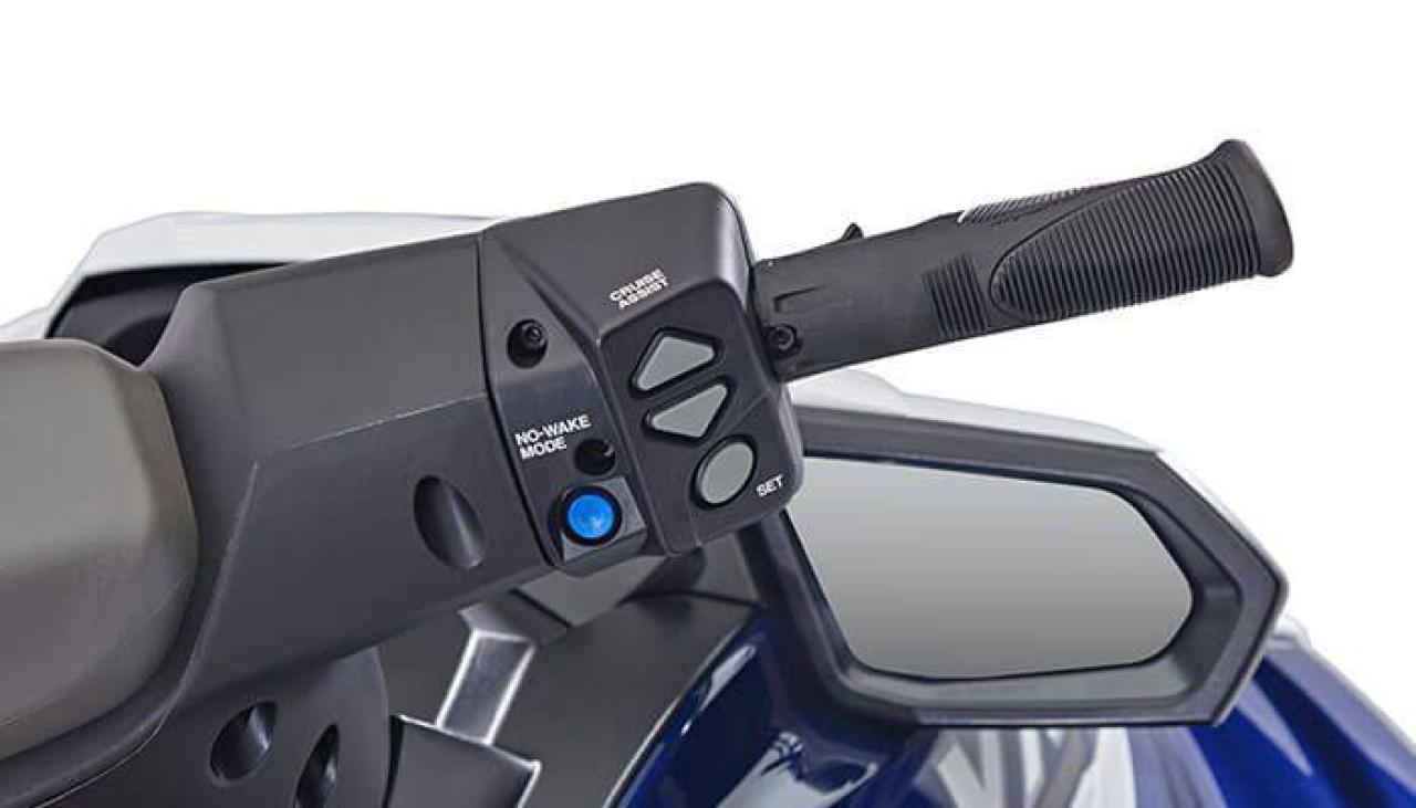 The theatre-style three-person Cruiser Seat features double top stitching designed to provide plush accommodations for all-day touring. Cruise Assist reduces throttle tension and No Wake Mode allows effortless navigation through controlled areas.