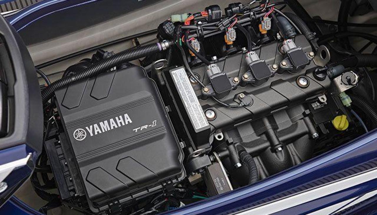 VX Cruiser is powered by Yamaha's all-new TR-1 four-stroke marine engine. The three-cylinder, 1049cc TR-1 is 13 per cent more powerful than the Yamaha MR-1 engine that it is replacing, while being 40 per cent smaller in size and 20 per cent lighter in weight.