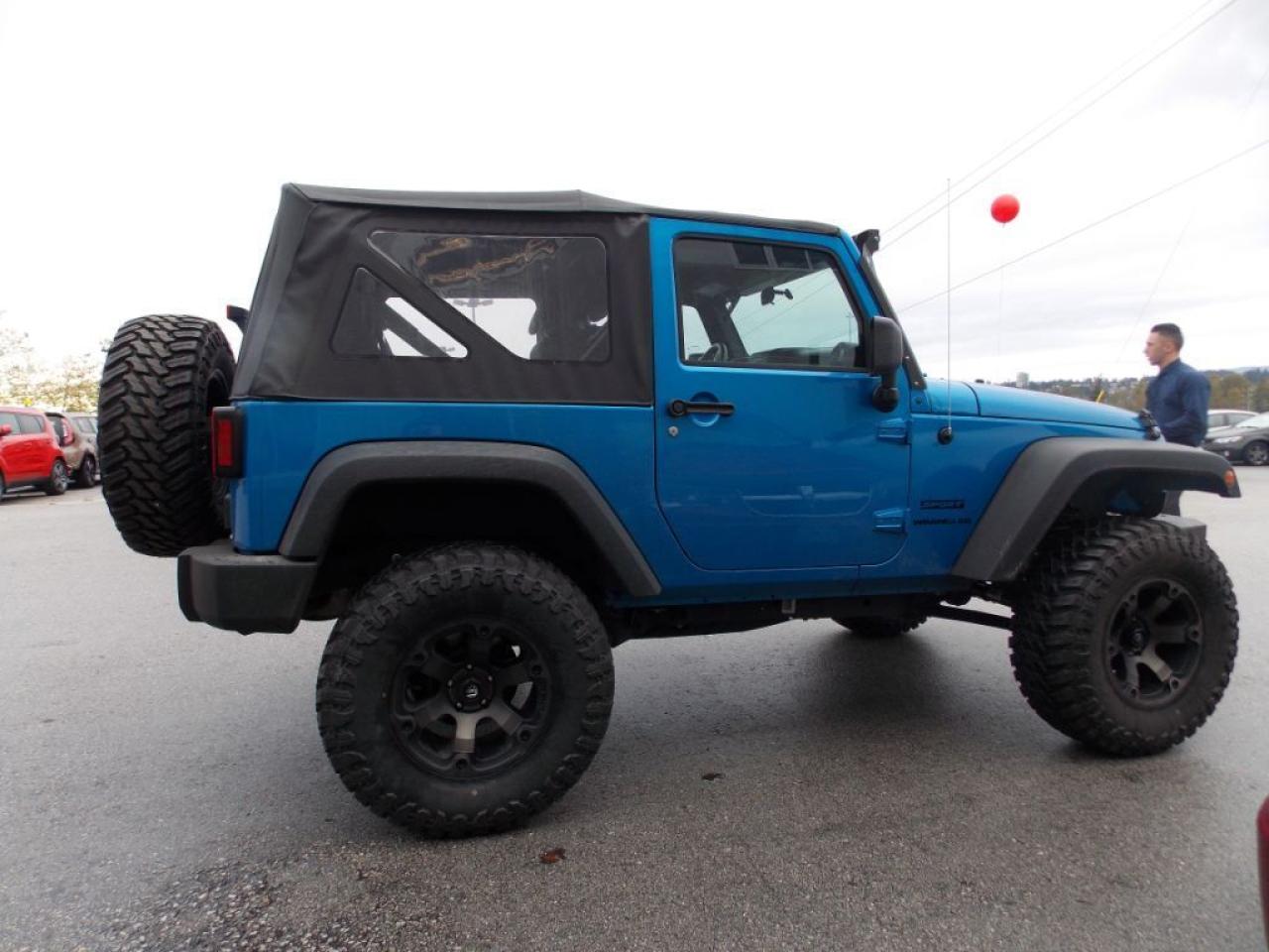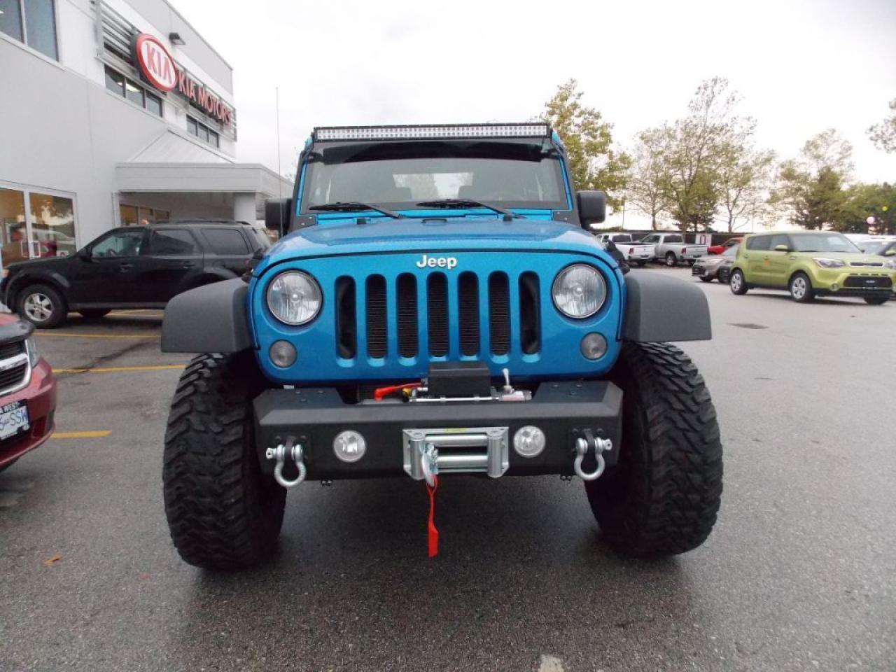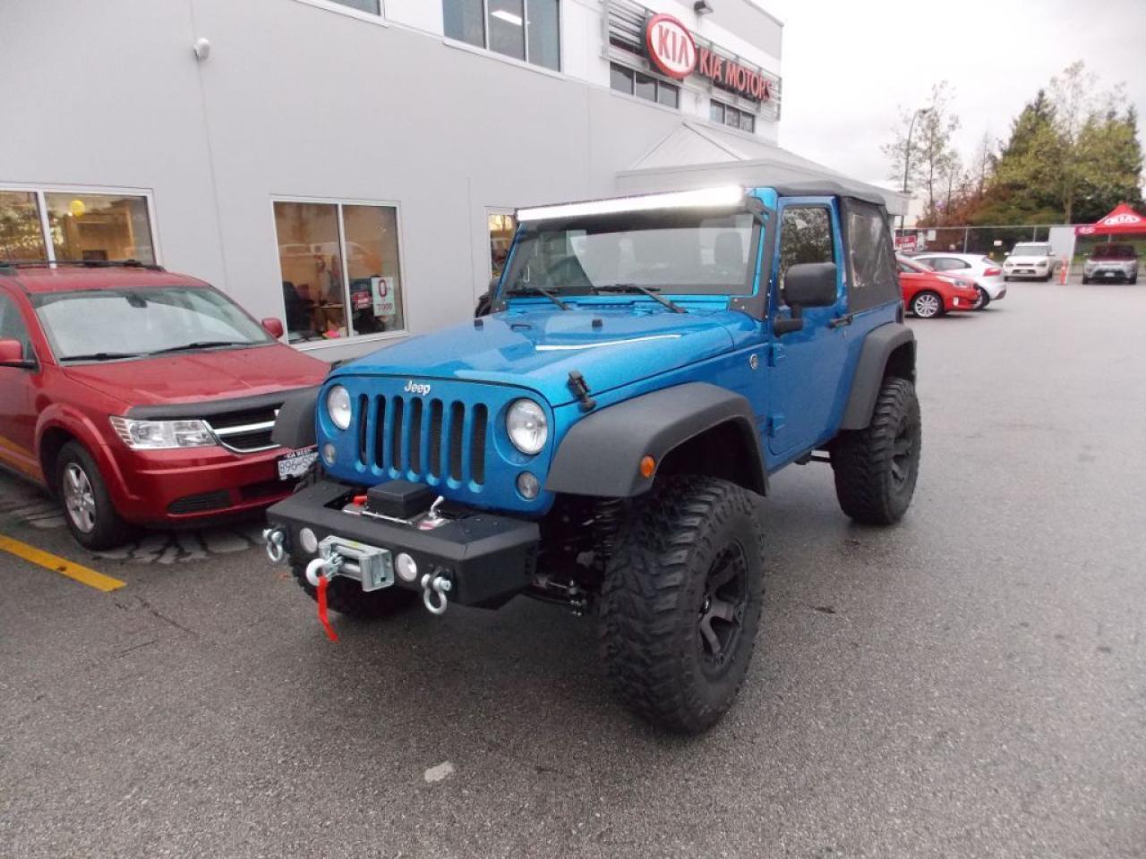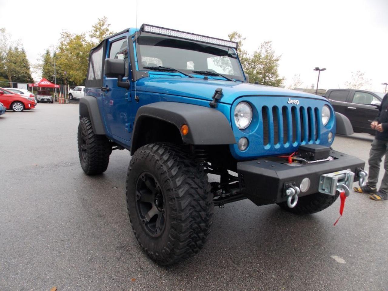 This 2014 Jeep Wrangler Sport (soft top) comes with alloy wheels, lift kit, Aurora LED light bar, tow winch, fog lights, spare tire, soft top, steering wheel media controls, CD player, AM/FM radio, rear defrost and so much more!