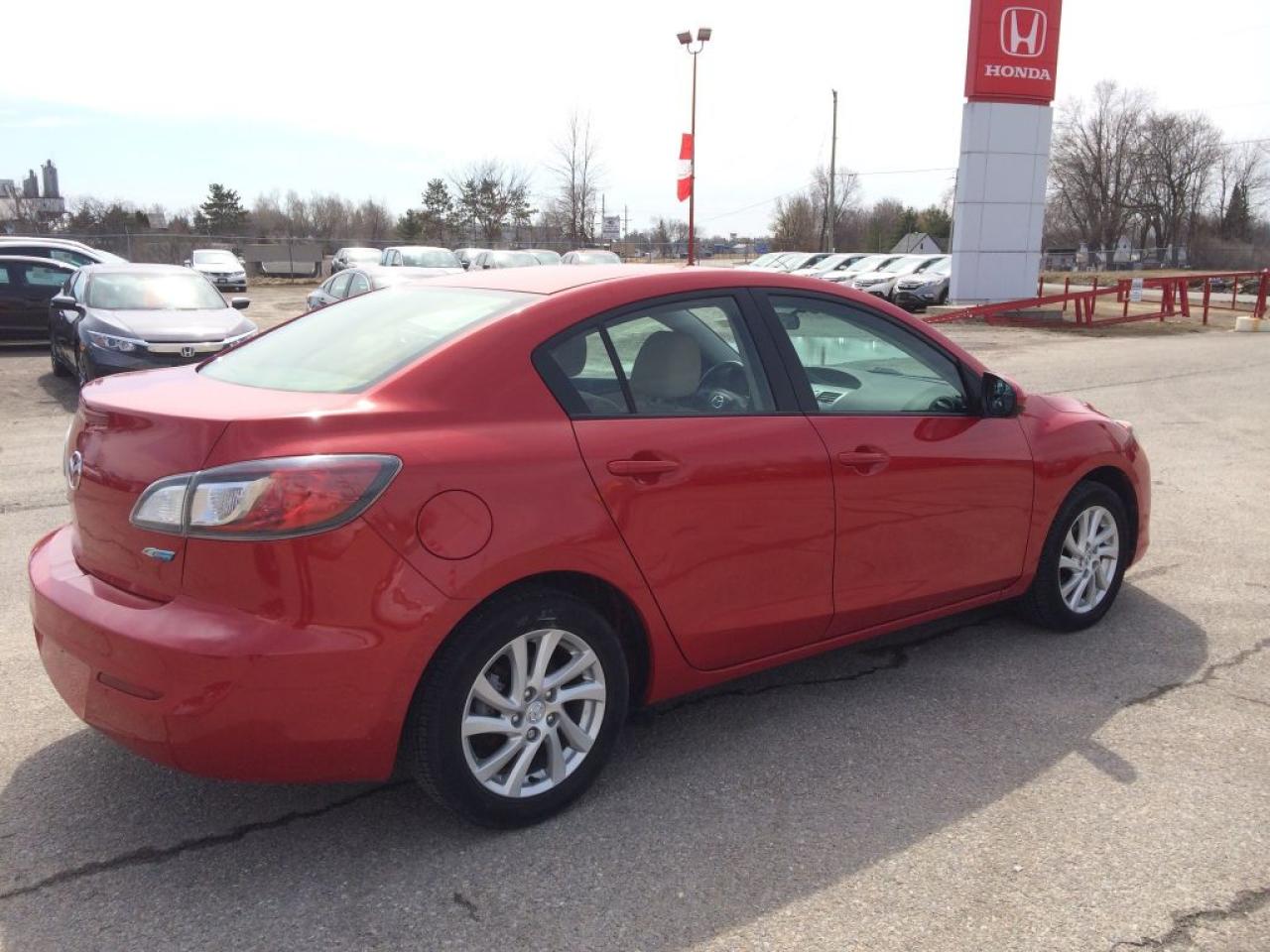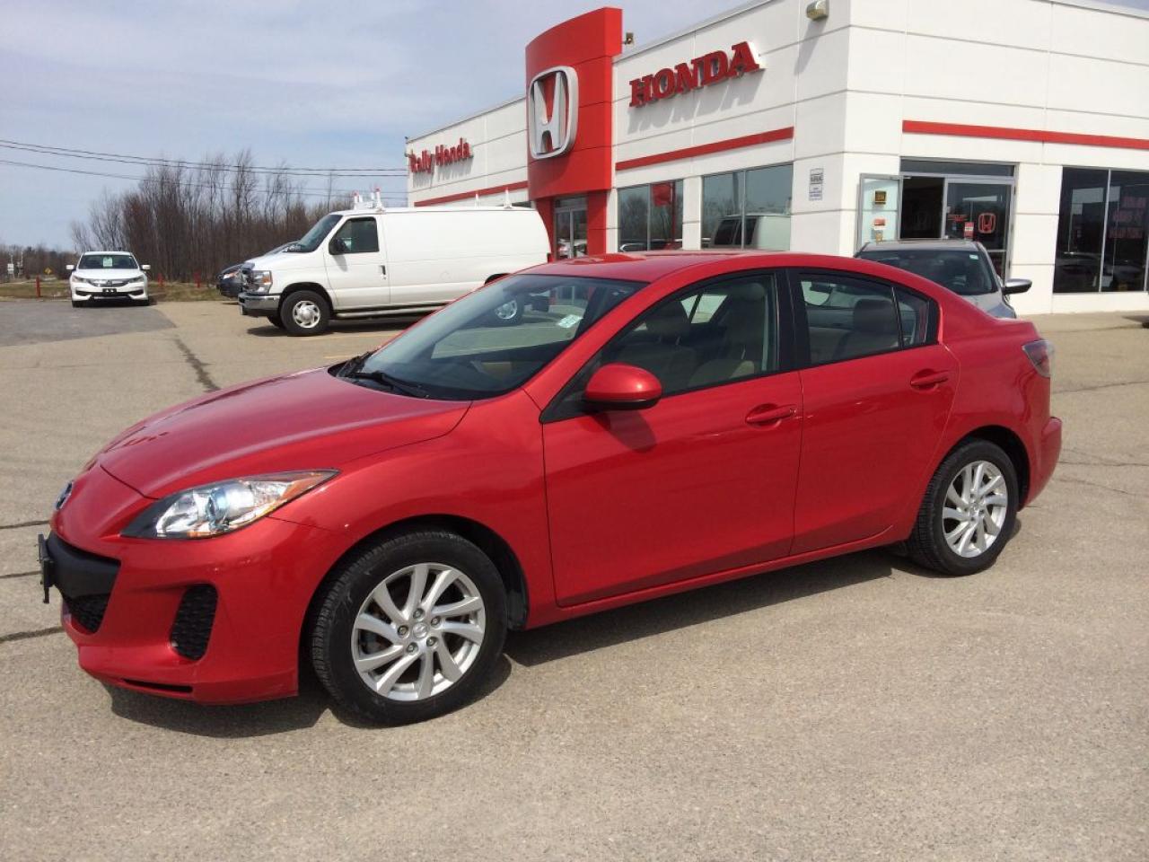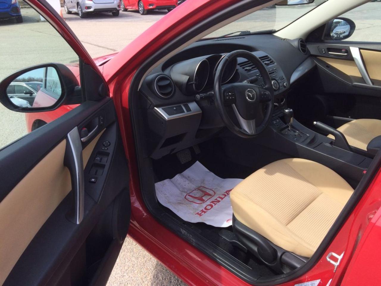Local trade Mazda 2.0L 4 cylinder with SkyActiv Technology and no accident history. Great features such as heated seats, bluetooth hands free, 16" Alloy wheels, Cruise, Auto with tiptronic capability, and more. Rare color combo of Red on Tan interior.
