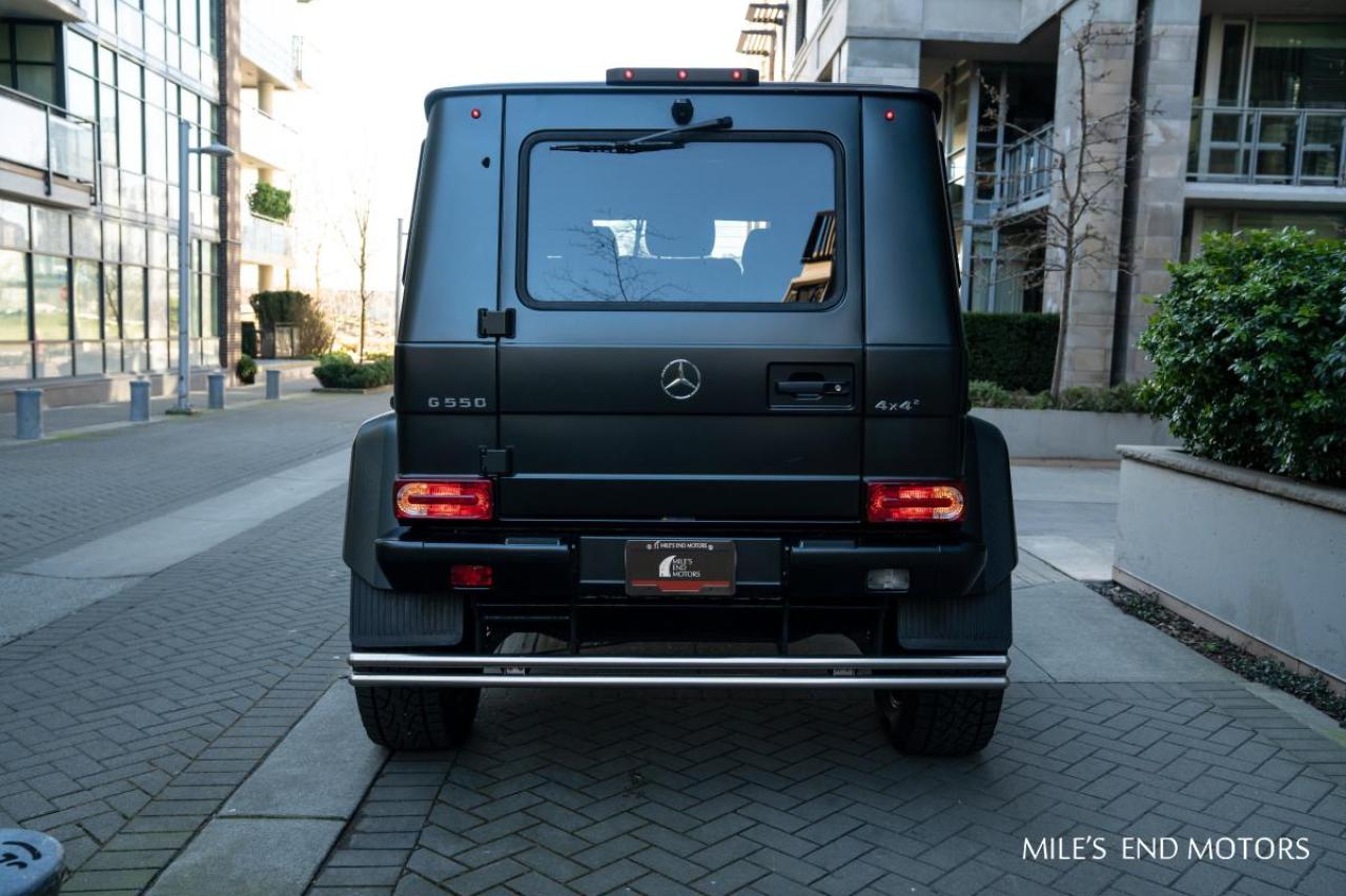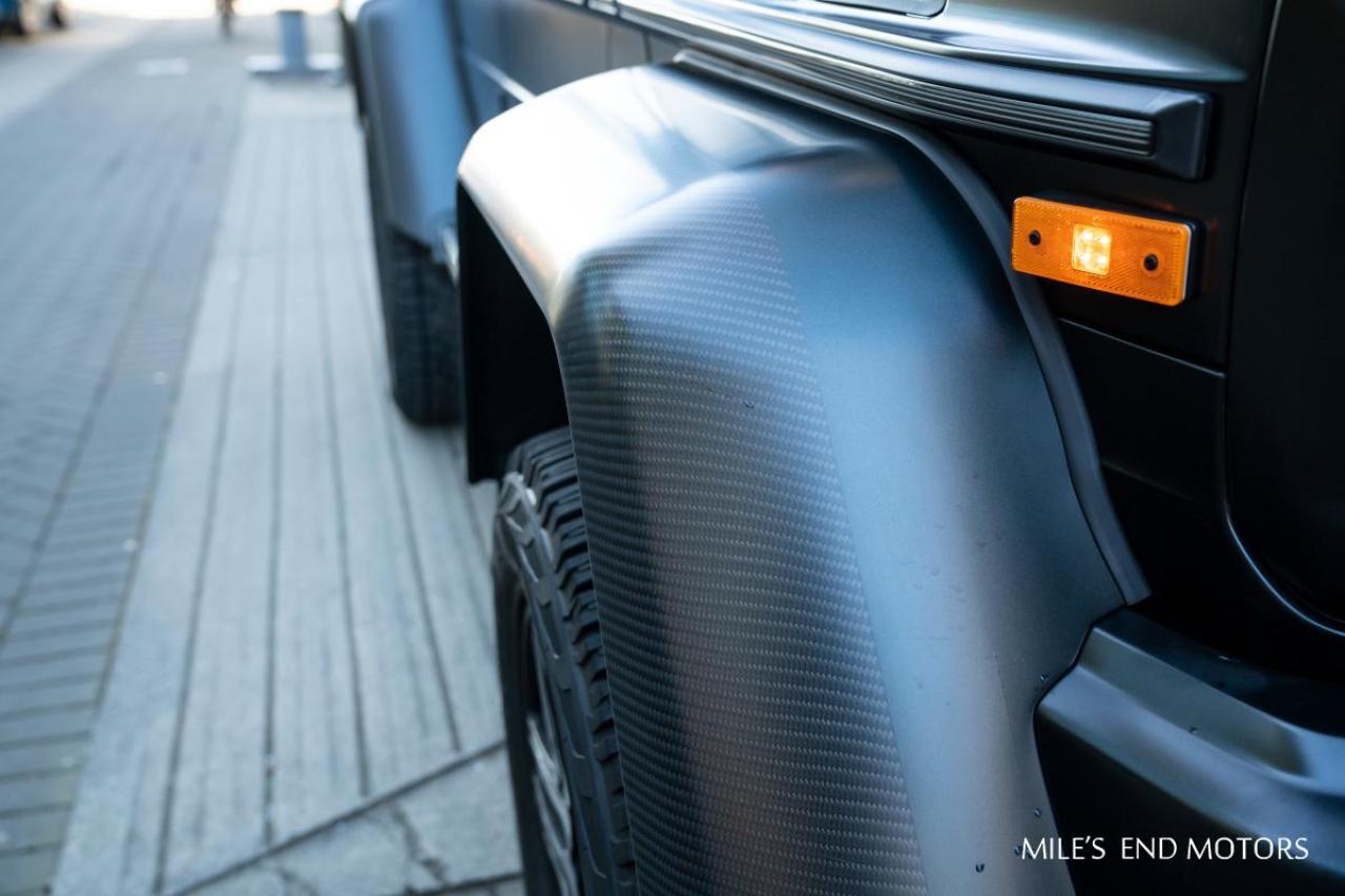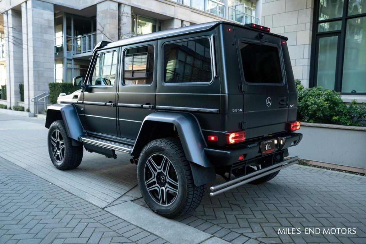 This G 550 comes with AMG carbon fibre trim, designo black leather/DINAMICA and an exclusive high gloss electric beam paint. This piece was professionally wrapped in black. Finished with brabus lights, front grill and optional side step. Only 8,000kms and yours for $289,000.