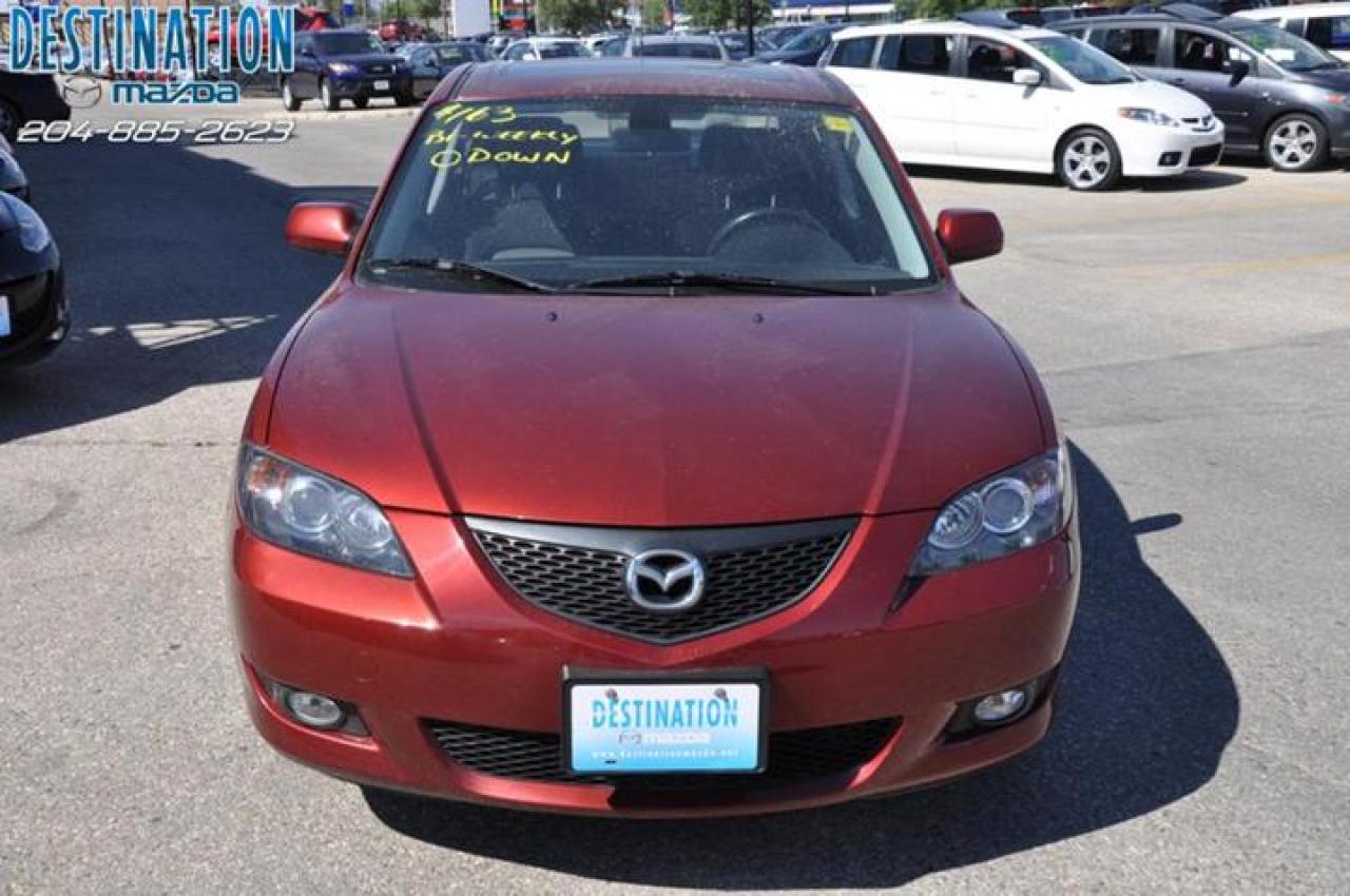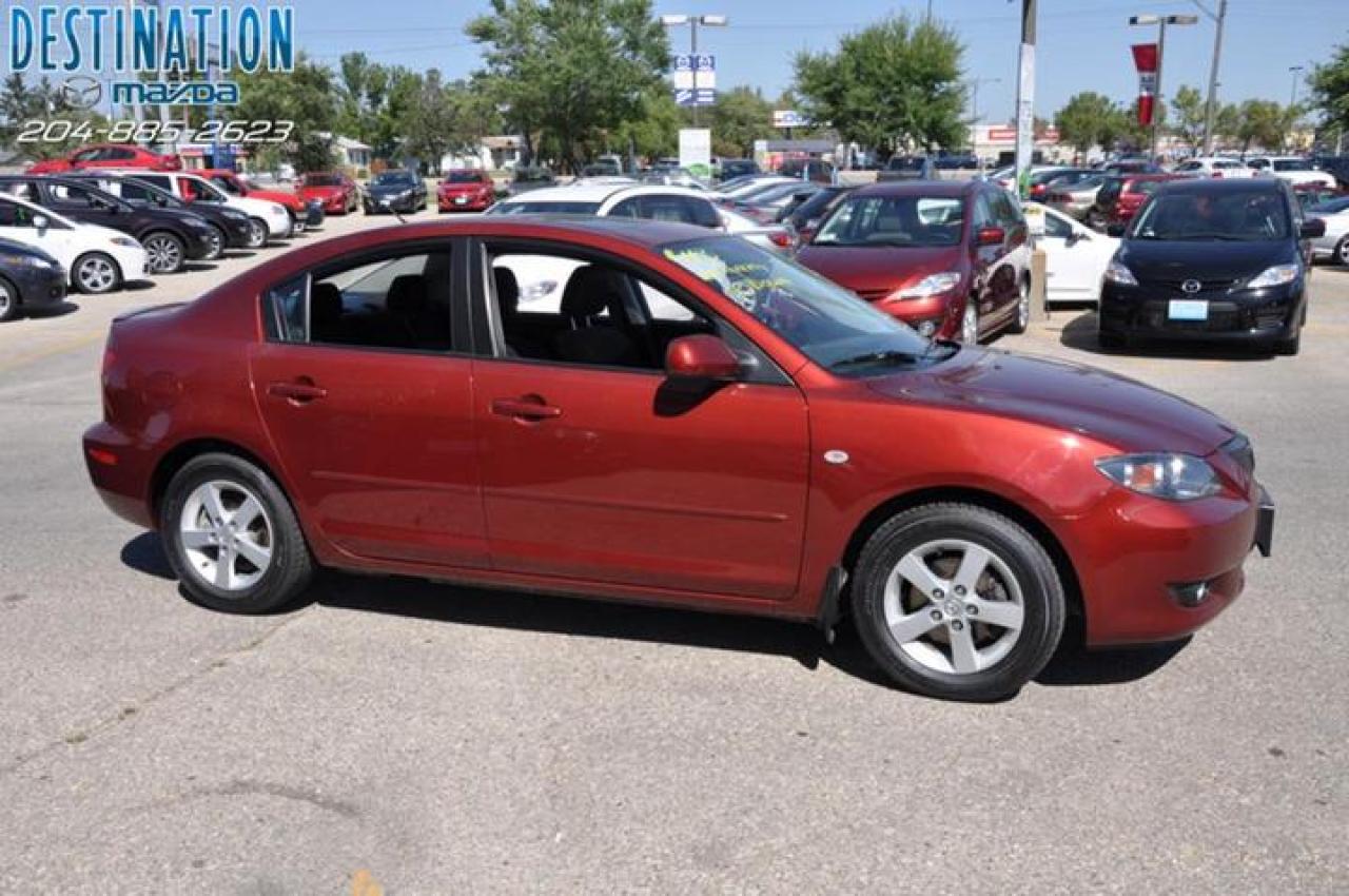 This vehicle is at Destination Mazda so call 1-888-790-7530 or visit us at 3690 Portage Ave! 2006 Mazda 3 GS comfort package that includes Sunroof, all the power options and more. This car is deep red in color and has Aluminum wheels with new tires. Only 65000 ks on this one and the price is $14990. I must say this car is very clean and is a one owner lease return that is like new. Very nice car! The perfect purchase experience stars when you call Destination Mazda