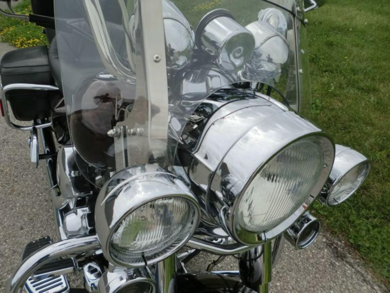 Chrome front end,grips,levers, floorboards, controls, custom pegs,shifter,gas caps,stereo system, detachable tour pack, Thunder Header !! Plus much much more !!!!