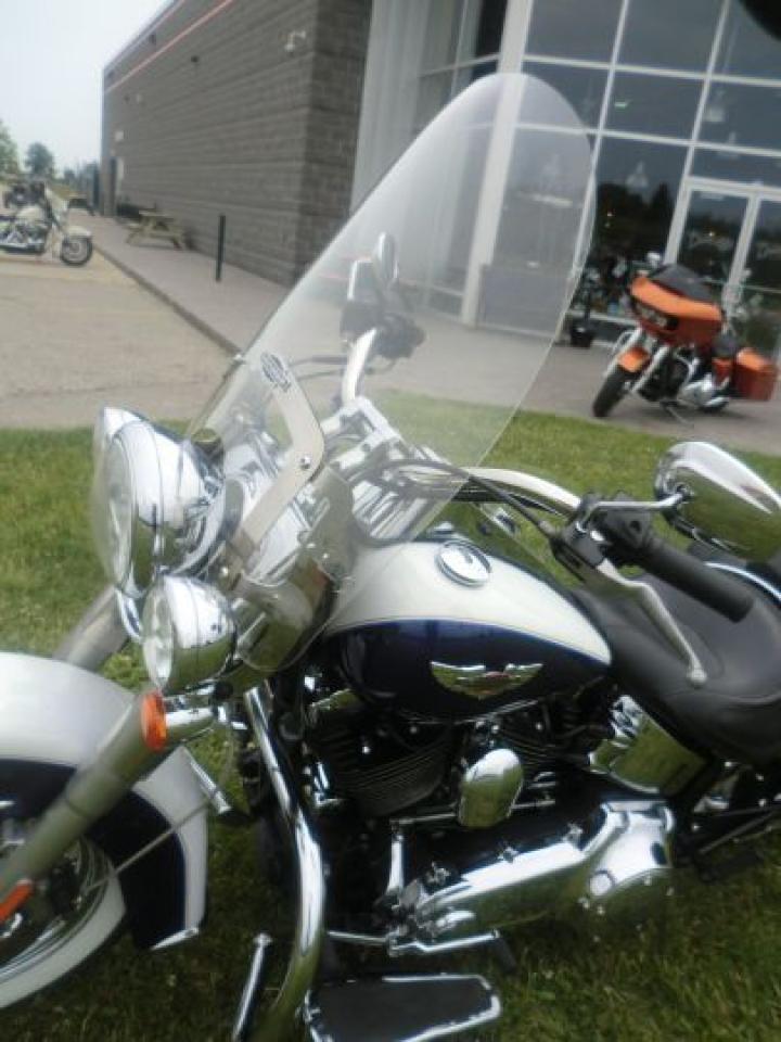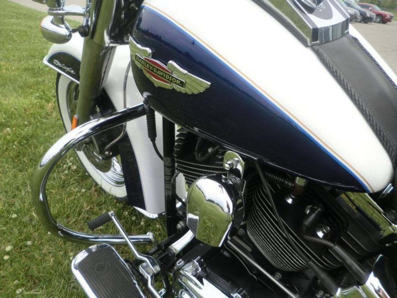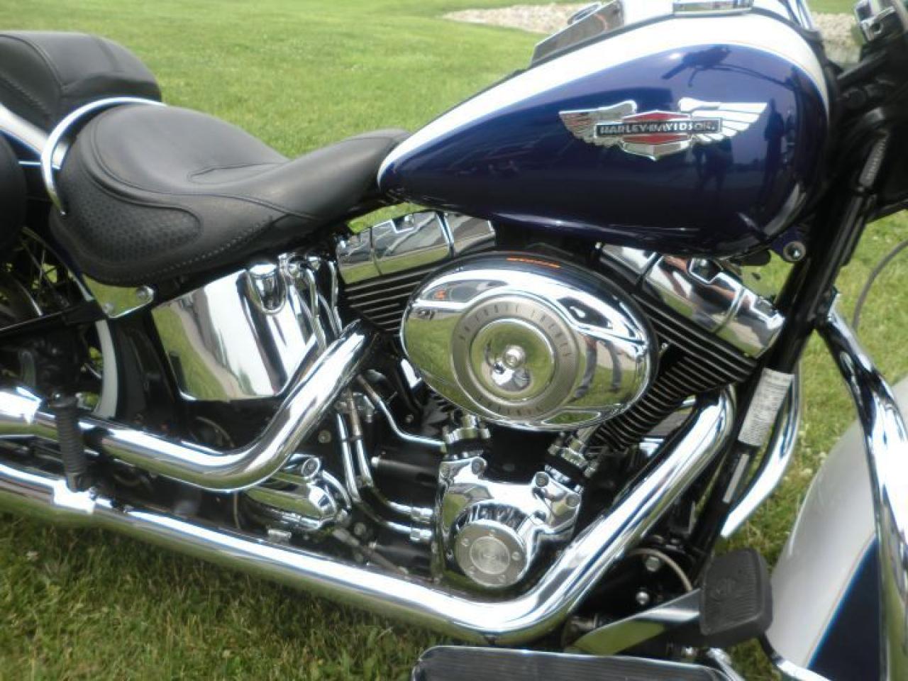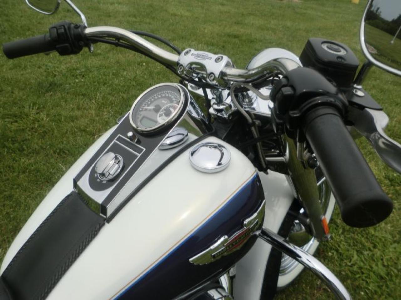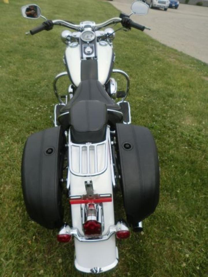 Beautiful Softail Deluxe in White Gold Pearl and Cobalt Blue ! Detachable Deluxe windshied, Deluxe lockable saddlle bags, passenger pillion,luggage rack. 96 cubic inch and six speed !! H-D LOW INTEREST RATES ..!! OUR PRICES FOLLOW THE OMVIC REGULATIONS OF FULL DISCLOSURE IN PRICING NO HIDDEN COSTS OR FEES PRICE SHOWN INCLUDES THE BASIC BIKE PRICE AND OPTIONS, TIRE FEE,OMVIC FEE,ADMINISTRATION FEE.. Prices ARE SUBJECT TO HST !!