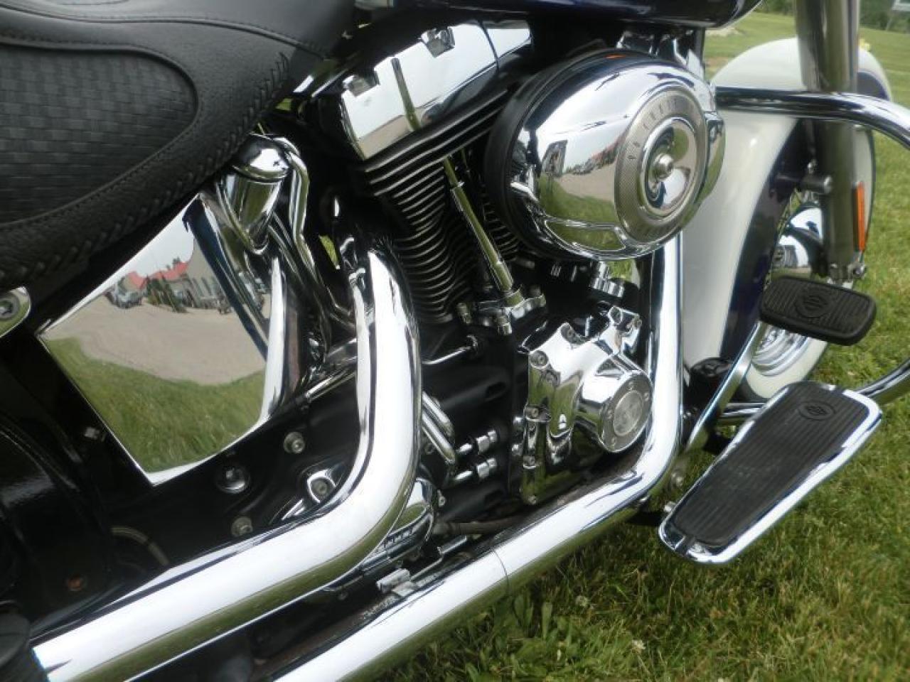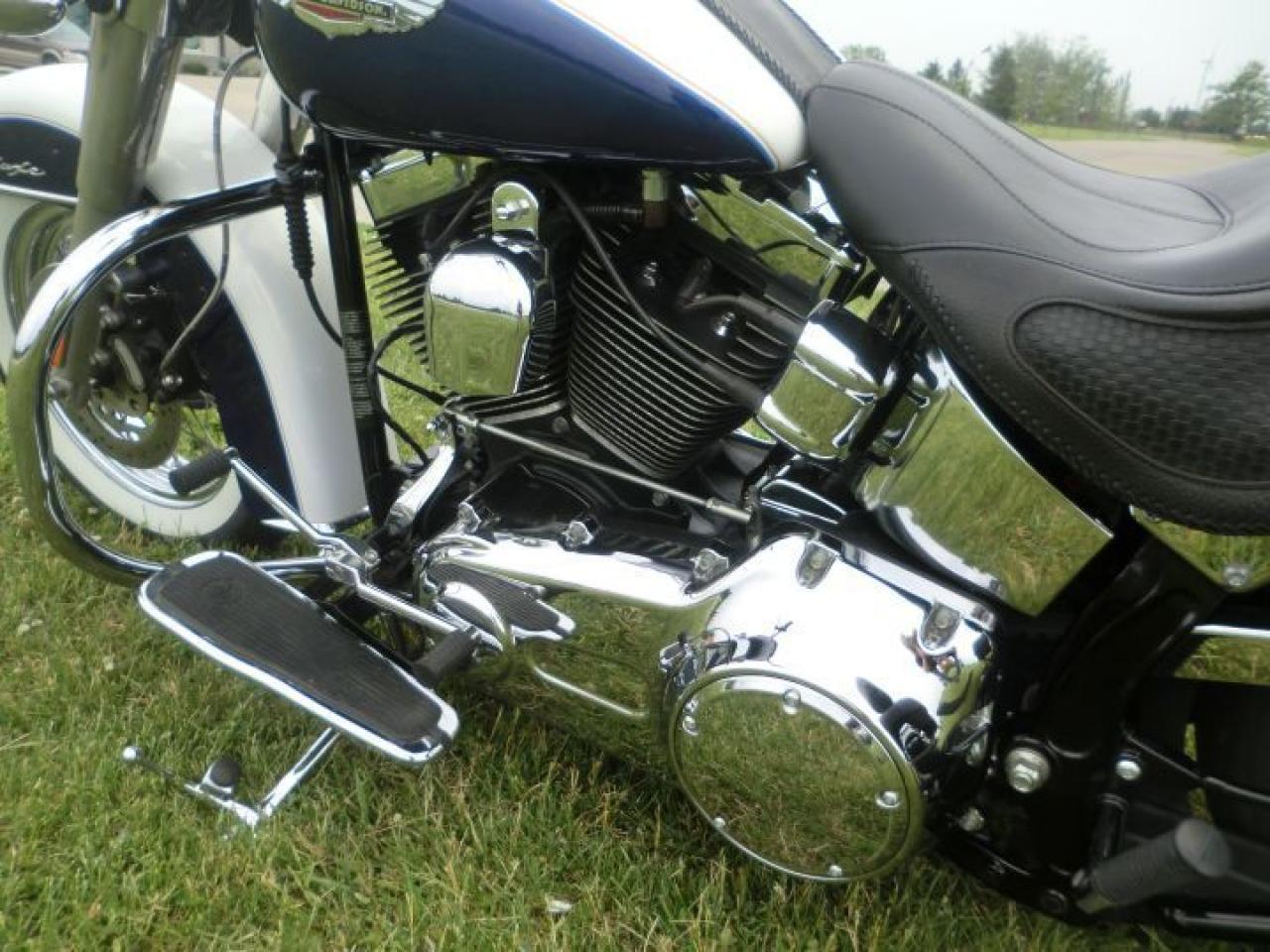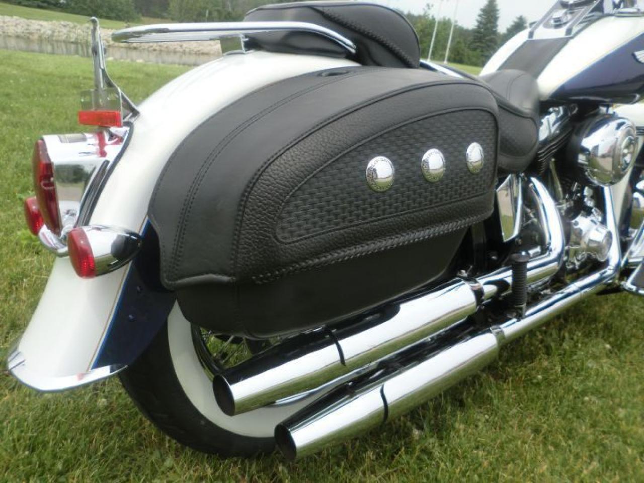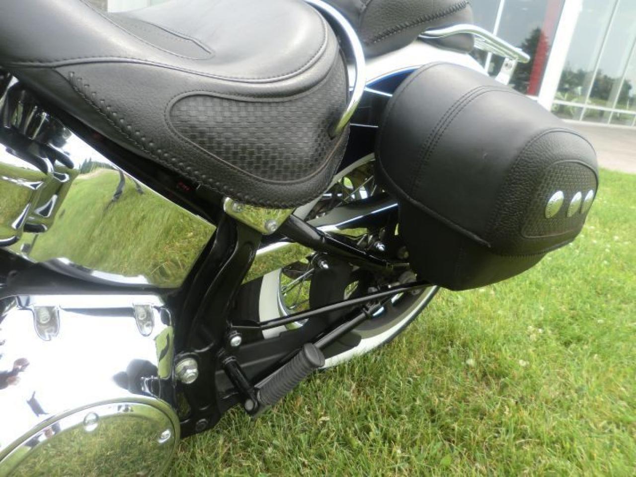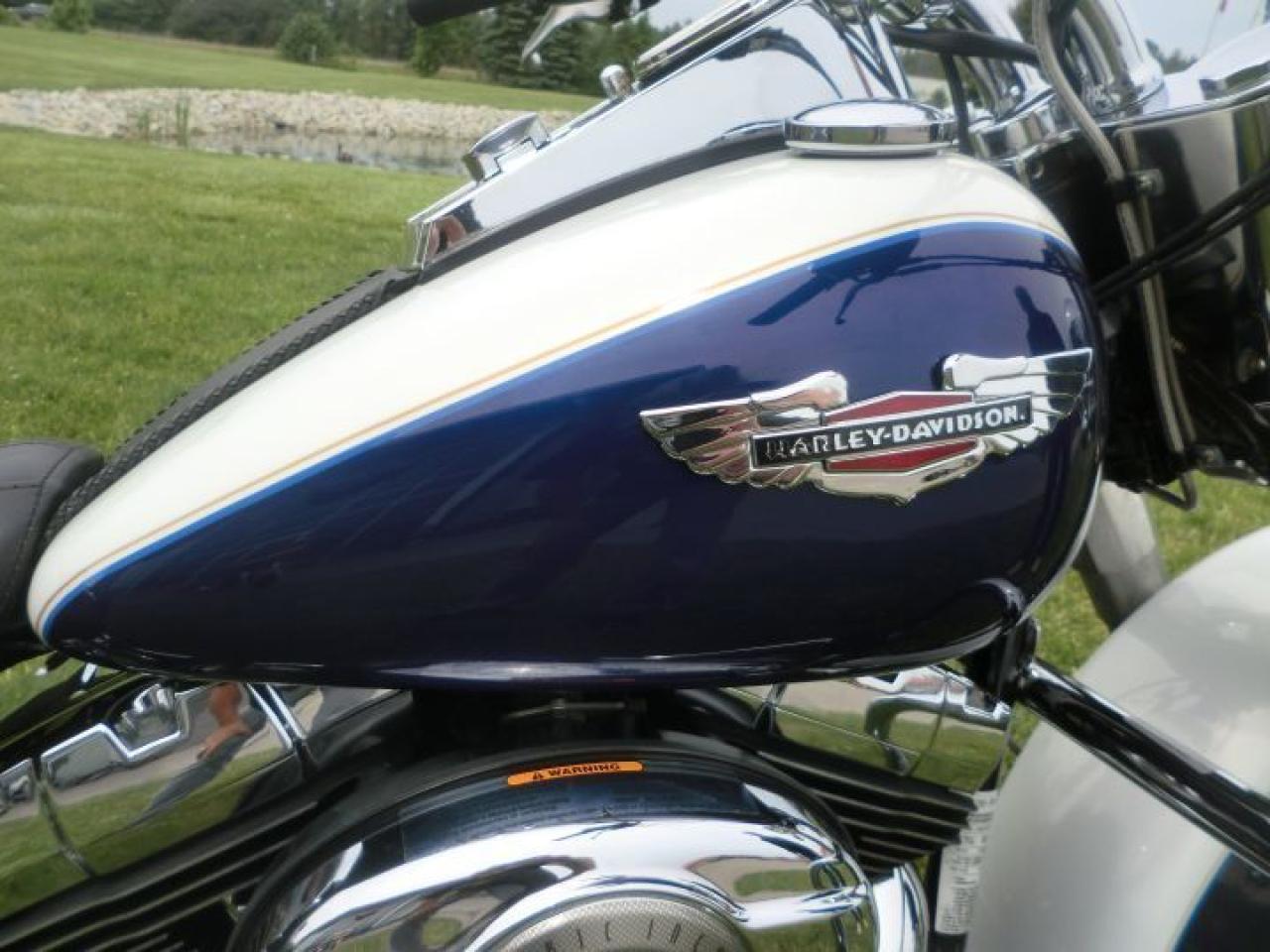 Beautiful Softail Deluxe in White Gold Pearl and Cobalt Blue ! Detachable Deluxe windshied, Deluxe lockable saddlle bags, passenger pillion,luggage rack. 96 cubic inch and six speed !! H-D LOW INTEREST RATES ..!! OUR PRICES FOLLOW THE OMVIC REGULATIONS OF FULL DISCLOSURE IN PRICING NO HIDDEN COSTS OR FEES PRICE SHOWN INCLUDES THE BASIC BIKE PRICE AND OPTIONS, TIRE FEE,OMVIC FEE,ADMINISTRATION FEE.. Prices ARE SUBJECT TO HST !!