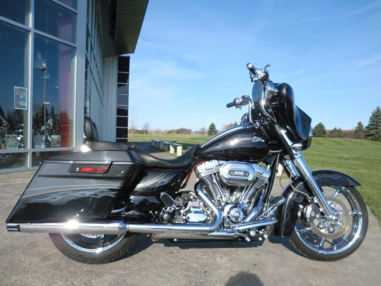 2012 FLHXSE CVO STREET The popular Street Glide® model, tuned up, tricked out and packed full of serious power and radical style, gives you the 2012 CVO™ Street Glide®. Loaded with chrome, attitude, amenities, including a custom two-piece solo FL seat and detachable pillion the CVO Street Glide boasts a low, lean profile, aggressive look and fresh, custom-styling ideas, making it a true hot-rod bagger. H-D LOW INTEREST RATES ..!! OUR PRICES FOLLOW THE OMVIC REGULATIONS OF FULL DISCLOSURE IN PRICING NO HIDDEN COSTS OR FEES PRICE SHOWN INCLUDES THE BASIC BIKE PRICE AND OPTIONS, TIRE FEE,OMVIC FEE,ADMINISTRATION FEE.. Prices ARE SUBJECT TO HST !!