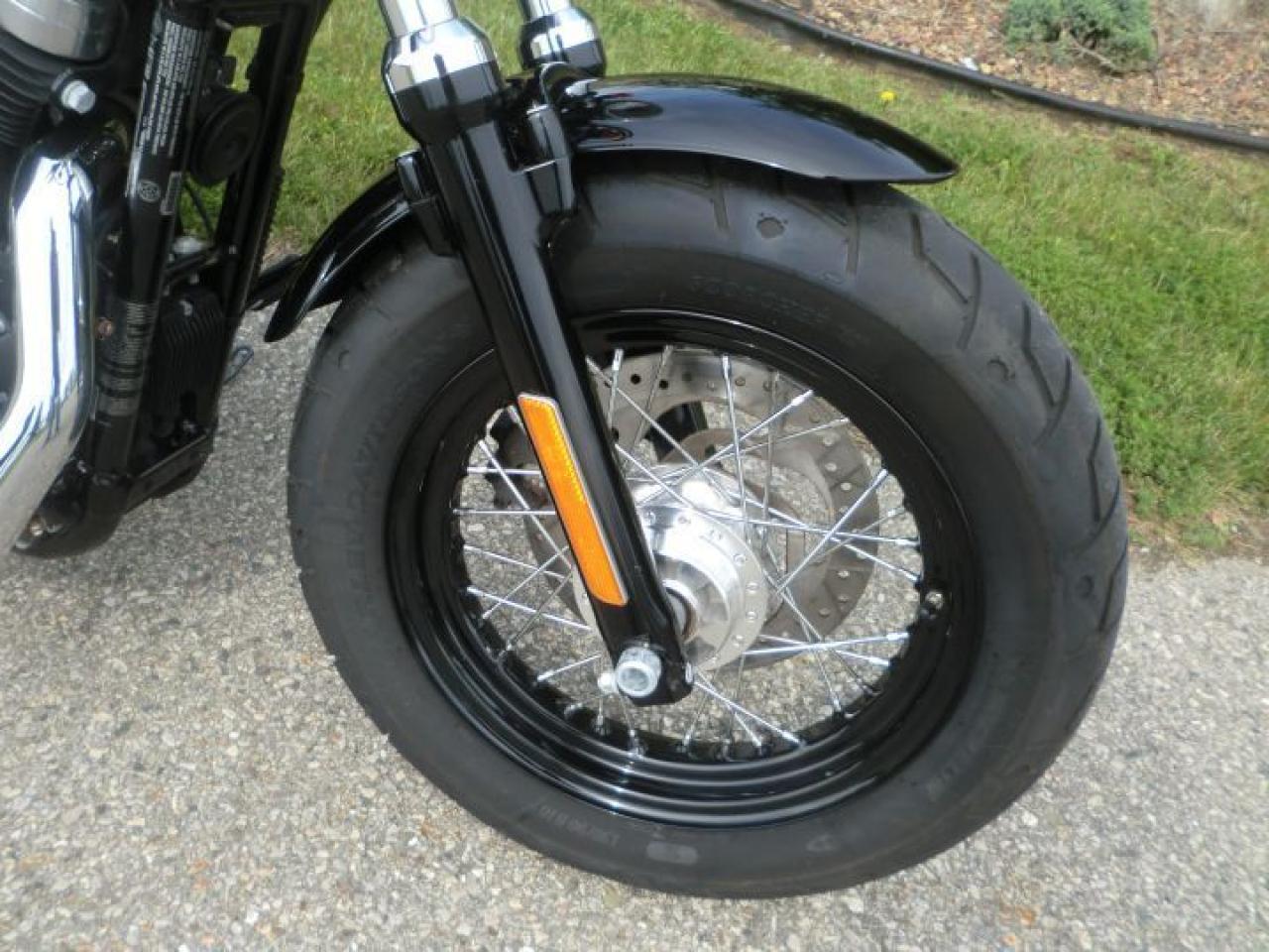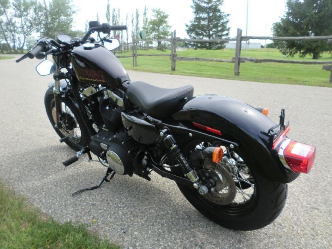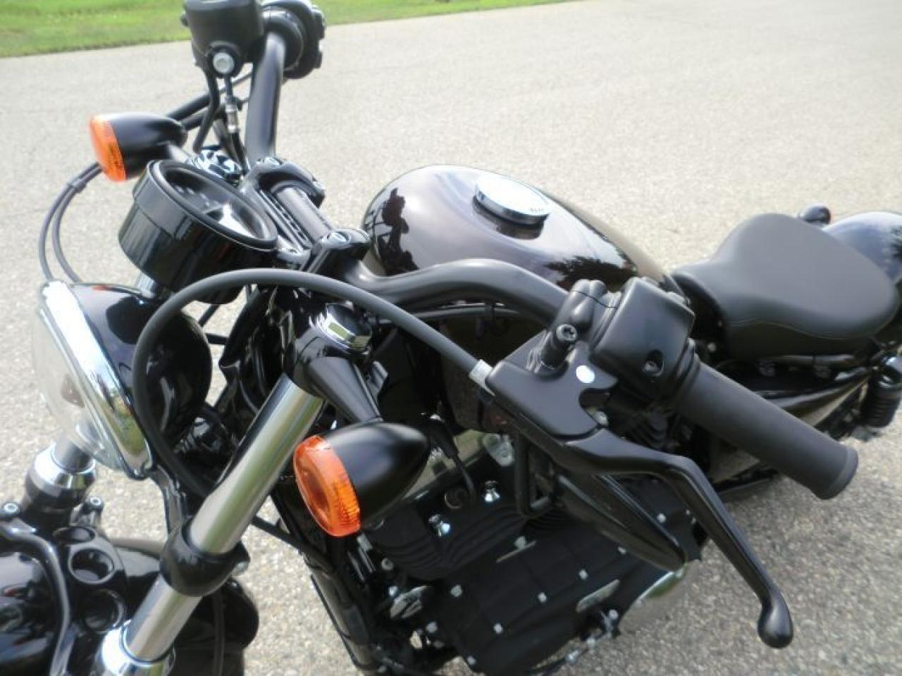 A beefy front end with a tall, fat MT90 tire gives the Forty-Eight® model a grounding visual equal to that of a 1950 Mercury. Custom rubber reminiscent of the lead-sled culture. A dominating presence up front that provides a smooth ride and solid handling.The slammed black drag-style handlebar with speedo and under mount mirrors adds to the stripped down minimal look of the 48.H-D LOW INTEREST RATES OUR PRICES FOLLOW THE OMVIC REGULATIONS OF FULL DISCLOSURE IN PRICING NO HIDDEN COSTS OR FEES PRICE SHOWN INCLUDES THE BASIC BIKE PRICE AND OPTIONS, TIRE FEE,OMVIC FEE,ADMINISTRATION