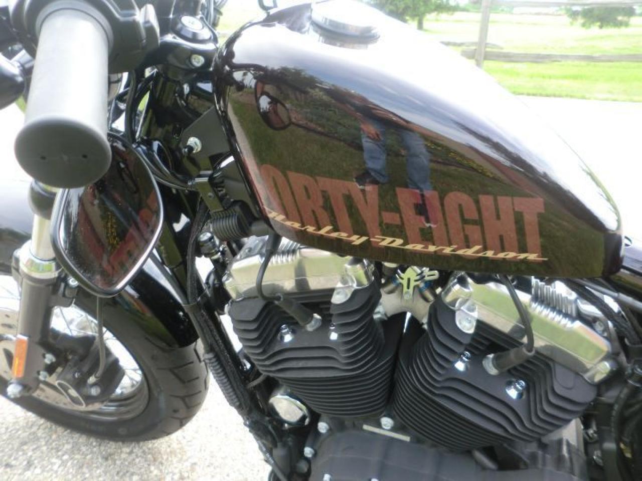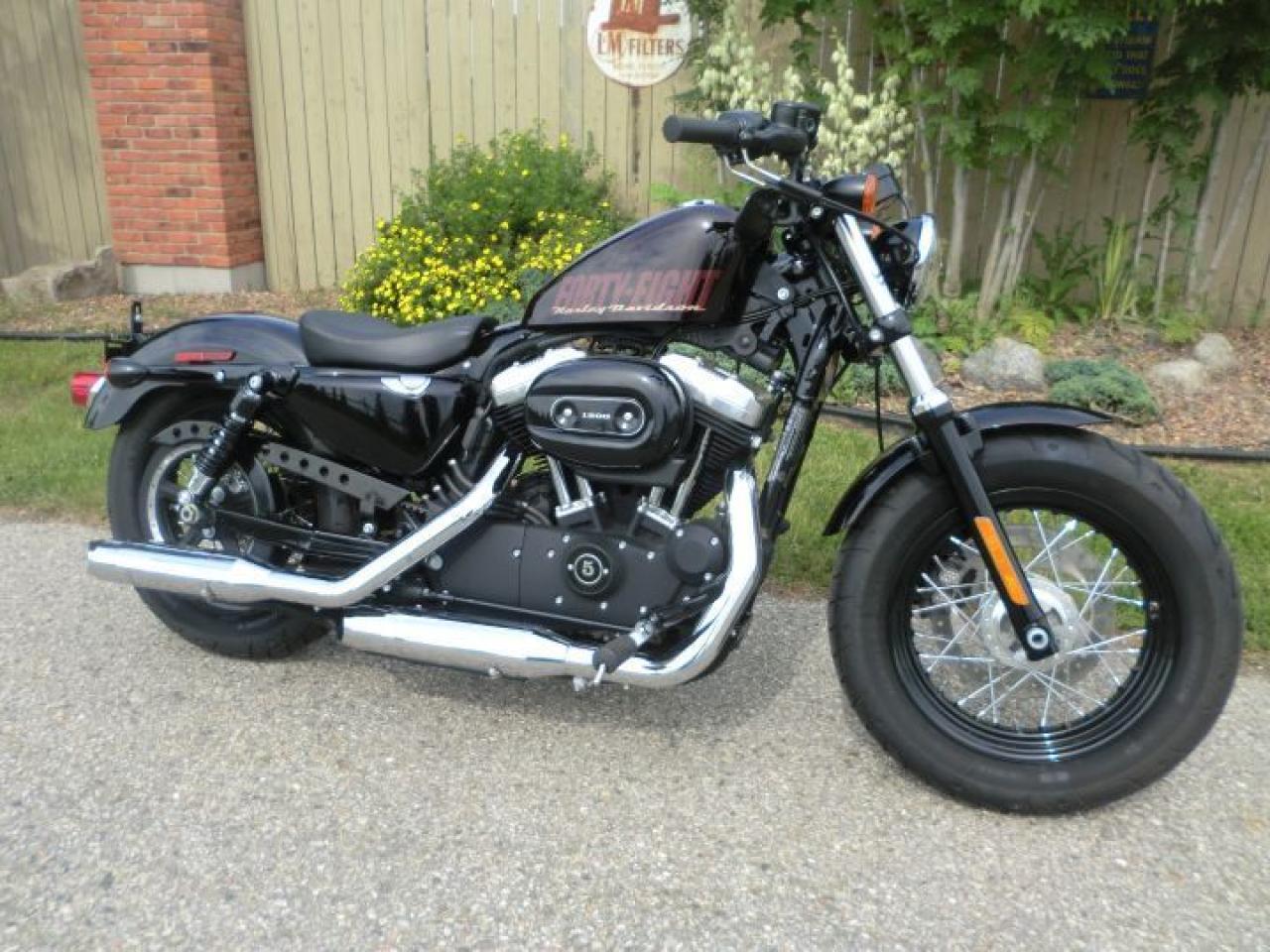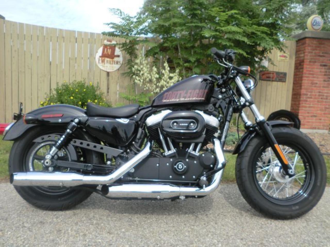 A beefy front end with a tall, fat MT90 tire gives the Forty-Eight® model a grounding visual equal to that of a 1950 Mercury. Custom rubber reminiscent of the lead-sled culture. A dominating presence up front that provides a smooth ride and solid handling.The slammed black drag-style handlebar with speedo and under mount mirrors adds to the stripped down minimal look of the 48.H-D LOW INTEREST RATES OUR PRICES FOLLOW THE OMVIC REGULATIONS OF FULL DISCLOSURE IN PRICING NO HIDDEN COSTS OR FEES PRICE SHOWN INCLUDES THE BASIC BIKE PRICE AND OPTIONS, TIRE FEE,OMVIC FEE,ADMINISTRATION