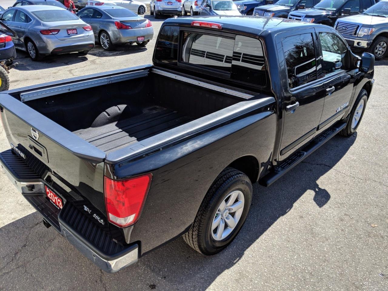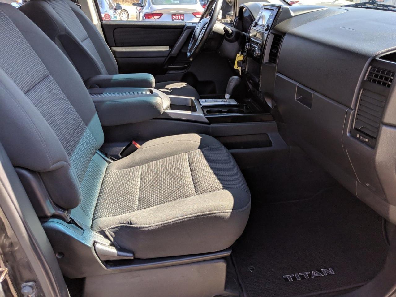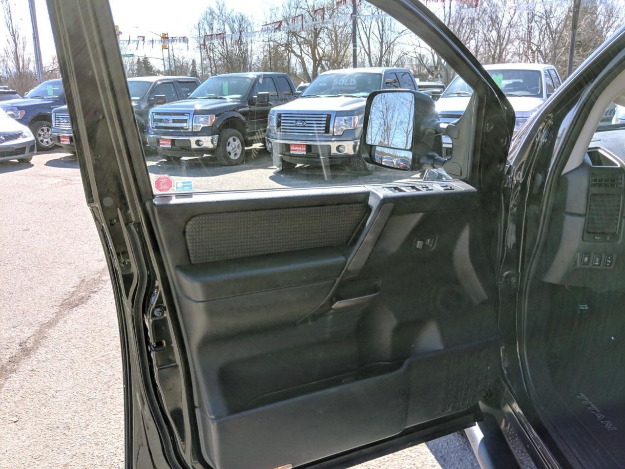 Hard to find Nissan Titan crew cab pickup with 4x4 and 5.6 litre V8! This clean beauty has a back up camera, blue tooth and a power rear sliding window. Â