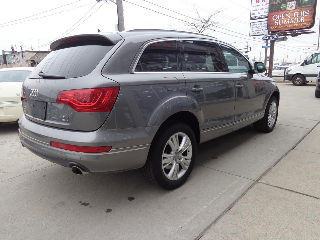 DIRECT FROM AUDI FINANCE, ONE OWNER, OFF LEASE, FULLY LOADED, 7 PASSENGER, DIESEL, NAVIGATION, MULTI-ZONE AUTOMATIC DIGITAL CLIMATE CONTROL, POWER/HEATED/MEMORY/LEATHER SEATS, POWER LIFT GATE, PARK SENSORS, RAIN SENSING WIPER, PANORAMIC ROOF, BOSE SOUND WITH AUDI MMI, BLUETOOTH, VOICE COMMAND, POWER TILT/TELESCOPIC STEERING COLUMN, FOG LAMPS , ALLOYS AND MORE... CARPROOF VERIFIED! FINANCING AVAILABLE FOR ANY CREDIT STARTING FROM 4.9%! UP TO 6 YRS WARRANTY AVAIL.! WE ARE MORE THAN 19 YEARS UCDA MEMBERS! FULL HISTORY DISCLOSURE! WE SERVICE WHAT WE SELL! SAVE $$$ ON FUTURE MAINTENANCE COSTS! WE HELP YOU TO MAINTAIN YOUR VEHICLE! 1057 MARTIN GROVE RD., TORONTO. TEL:416-645-0398 WEBSITE: WWW.LEONSFINECARS.CA CERTIFICATION PACKAGE CAN BE PURCHASED FOR ONLY $399 THAT INCLUDES FULL CERTIFICATION, , PROFESSIONAL DETAILING AND 1 MONTH 1500KMS WARRANTY. IF NOT CERTIFIED AS PER OMVIC REGULATIONS THE VEHICLE DEEMED TO BE NOT DRIVABLE, NOT CERTIFIED AND NOT E-TESTED. ALL OUR VEHICLES ARE MECHANICALLY FIT AND DRIVE EXCELLENT! 1057 MARTIN GROVE RD., TORONTO.