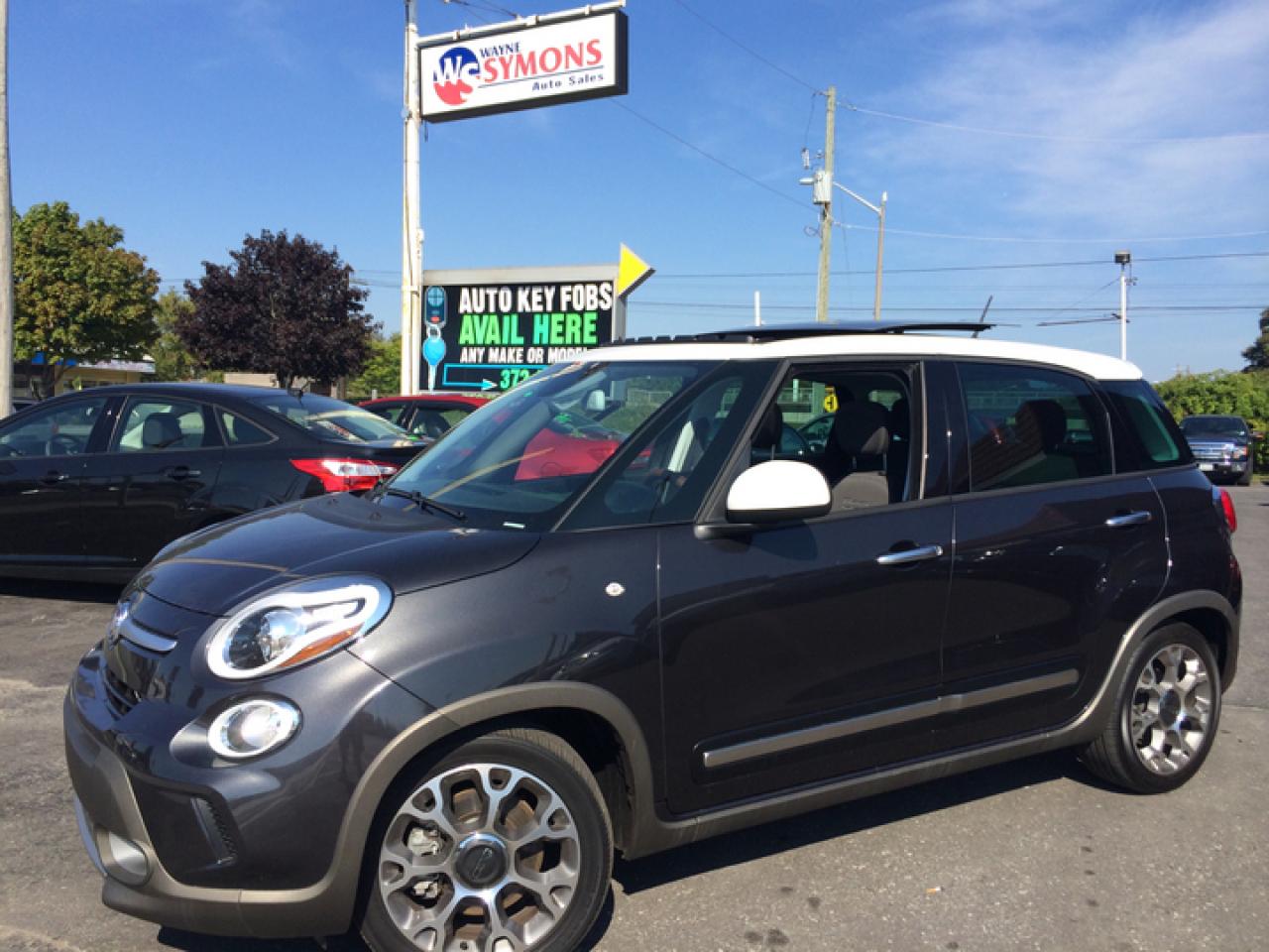 2014 Fiat 500L. Are you looking for a small car but with lots of room are you looking for something that is great on fuel. Look no further. This Fiat 500 L has 16,000 km on it balance of Fiat Canada warranty comes with air-conditioning Bluetooth power windows power door locks heated seats panoramic sunroof. Side curtain airbags loads of options. For her daily rental. Financing available on approved credit