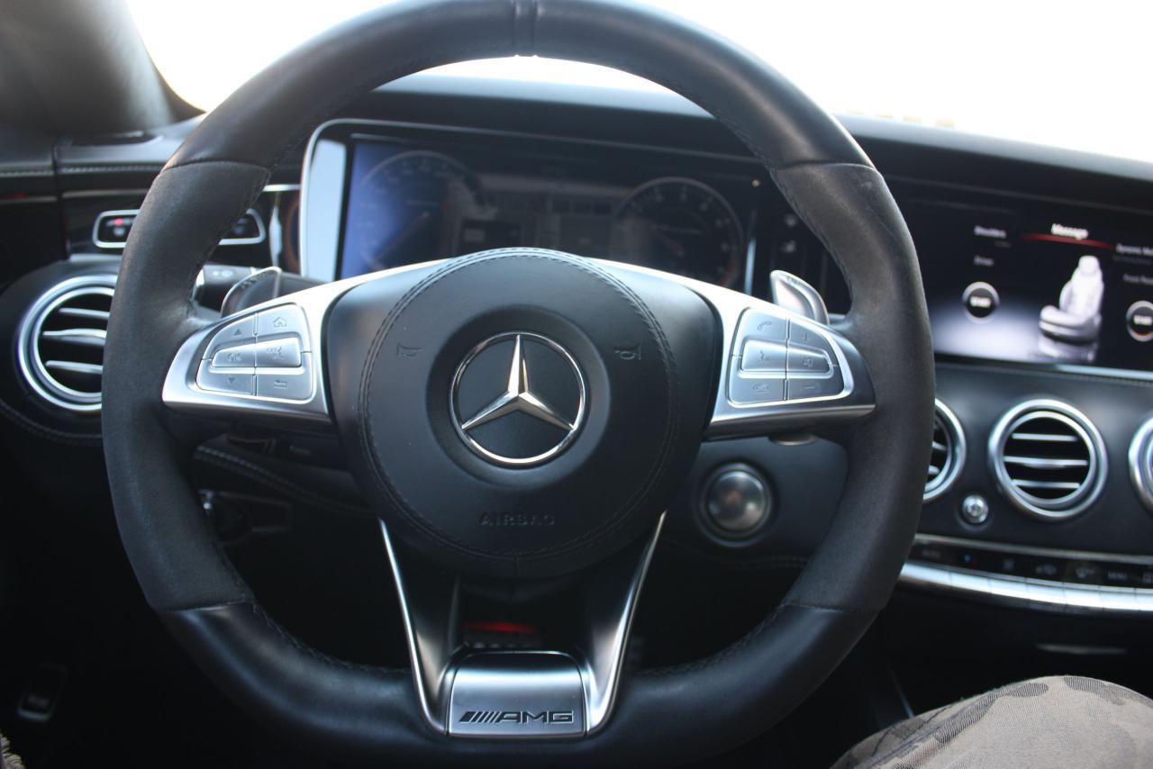 ONE OF A KIND 2017 MERCEDES BENZ S63AMG COMES FULLY EQUIPPED WITH FULL PERFORMANCE, AND LUXURY FEATURES. THIS S63 COUPE COMES WITH THE CLEANEST CASHMERE MAGNO WHITE EXTERIOR, WHICH IS PAIRED EXCELLENTLY WITH THE HAND STITCHED DESIGNO INTERIOR INCLUDING THE AMG STEERING WHEEL. FOLLOWED WITH HEATED, AND COOLED-WIDE ADJUSTABLE SEATS THAT COME WITH 6 DIFFERENT MASSAGE SETTINGS. THIS ONE OF A KIND S63 ALSO COMES EQUIPPED WITH NIGHT VISION PACKAGE, BACKED UP WITH LUXURIOUS SWAROVSKI CRYSTAL LIGHTING PACKAGE. THIS VEHICLE ALSO COMES WITH PERFORMANCE PACKAGE, WHICH INCLUDES CERAMIC BRAKES, AND 20INCH FORGED BLACK ALLOYS. THE TECHNOLOGY PACKAGE THAT BACKS UP THE S63 INCLUDES 360 DEGREE CAMERA, SELF DRIVE ASSIST, SELF PARK ASSIST, BLIND SPOT SENSORS, ADAPTED CRUISE CONTROL, AND MUCH MORE.