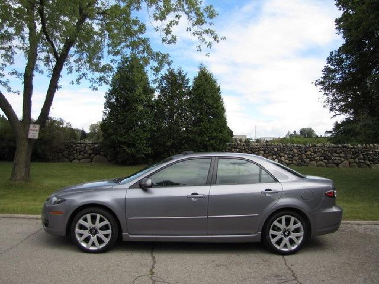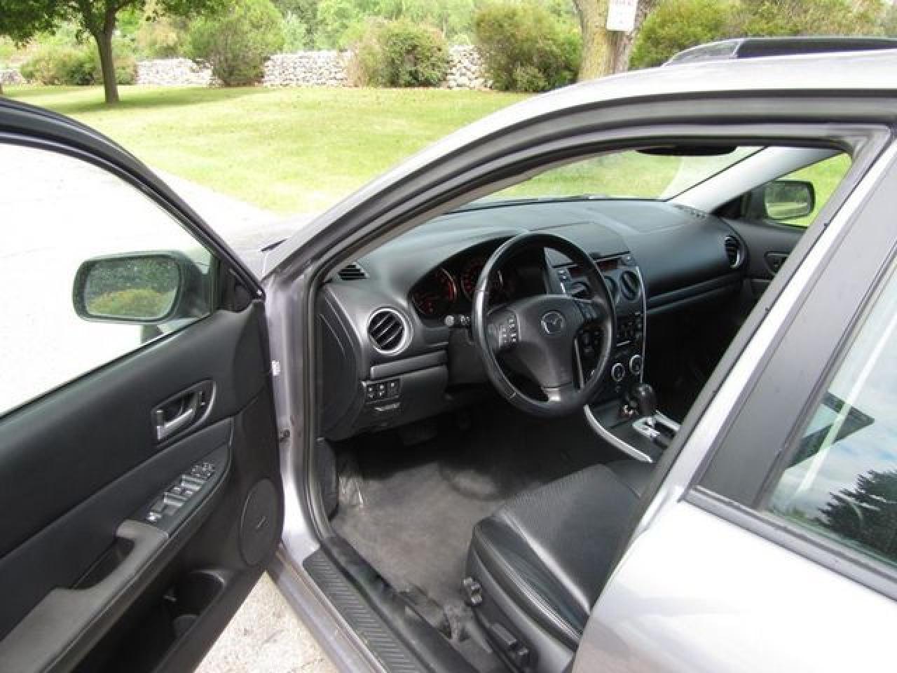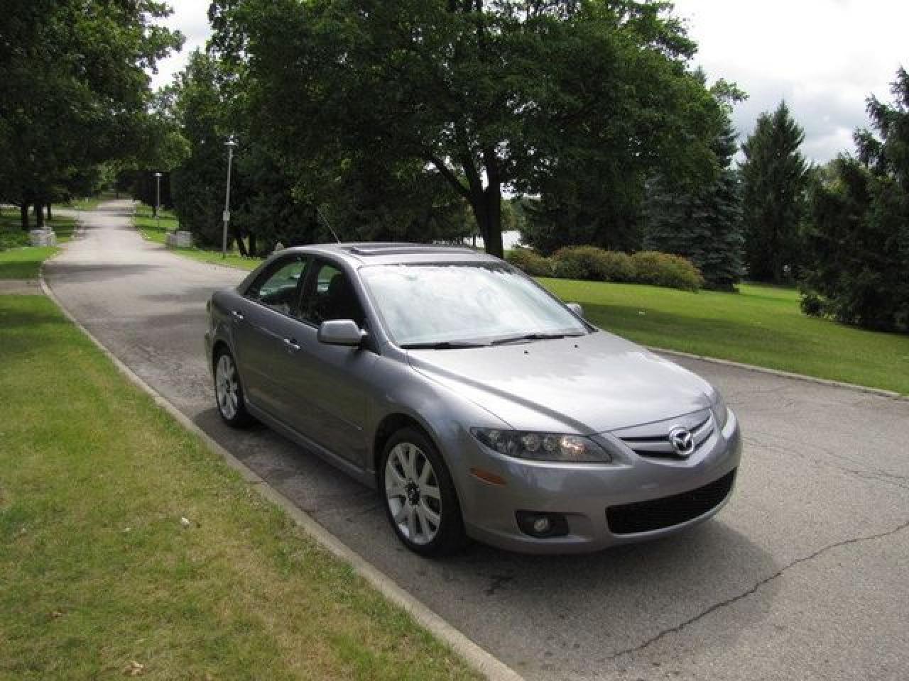 This 2007 Mazda MAZDA6 4dr GT V6 LEATHER-ROOF!! MAZDA LEASE RETURN!! Sedan features a 3.0L V6 DOHC 24V 6 cyl Gasoline engine. It is equipped with a Automatic transmission. The vehicle is Grey with a Black Leather interior. It is offered with the remaining factory warranty. Over 400 BETTER used cars in stock!! PLEASE CALL 1-866-348-8146 5.99% Financing + no payments up to 6 months available on approved credit!! Free Trial Exchange!! A+ Better Business Bureau rating!! Voted Guelph's Favourite dealer 2004-2009!! Since 1961. Taxes, licensing, and $5.00 OMVIC fee are extra. Call for details on our Free Trial Exchange! Thank you for considering Wilsons!!! Please call 1-866-348-8146. - This Mazda is in Excellent overall exterior condition, Excellent overall interior condition, Leather seats - Air Conditioning, Cruise Control, Power Steering, Power Windows, Power Door Locks, Power Mirrors, Power Drivers Seat, Power Passenger Seat, Heated Seat, Clock, Tachometer, Digital Info Center, Tilt Steering Wheel, Telescoping Steering Wheel, Sunroof, Driver Airbag, Passenger Airbag, Keyless Entry, ABS Brakes, Traction Control, Rear Defogger, Intermittent Wipers, AM-FM, CD Player, Aluminum Wheels, Leather Interior Surface - Contact The Internet Department at 866-738-6045 or leads@markwilsonsbetterusedcarstc.dealer.com for more information. -