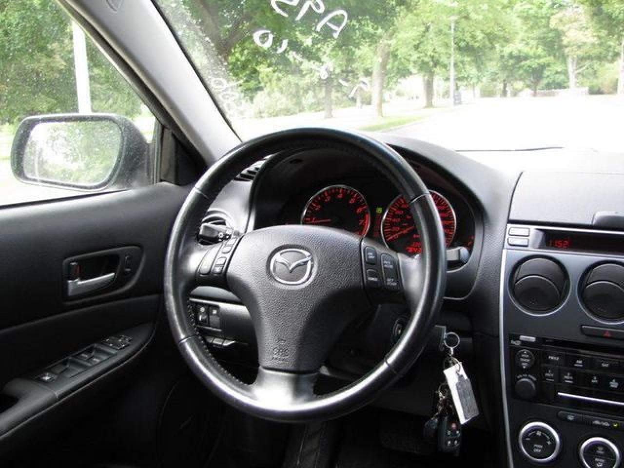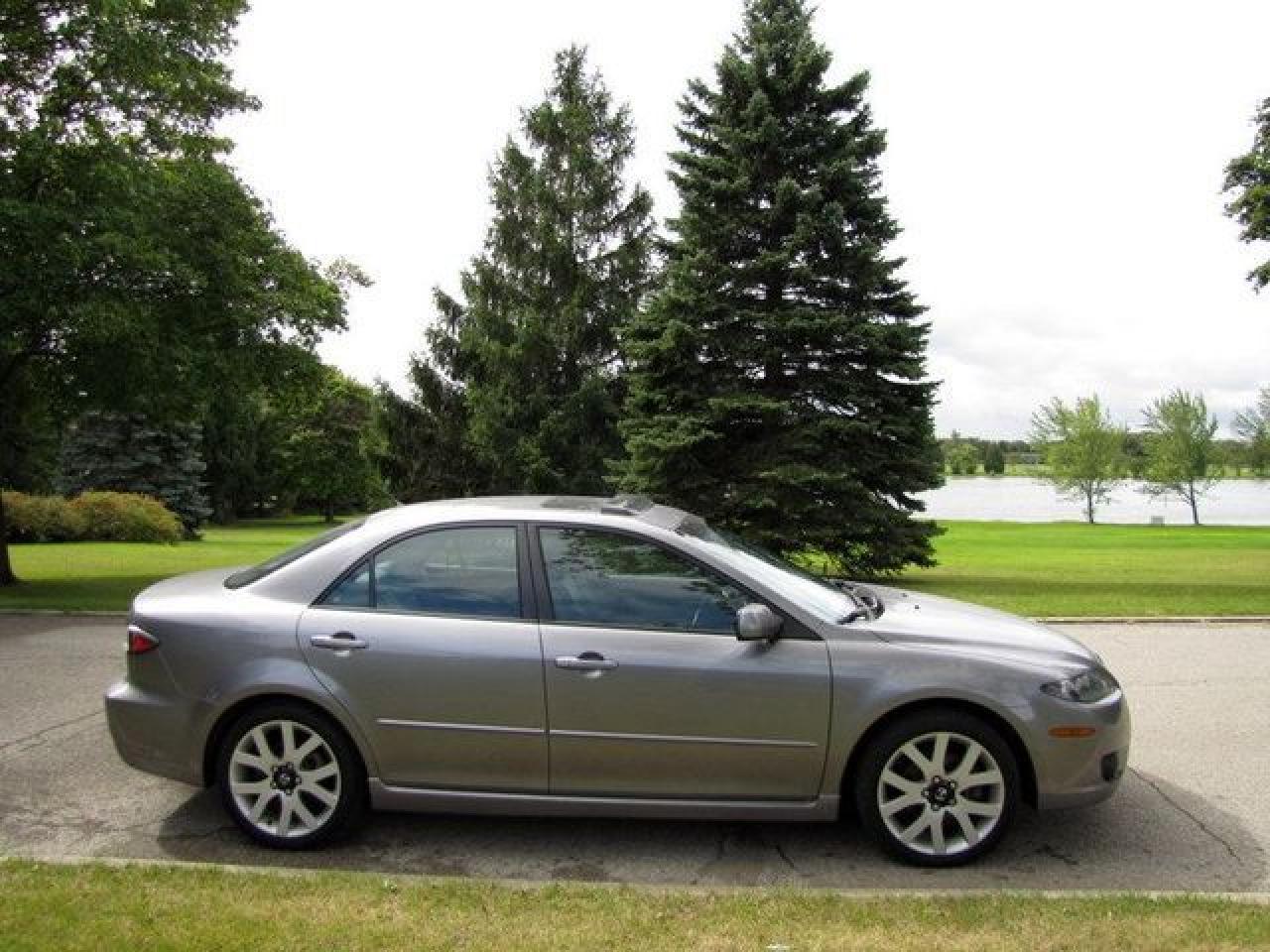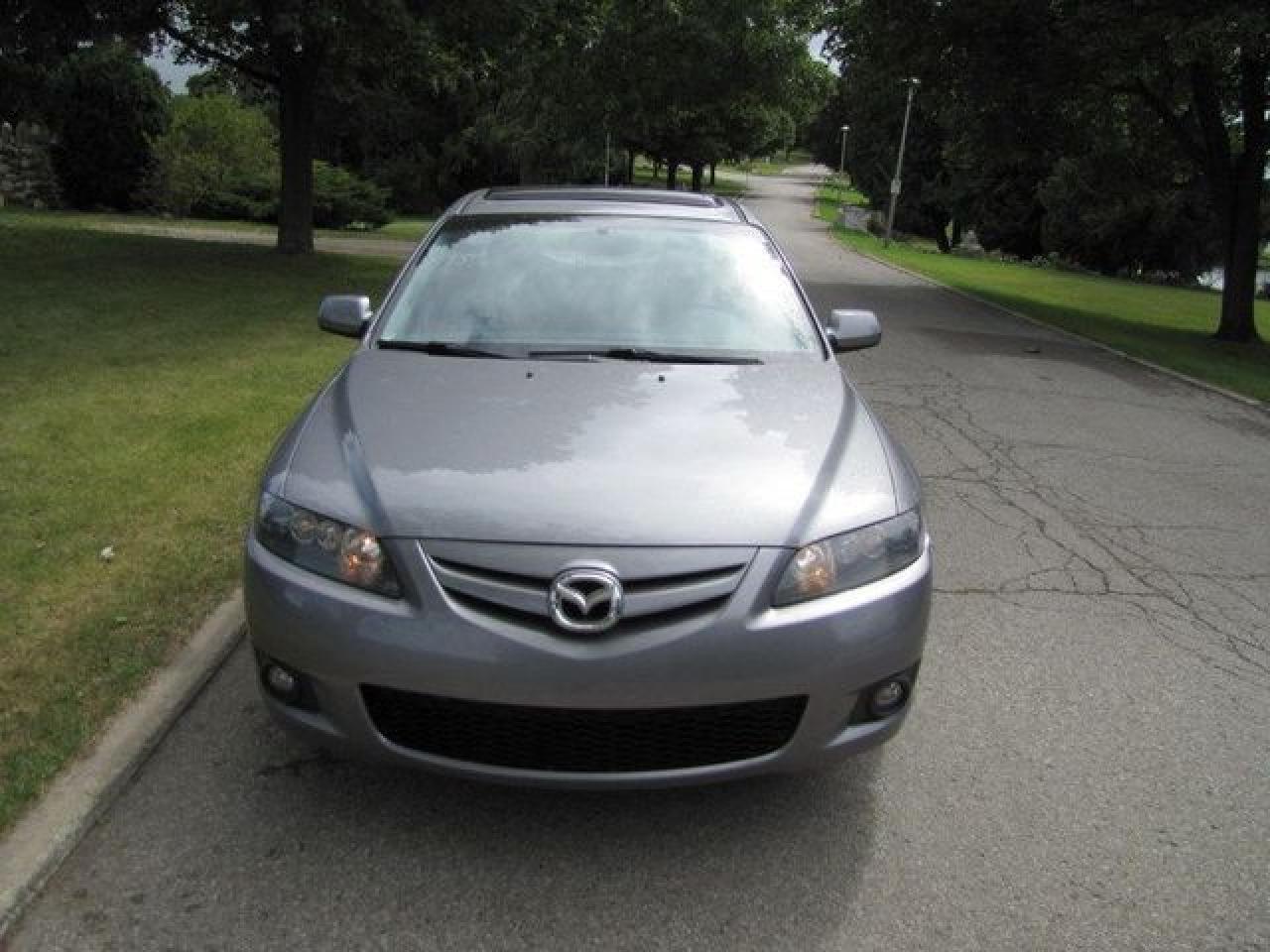 This 2007 Mazda MAZDA6 4dr GT V6 LEATHER-ROOF!! MAZDA LEASE RETURN!! Sedan features a 3.0L V6 DOHC 24V 6 cyl Gasoline engine. It is equipped with a Automatic transmission. The vehicle is Grey with a Black Leather interior. It is offered with the remaining factory warranty. Over 400 BETTER used cars in stock!! PLEASE CALL 1-866-348-8146 5.99% Financing + no payments up to 6 months available on approved credit!! Free Trial Exchange!! A+ Better Business Bureau rating!! Voted Guelph's Favourite dealer 2004-2009!! Since 1961. Taxes, licensing, and $5.00 OMVIC fee are extra. Call for details on our Free Trial Exchange! Thank you for considering Wilsons!!! Please call 1-866-348-8146. - This Mazda is in Excellent overall exterior condition, Excellent overall interior condition, Leather seats - Air Conditioning, Cruise Control, Power Steering, Power Windows, Power Door Locks, Power Mirrors, Power Drivers Seat, Power Passenger Seat, Heated Seat, Clock, Tachometer, Digital Info Center, Tilt Steering Wheel, Telescoping Steering Wheel, Sunroof, Driver Airbag, Passenger Airbag, Keyless Entry, ABS Brakes, Traction Control, Rear Defogger, Intermittent Wipers, AM-FM, CD Player, Aluminum Wheels, Leather Interior Surface - Contact The Internet Department at 866-738-6045 or leads@markwilsonsbetterusedcarstc.dealer.com for more information. -