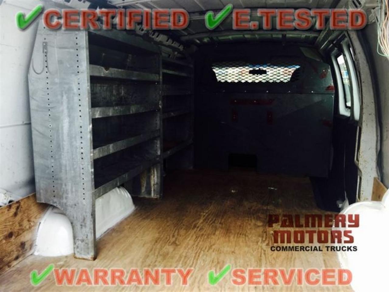 Vortec 4.8L V8, auto, a/c, cloth seats, barn side doors, shelves and partition/divider, fully Certified and e.tested. Call for more details. Largest Selection Of High Quality Cargo Vans In Stock! We specialize in Work Trucks! We are located North of Pearson Airport at 8151 Highway 50, Woodbridge Ontario, L4L-1A5, 1 KM North of Highway 7. Just off Hwy 427 North, exit to Zenway Dr. and head West to Hwy 50. Go North on 50, we are on the East side right across the Tim Hortons/Petro Canada. Call us, were here to help! Like Us On Facebook. Follow Us On Twitter. All New Easy To Use Website: www.palmerymotors.com BUY WITH CONFIDENCE! OMVIC & UCDA Registered dealer. A+ BBB Rating