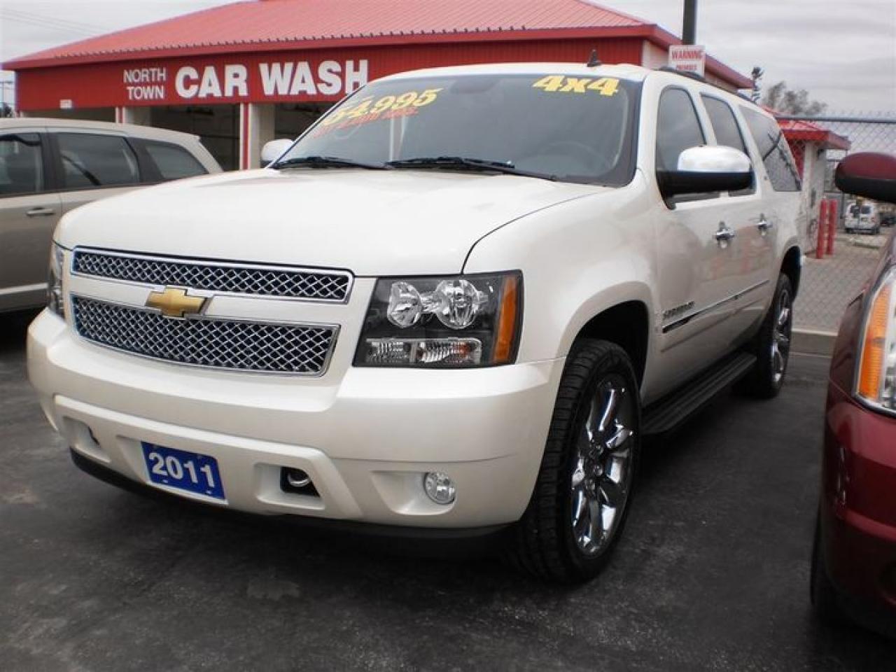 5.3L. V8. THIS DIAMOND WHITE ON BLACK LEATHER HEATED AND COOLED MEMORY SEATS COMES WITH THE FOLLOWING FEATURES. SUNROOF,DUAL DVD,NAVIGATION,REMOTE START,REMOTE LIFTGATE,FOG LIGHTS,RUNNING BOARDS,ROOF RACK,FRONT TOW HOOKS,BACKUP SENSORS AND CAMERA,POWER PEDAL,LEATHER WRAPPED STEERING WHEEL WITH CONTROLS,DUAL AIR AND HEAT,7 PASSENGER AND MORE!! 30 Years in business, A+ BBB rated company, 200 units in stock, 2 locations. Home of the Warranty for Life, full service department, on the spot financing. Bad credit welcomed. Winner of Reader Choice Award for the best dealer in the Listowel area. Winner Of Business Of The Year Award from the North Perth Chamber Of Commerce! Free carproof or carfax. No extra fees no extra costs. All prices + HST & Licensing. Save money! (Thanks for shopping at STOP23 AUTO SALES LTD).