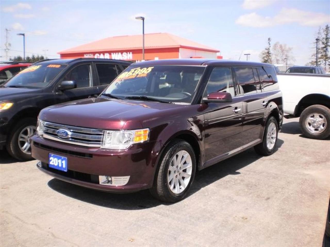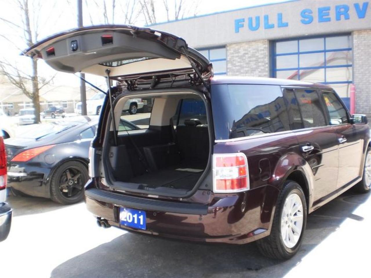 3.5L. V6. THIS 2011 FORD FLEX SEL COMES WITH THE FOLLOWING FEATURES. IT HAS A SUNROOF WITH REAR SKYLIGHTS,HEATED LEATHER SEATS,LEATHER WRAPPED STEERING WHEEL WITH CONTROLS,3rd ROW SEATING,FOG LIGHTS, KEYPAD ENTRY,HEATED MIRRORS,MICROSOFT SYNC,DUAL AIR AND HEAT,7 PASSENGER AND MORE!! 30 Years in business, A+ BBB rated company, 200 units in stock, 2 locations. Home of the Warranty for Life, full service department, on the spot financing. Bad credit welcomed. Winner of Reader Choice Award for the best dealer in the Listowel area. Winner Of Business Of The Year Award from the North Perth Chamber Of Commerce! Free carproof or carfax. No extra fees no extra costs. All prices + HST & Licensing. Save money! (Thanks for shopping at STOP23 AUTO SALES LTD).