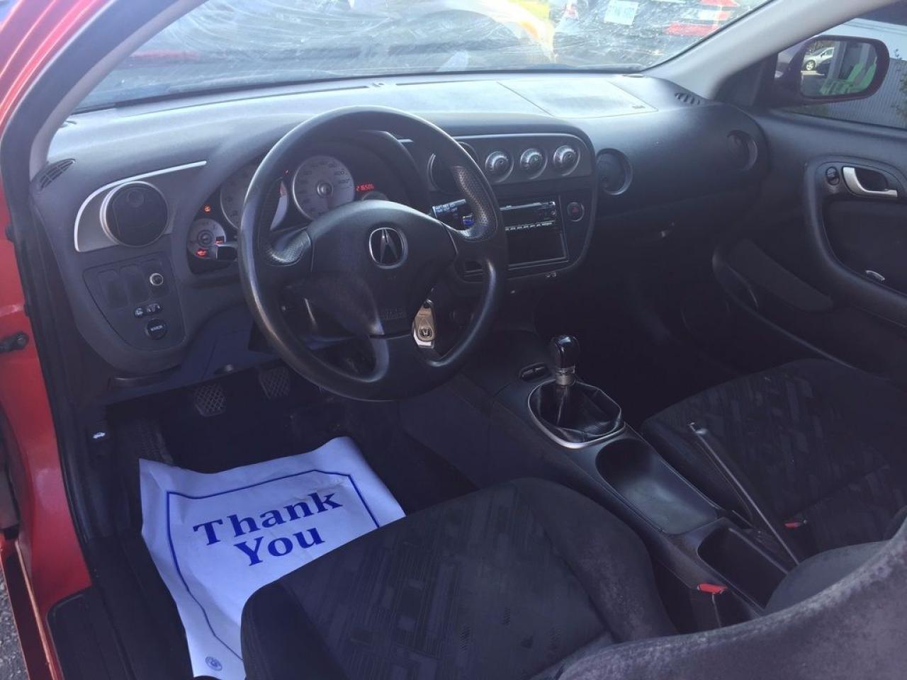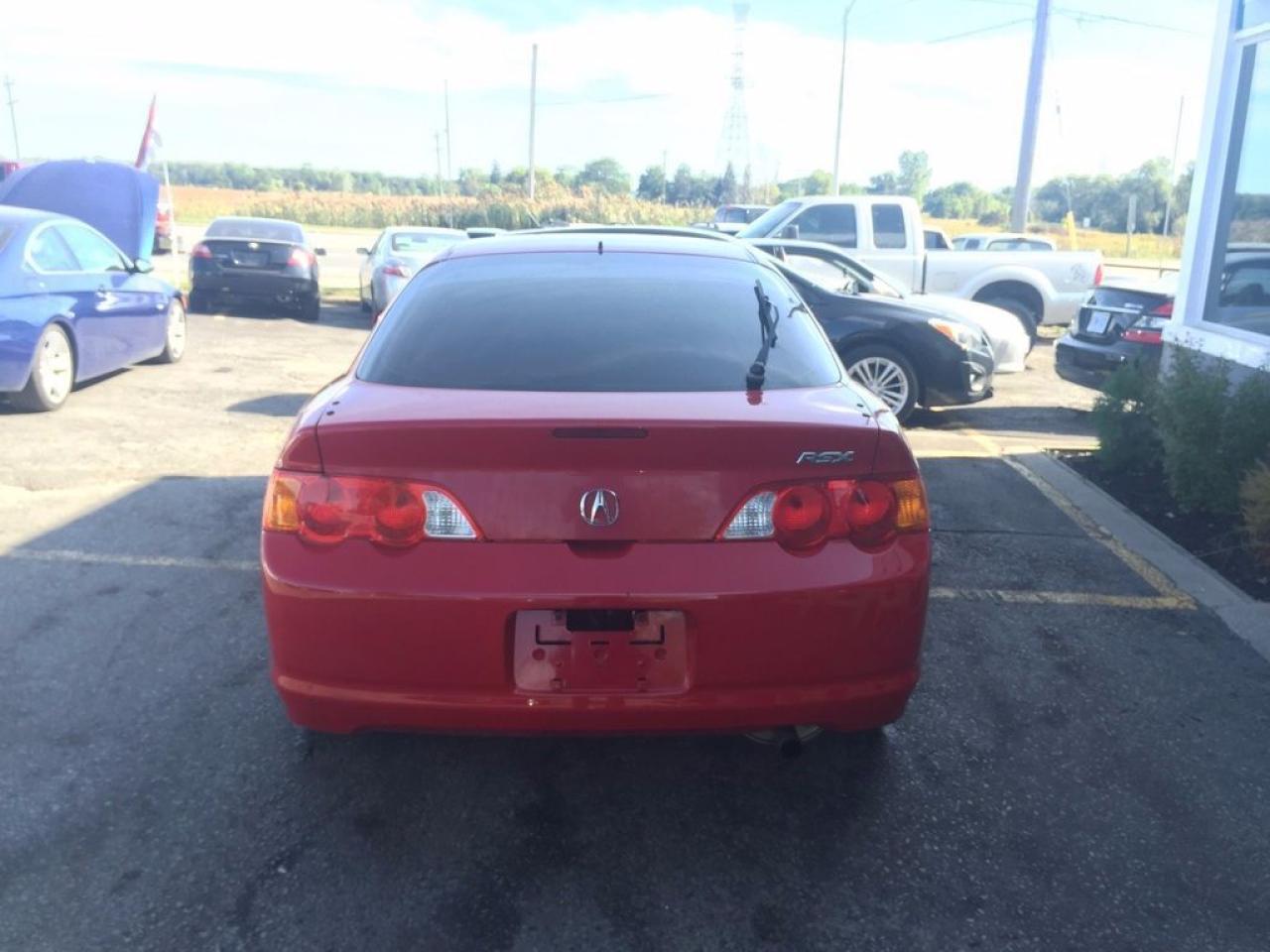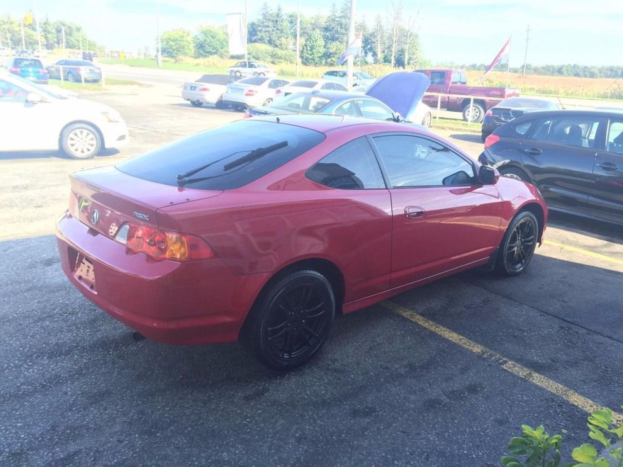 Local trade in just arrived! Gorgeous red on black Acura Rsx, JVC MP3/cd deck, black wheels, and much more! Don't miss out on this gorgeous little rocket. Vehicle is sold as is, but feel free to have the vehicle inspected locally before purchase. Contact our sales staff now 519-652-5652