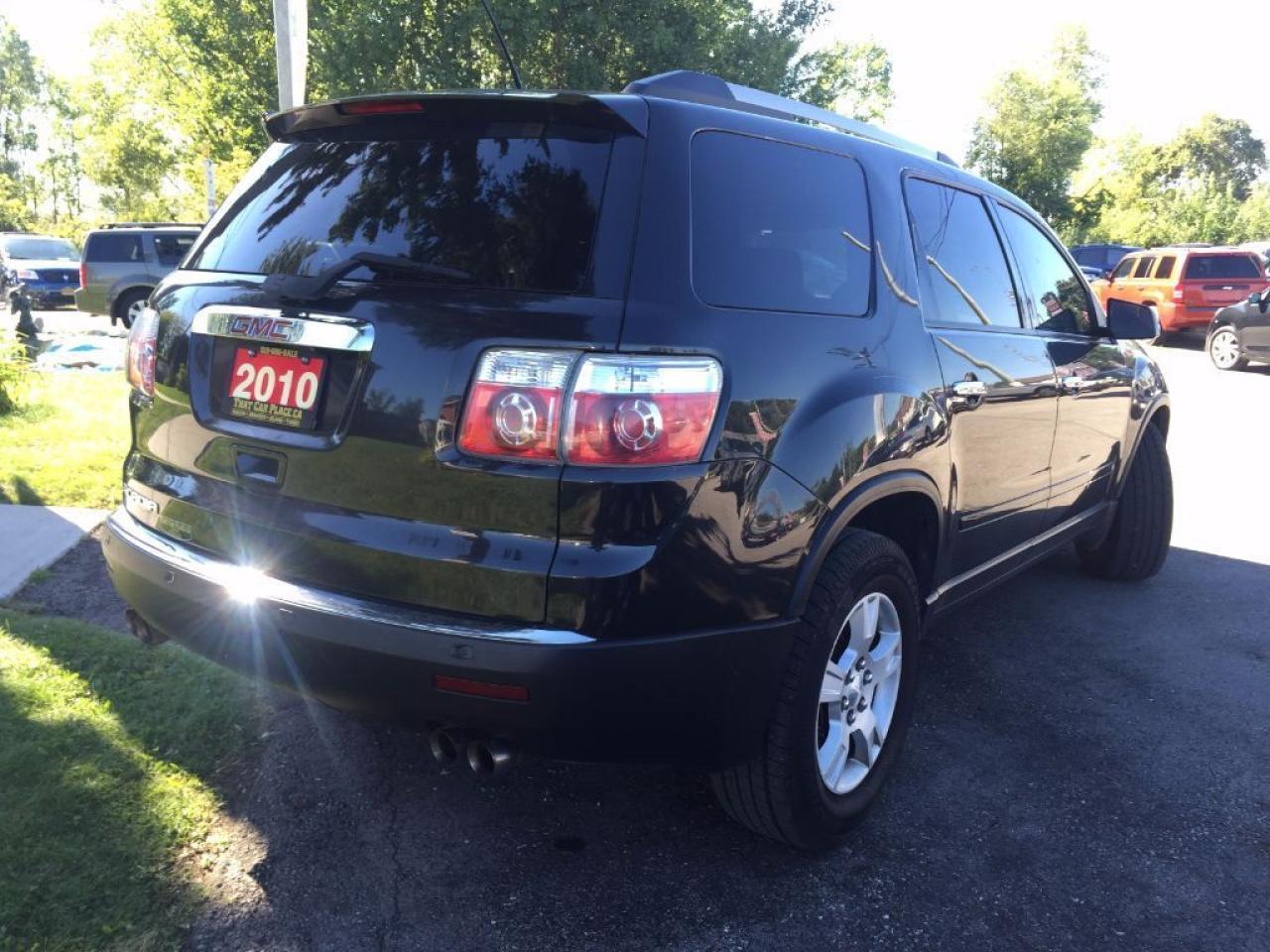 This loaded 2010 GMC Acadia is priced to sell and won't be here long. Extremely clean inside and out this vehicle comes equipped with a Rear Backup Cam/Sensors, V6, 7 Seater, Tinted Windows, Bluetooth and many more awesome features. Call 1-519-686-7253 or come visit us at 443 Exeter Rd.Â