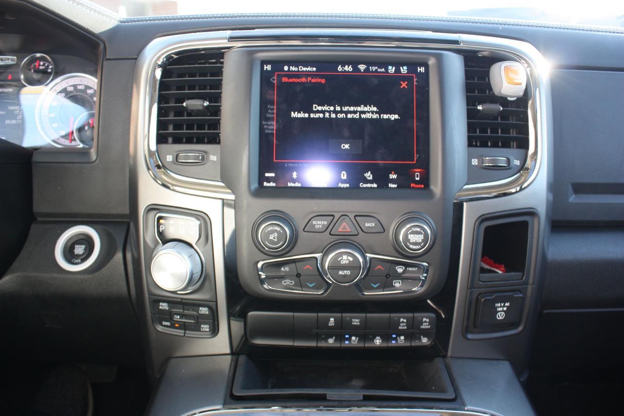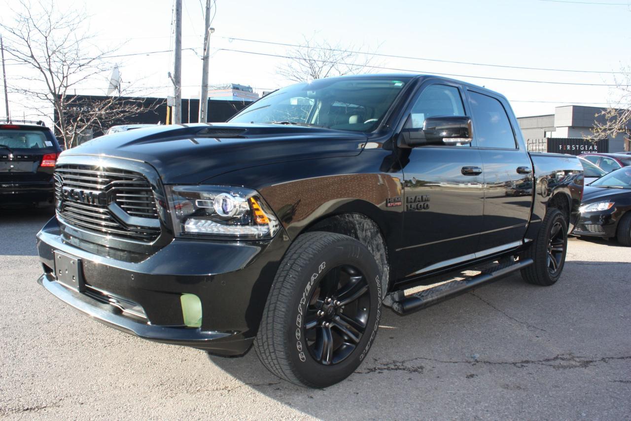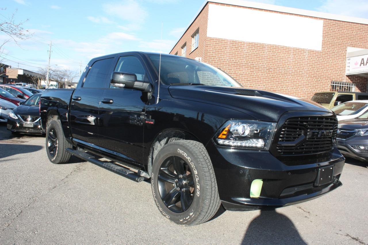 THIS 2018 DODGE RAM SPORT, NIGHT PACKAGE, ONE OWNER, CLEAN CARPROOF COMES WITH FULL POWER GROUP OPTIONS, FULL LEATHER, SUNROOF, APPLE CARPLAY, PUSH START, SMART ACCESS, COOLED SEATS, HEATED STEERING, NAVIGATION, BLUETOOTH, BACKUP CAMERA, TOUCH SCREEN DISPLAY, HEATED SEATS, AND MUCH MUCH MORE, THIS VEHICLE COMES FULLY CERTIFIED, E-TEST AND ADMIN FEES ALL INCLUDED IN THE PRICE, FOR MORE INFO PLEASE CONTACT US AT 1855-350-1313