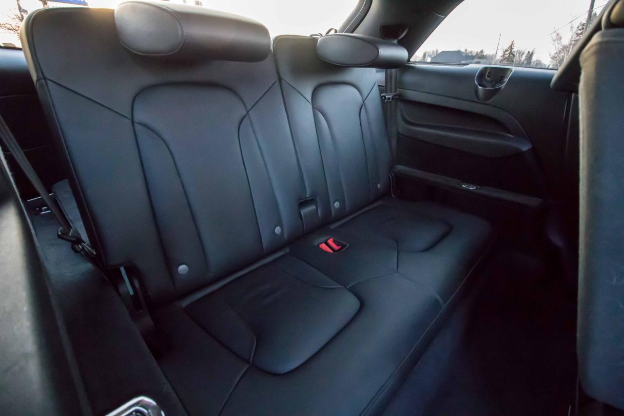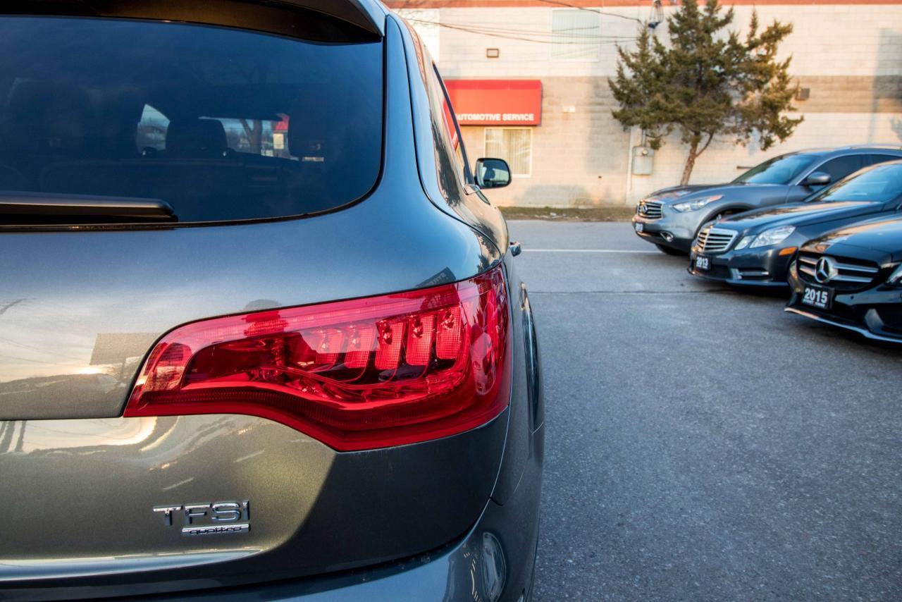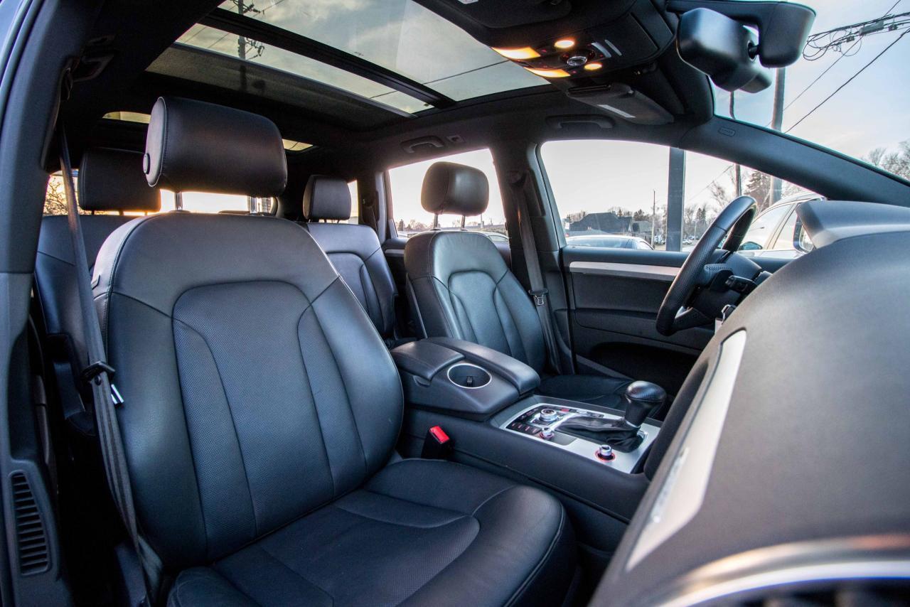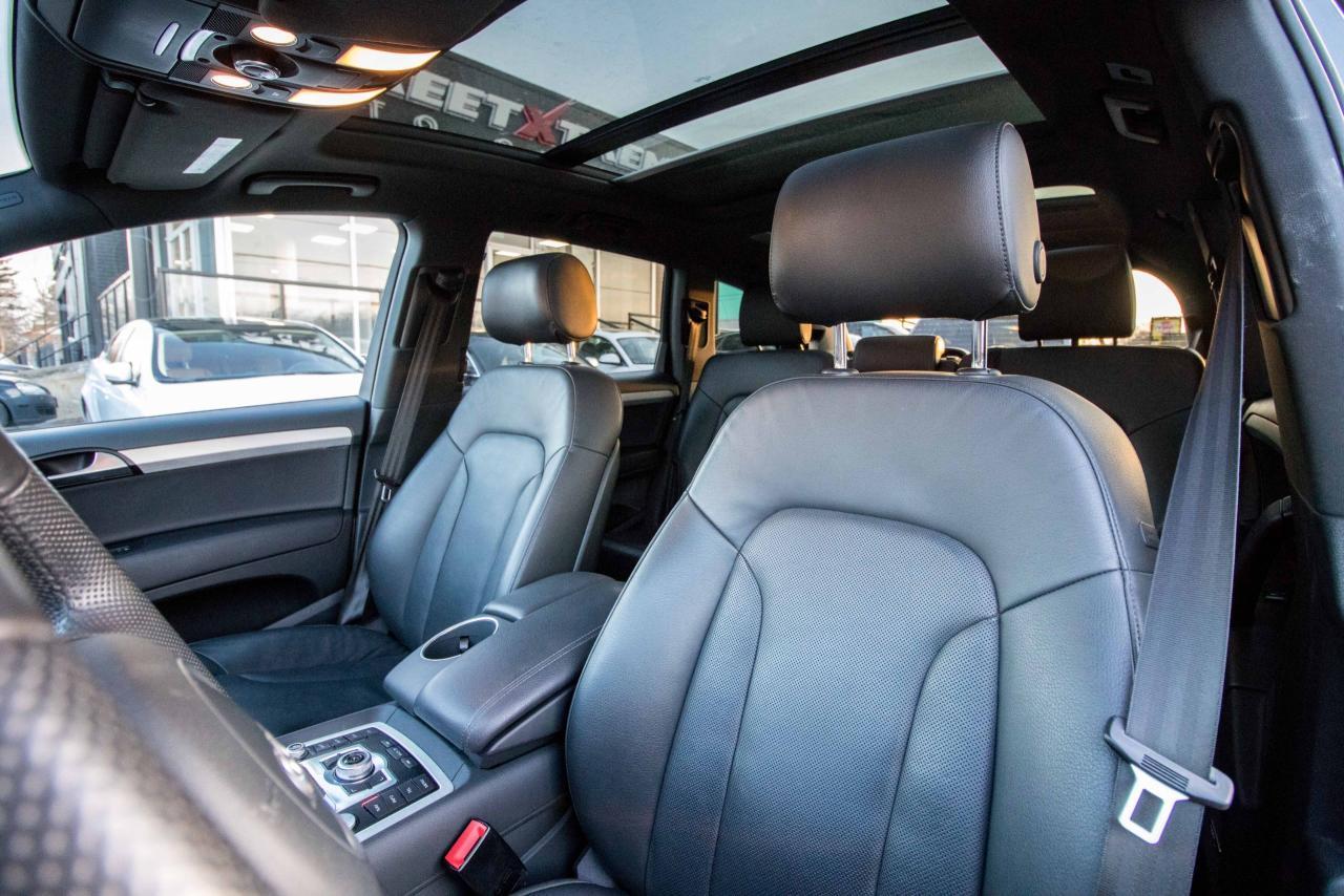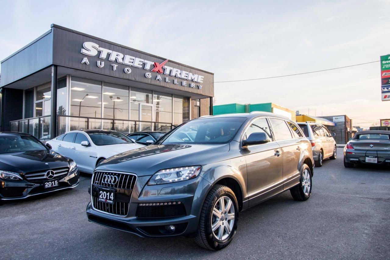 The 2014 Audi Q7 is the flagship luxury SUV in the four-ring brand’s lineup, and the model serves well in that capacity. The large, seven-seat crossover comes with a SUPER CHARGED 3.0 litre V6 engine that produces 333HP and 325 lb-ft of torque!! Inside, the Q7 gets a luxurious cabin with standard leather upholstery, 12-way power adjustable heated front seats, dual-zone climate control, 40/20/40 split folding and sliding rear seats, Bluetooth hands-free capability, and an 11-speaker sound system. Heated rear seats, a panoramic sunroof, and Audi MMI navigation system with Audi Connect infotainment.