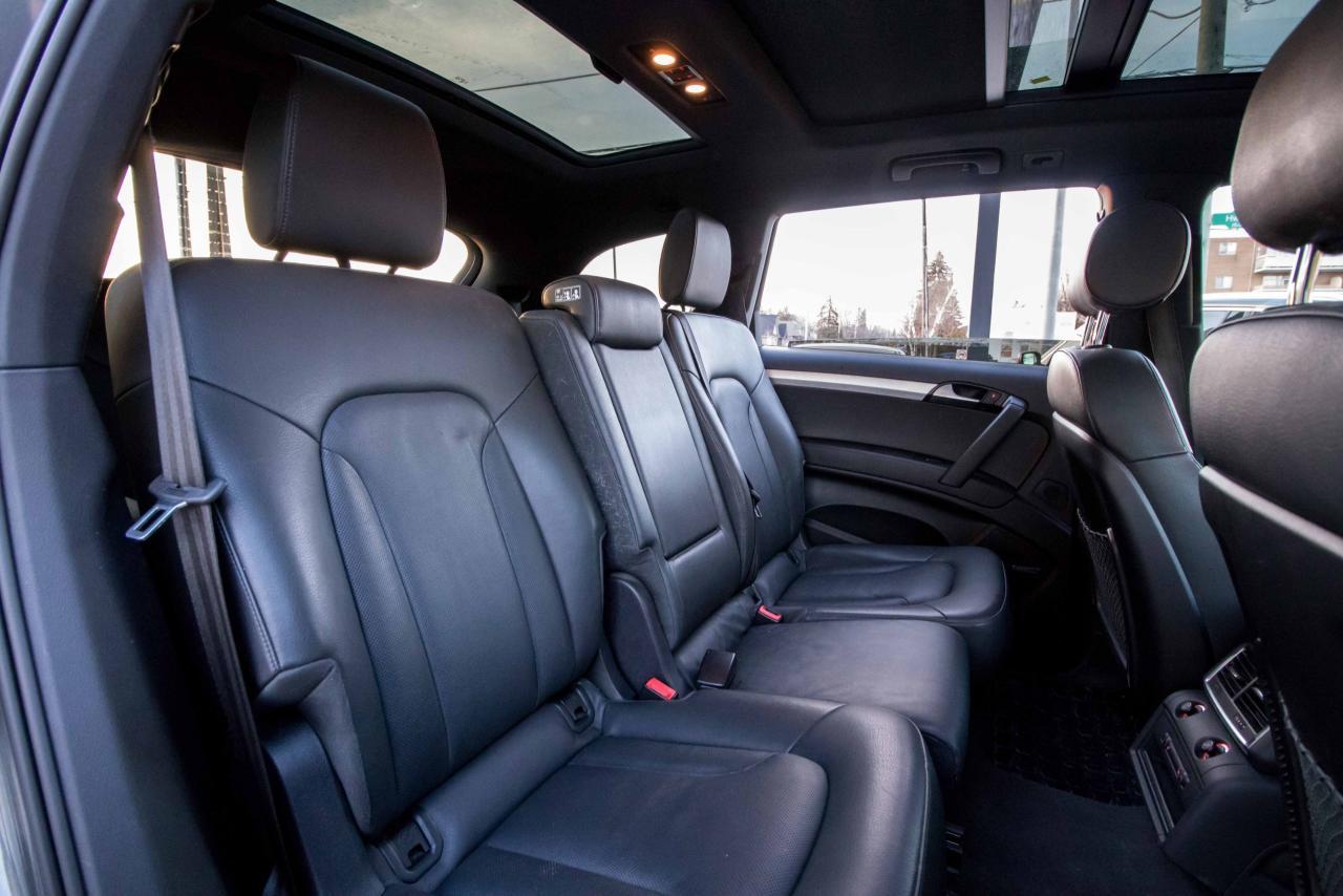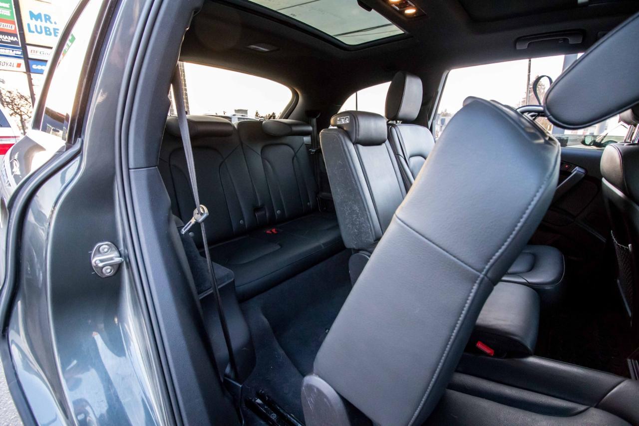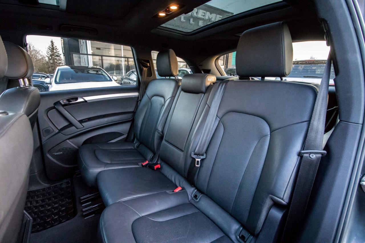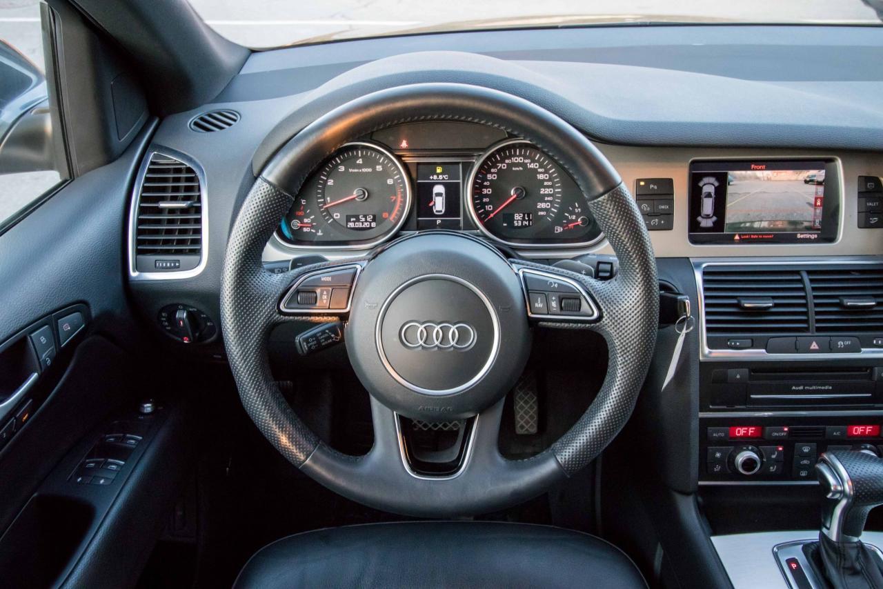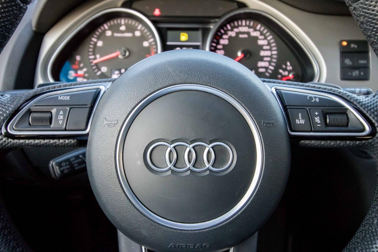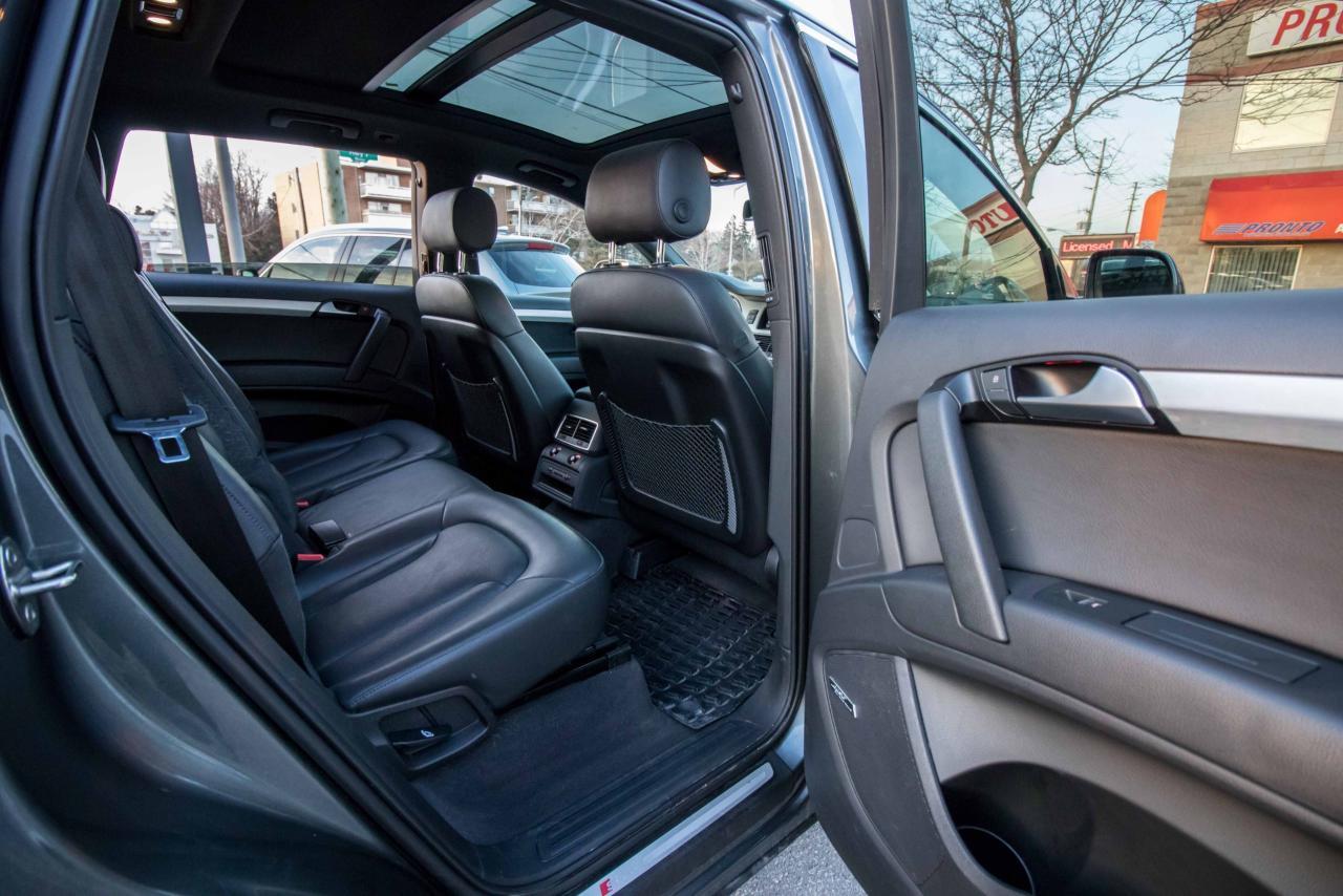 The 2014 Audi Q7 is the flagship luxury SUV in the four-ring brand’s lineup, and the model serves well in that capacity. The large, seven-seat crossover comes with a SUPER CHARGED 3.0 litre V6 engine that produces 333HP and 325 lb-ft of torque!! Inside, the Q7 gets a luxurious cabin with standard leather upholstery, 12-way power adjustable heated front seats, dual-zone climate control, 40/20/40 split folding and sliding rear seats, Bluetooth hands-free capability, and an 11-speaker sound system. Heated rear seats, a panoramic sunroof, and Audi MMI navigation system with Audi Connect infotainment.