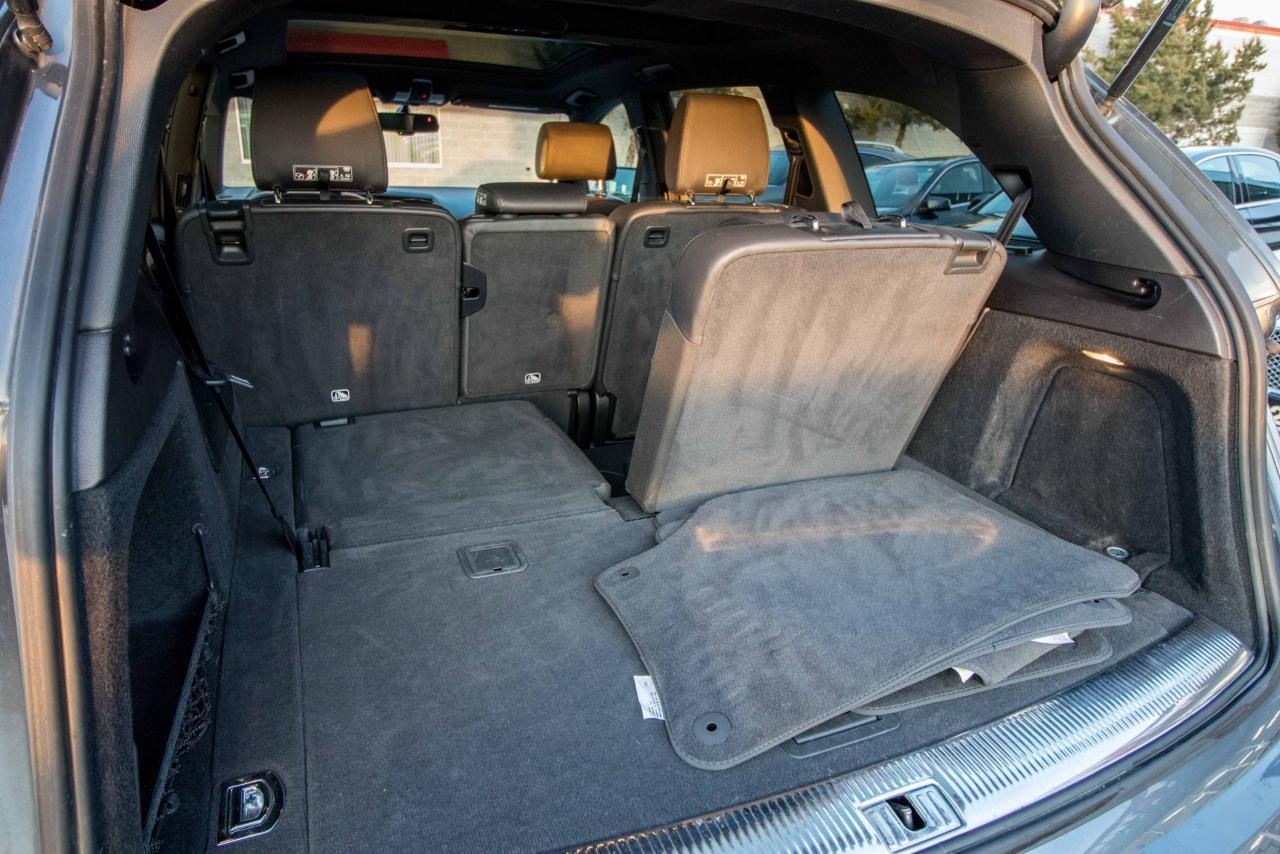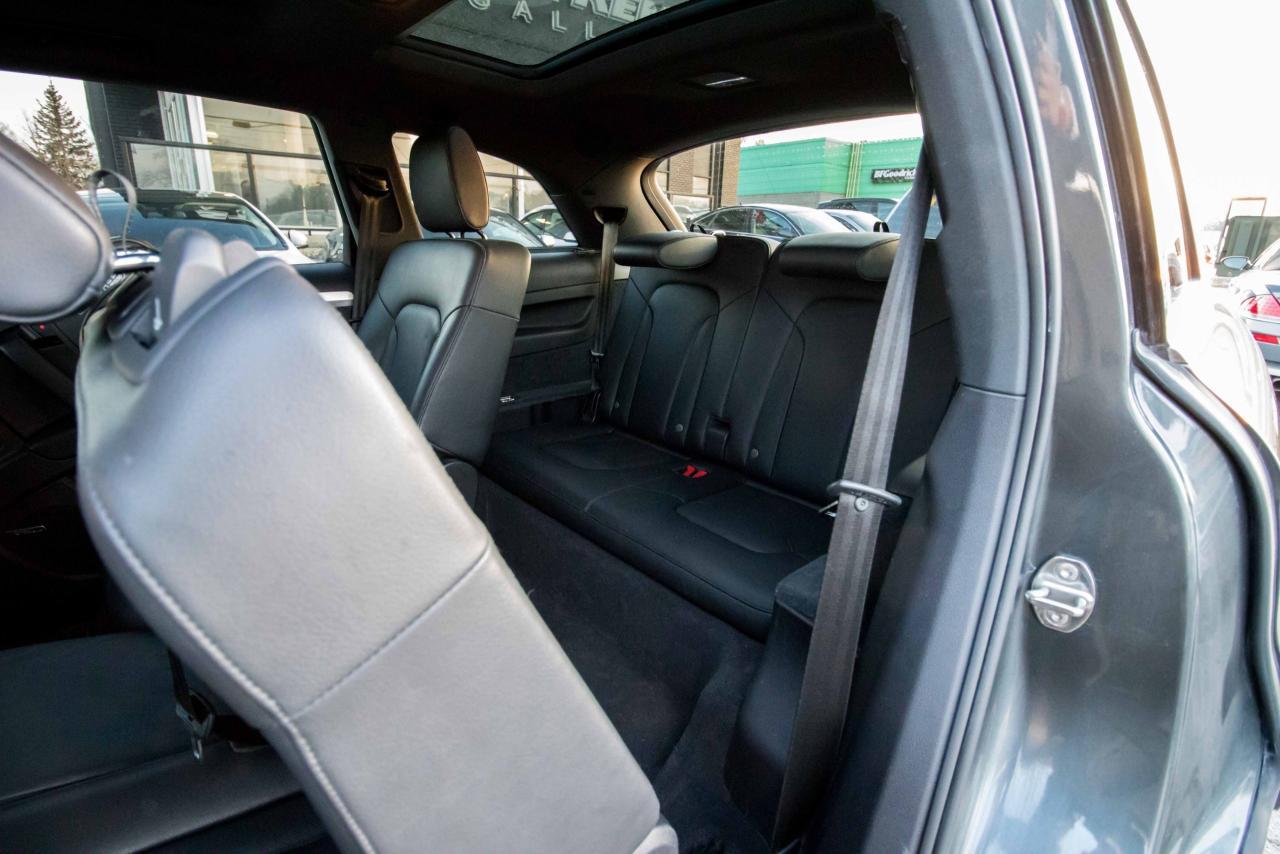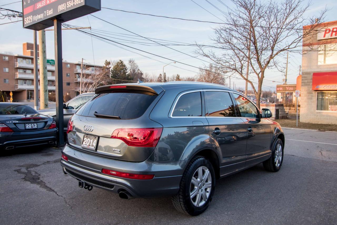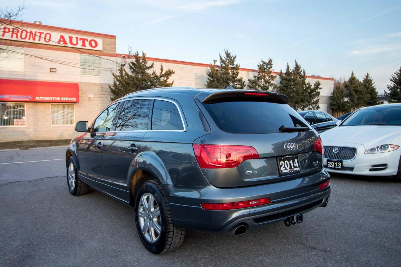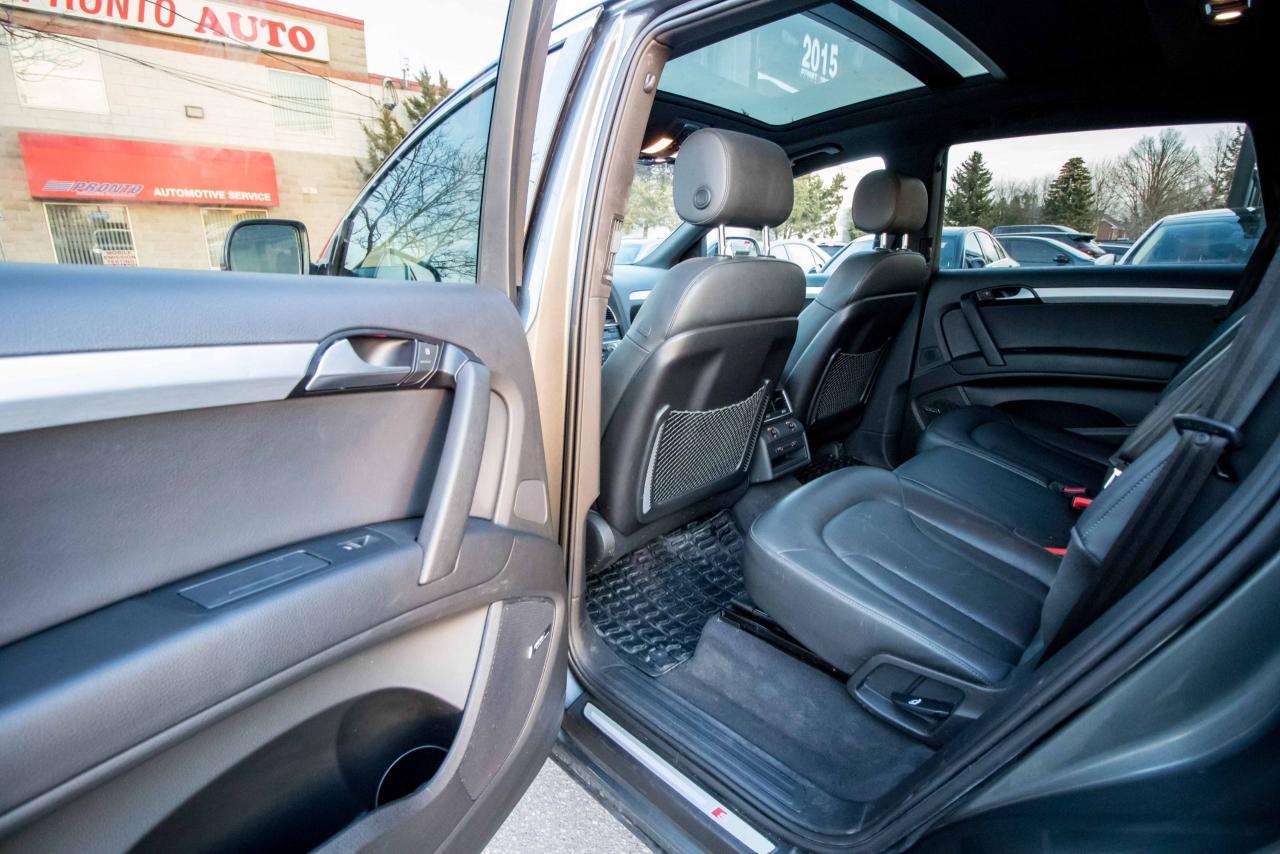 The 2014 Audi Q7 is the flagship luxury SUV in the four-ring brand’s lineup, and the model serves well in that capacity. The large, seven-seat crossover comes with a SUPER CHARGED 3.0 litre V6 engine that produces 333HP and 325 lb-ft of torque!! Inside, the Q7 gets a luxurious cabin with standard leather upholstery, 12-way power adjustable heated front seats, dual-zone climate control, 40/20/40 split folding and sliding rear seats, Bluetooth hands-free capability, and an 11-speaker sound system. Heated rear seats, a panoramic sunroof, and Audi MMI navigation system with Audi Connect infotainment.