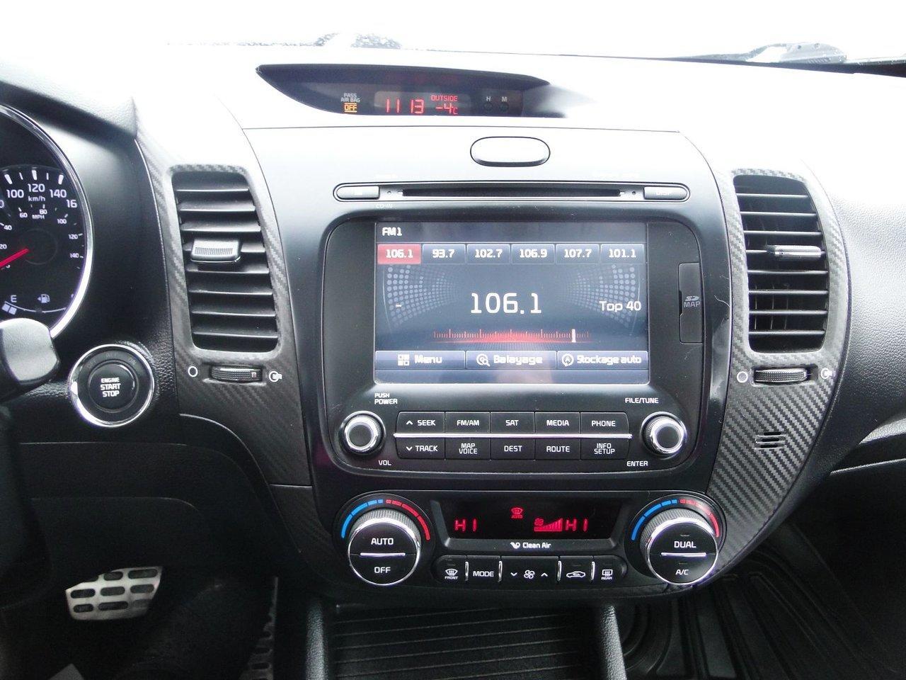 Kia Forte SX * MAGS* CUIR * NAV * CAMERA RECUL * * JAMAIS ACCIDENT? * D?MARREUR A DISTANCE * SI?GES CHAUFFANTS AU 4 SI?GES * 2014Rgulateur de vitesse, Toit ouvrant, Freins ABS, Contrle de stabilit, Coussin gonflable conducteur, Coussins gonflables latraux, Dmarreur distance, Lecteur CD, Lecteur MP3, Portes lectriques, Siges lectriques, Tachymtre, Vitres lectriques, Air climatis, Intrieur en cuir, Climatisation deux zones, Commandes audio au volant, Siges arrires rabattables, Siges chauffants, Volant ajustable, Phares haute intensit, Ordinateur de bord, Tout quip, Camra de recul, Radio AM/FM, Rtroviseurs, Direction assiste, Tldverrouillage, Rtroviseurs chauffants, Banquette arrire divis, Sige rglage lectrique, Dmarrage sans cl, Rtroviseurs lectriques, Jantes en alliage, Antipatinage, Phares antibrouillards, Prise Auxiliaire, Port USB, Climatiseur automatique