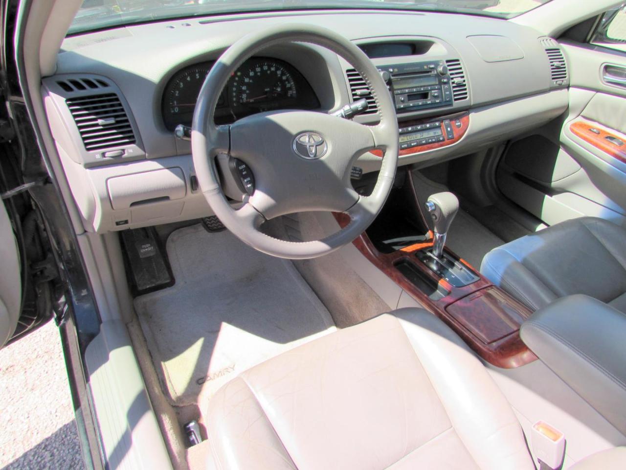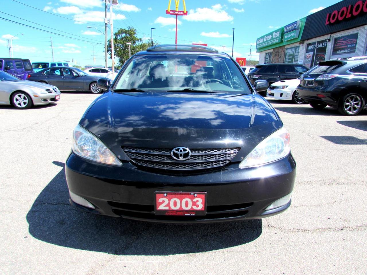 Very Clean Toyota Camry LE 3.0L Sedan With Automatic Transmission, Black on Grey Leather Interior. Loaded with: Power Door Locks, Power Windows, CD, AC, Heated Leather Bucket Seats, Sunroof, Alloys, Steering Mount Controls. Auto Moto Of Ontario @ 583 Main St E. , Milton, L9T3J2 ON. Please call for further details. 905-281-2255, ALL TRADE INS ARE WELCOMED!! ALL TRADE-IN VEHICLES OFFERED FOR SALE AS TRADED. THE VEHICLE WAS DRIVEN DAILY PRIOR TO BEING TRADED IN. We are required by OMVIC to state that this vehicle is being sold AS IS, unfit, not e-tested and is not represented as being in a road worthy condition, mechanically sound or maintained at any guaranteed level of quality. The vehicle may not be fit for use as a means of transportation and may require substantial repairs at the purchasers expense. It may not be possible to register the vehicle to be driven in its current condition