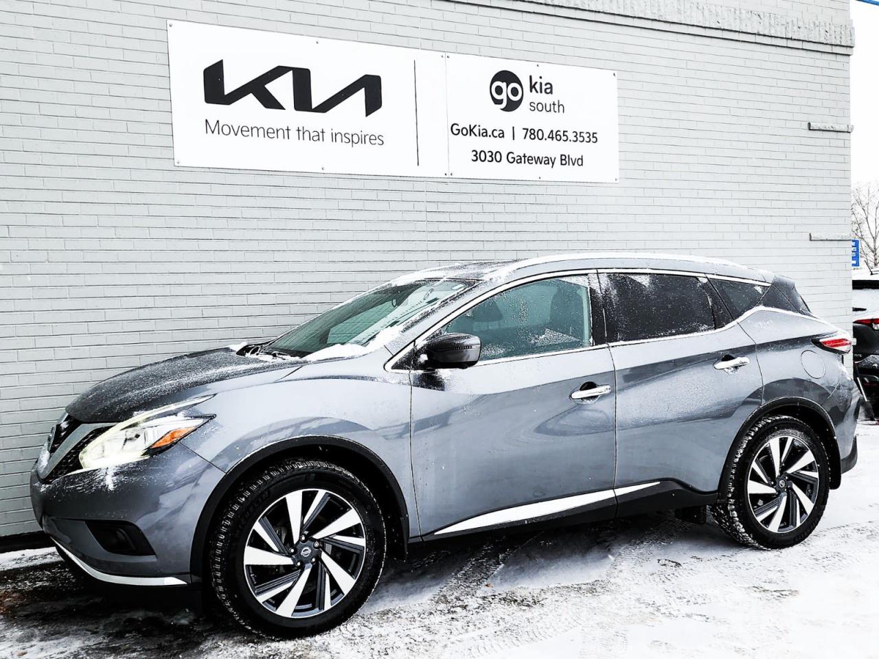 Recent Arrival! 2018 Nissan Murano Platinum AWD CVT with Xtronic 3.5L 6-Cylinder DOHC 24VCVT with Xtronic, AWD, 4.677 Axle Ratio, 4-Wheel Disc Brakes, ABS brakes, Active Cruise Control, Air Conditioning, Alloy wheels, AM/FM radio: SiriusXM, Apple CarPlay/Android Auto, Automatic temperature control, Block heater, Brake assist, Bumpers: body-colour, CD player, Child-Seat-Sensing Airbag, Compass, Delay-off headlights, Driver door bin, Driver vanity mirror, Dual front impact airbags, Dual front side impact airbags, Electronic Stability Control, Four wheel independent suspension, Front anti-roll bar, Front Bucket Seats, Front dual zone A/C, Front fog lights, Front reading lights, Full Tank of Fuel & Floor Mats, Fully automatic headlights, Heated door mirrors, Heated front seats, Heated steering wheel, Illuminated entry, Knee airbag, Leather Appointed Seat Trim, Low tire pressure warning, Navigation System, Occupant sensing airbag, Outside temperature display, Overhead airbag, Overhead console, Panic alarm, Passenger vanity mirror, Power door mirrors, Power driver seat, Power Liftgate, Power moonroof, Power steering, Power windows, Radio data system, Radio: AM/FM/CD Audio w/NissanConnect Navigation, Rear anti-roll bar, Rear reading lights, Rear window defroster, Rear window wiper, Remote keyless entry, Roof rack: rails only, Security system, Speed control, Speed-sensing steering, Speed-Sensitive Wipers, Split folding rear seat, Spoiler, Steering wheel mounted audio controls, Tachometer, Telescoping steering wheel, Tilt steering wheel, Traction control, Trip computer, Turn signal indicator mirrors, Variably intermittent wipers.Reviews: * Most owners enjoy the Murano's upscale styling, upscale cabin, feature content bang for the buck and solid, comfortable, and confident ride. Feature content favourites include the Bose stereo system and panoramic sunroof. Many say they appreciate the added traction of the Murano's fully automatic AWD system in inclement weather, too. By and large, Murano seems to have satisfied the needs of many shoppers after an upscale crossover driving experience at a reasonable price. Source: autoTRADER.caIN HOUSE FINANCING, IN HOUSE LEASING AVAILABLE O.A.C.If you are interested and need more information call or message our sales team, we will be glad to help you now!!Our knowledgeable sales staff will help assist you with every step. To book a test drive or receive further information give us a call at (780)-465-3535 or email us: kiahmed@gokia.caAt Go Kia, were happy to help! Proudly serving Edmonton and all of Alberta including St. Albert, Wetaskiwin, Fort McMurray, Grande Prairie, Drayton Valley, Nisku, Leduc, Rimby, Hinton, St. Paul, Lloydminster, Edson, and all of Western Canada!An AMVIC Licensed Business. Value Priced vehicles are aggressively priced and may require some additional mechanical or cosmetic repairs, all disclosed on a Vehicle Assessment Report!This vehicle may be leased or financed by anyone*, however, due to the recent increase in fraudulent vehicle purchase activity, Go Kia reserves the right to decline a transaction on suspicion of non-retail intentions including but not limited to wholesaling or exporting.*on approved credit, see dealer for detailsIN HOUSE FINANCING, IN HOUSE LEASING AVAILABLE O.A.C.If you are interested and need more information call or message our sales team, we will be glad to help you now!!Our knowledgeable sales staff will help assist you with every step. To book a test drive or receive further information give us a call at (780)-465-3535 or email us: kiahmed@gokia.caAt Go Kia, were happy to help! Proudly serving Edmonton and all of Alberta including St. Albert, Wetaskiwin, Fort McMurray, Grande Prairie, Drayton Valley, Nisku, Leduc, Rimby, Hinton, St. Paul, Lloydminster, Edson, and all of Western Canada!An AMVIC Licensed Business. Value Priced vehicles are aggressively priced and may require some additional mechanical or cosmetic repairs, all disclosed on a Vehicle Assessment Report!This vehicle may be leased or financed by anyone*, however, due to the recent increase in fraudulent vehicle purchase activity, Go Kia reserves the right to decline a transaction on suspicion of non-retail intentions including but not limited to wholesaling or exporting.*on approved credit, see dealer for details