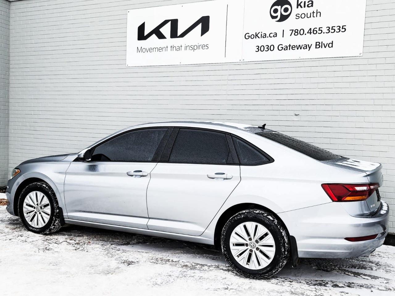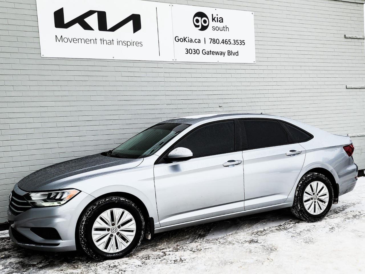 IN HOUSE FINRecent Arrival! Silver 2019 Volkswagen Jetta Comfortline 1.4 TSI FWD 8-Speed Automatic with Tiptronic 1.4L TSICloth, 4 Speakers, 4-Wheel Disc Brakes, ABS brakes, Air Conditioning, Alloy wheels, AM/FM radio, App-Connect (Android Auto/Apple CarPlay/MirrorLink), Brake assist, Bumpers: body-colour, Delay-off headlights, Driver door bin, Driver vanity mirror, Dual front impact airbags, Dual front side impact airbags, Eco Cloth Seating Surfaces, Electronic Stability Control, Exterior Parking Camera Rear, Front anti-roll bar, Front Bucket Seats, Front reading lights, Front wheel independent suspension, Fully automatic headlights, Heated door mirrors, Heated Front Comfort Seats, Heated front seats, Illuminated entry, Low tire pressure warning, Occupant sensing airbag, Outside temperature display, Overhead airbag, Overhead console, Panic alarm, Passenger door bin, Passenger vanity mirror, Power door mirrors, Power steering, Power windows, Radio data system, Radio: 6.5" Touchscreen, Rear anti-roll bar, Rear reading lights, Rear window defroster, Remote keyless entry, Security system, Speed control, Speed-sensing steering, Split folding rear seat, Steering wheel mounted audio controls, Tachometer, Telescoping steering wheel, Tilt steering wheel, Traction control, Trip computer, Variably intermittent wipers, Wheels: 16" x 6.5J Rama Painted Alloy.ANCING, IN HOUSE LEASING AVAILABLE O.A.C.If you are interested and need more information call or message our sales team, we will be glad to help you now!!Our knowledgeable sales staff will help assist you with every step. To book a test drive or receive further information give us a call at (780)-465-3535 or email us: kiahmed@gokia.caAt Go Kia, were happy to help! Proudly serving Edmonton and all of Alberta including St. Albert, Wetaskiwin, Fort McMurray, Grande Prairie, Drayton Valley, Nisku, Leduc, Rimby, Hinton, St. Paul, Lloydminster, Edson, and all of Western Canada!An AMVIC Licensed Business. Value Priced vehicles are aggressively priced and may require some additional mechanical or cosmetic repairs, all disclosed on a Vehicle Assessment Report!This vehicle may be leased or financed by anyone*, however, due to the recent increase in fraudulent vehicle purchase activity, Go Kia reserves the right to decline a transaction on suspicion of non-retail intentions including but not limited to wholesaling or exporting.*on approved credit, see dealer for details