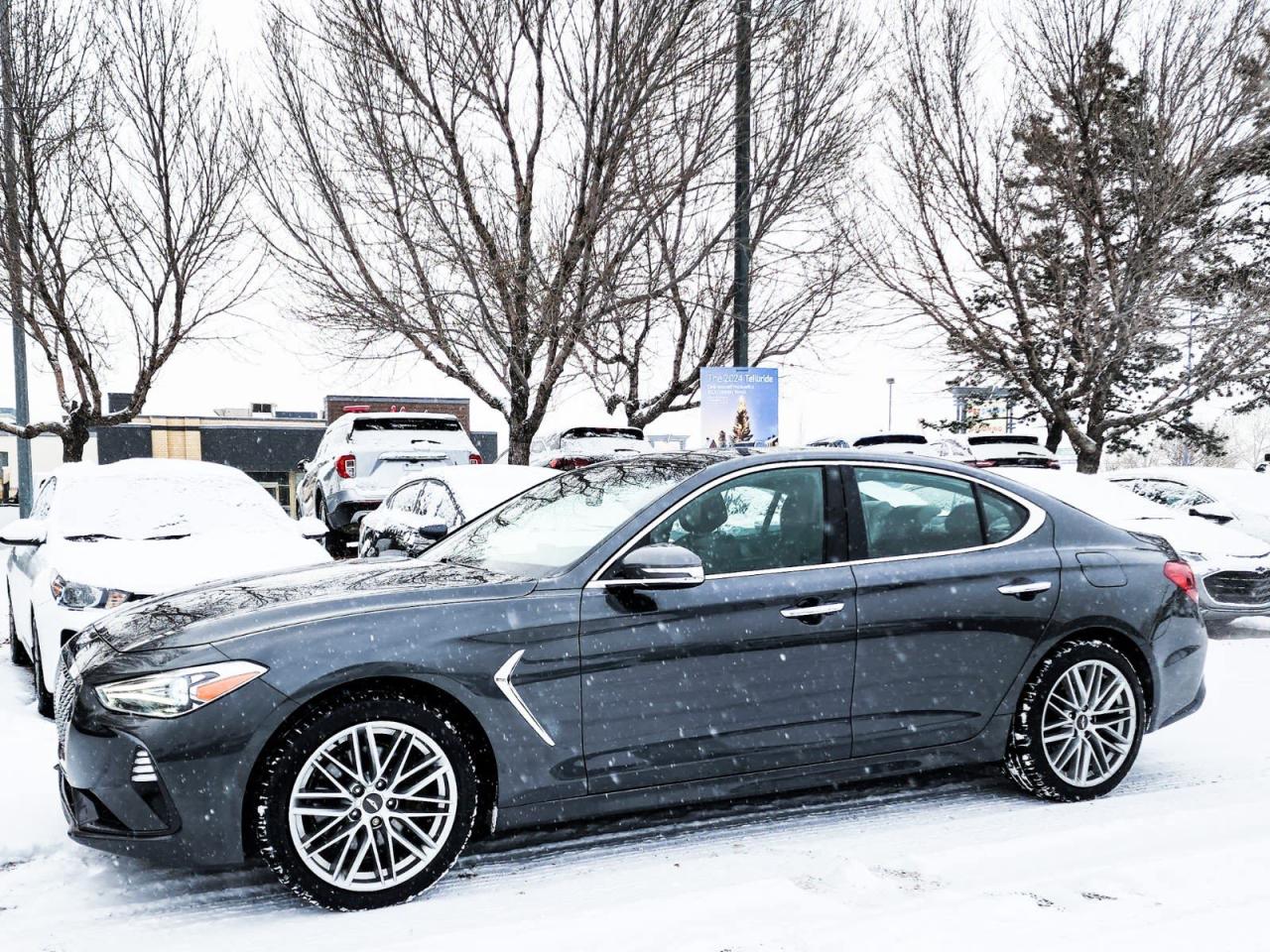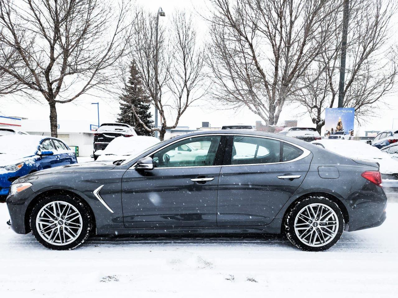 Recent Arrival! Himalayan Gray 2020 Genesis G70 2.0T Advanced AWD 8-Speed Automatic with SHIFTRONIC I44-Wheel Disc Brakes, 6 Speakers, ABS brakes, Air Conditioning, Alloy wheels, AM/FM radio: SiriusXM, Android Auto & Apple CarPlay, Anti-whiplash front head restraints, Artificial Leather Seat Trim, Auto High-beam Headlights, Auto-dimming Rear-View mirror, Automatic temperature control, Brake assist, Bumpers: body-colour, Delay-off headlights, Driver door bin, Driver vanity mirror, Dual front impact airbags, Dual front side impact airbags, Electronic Stability Control, Emergency communication system: Genesis Connected Services, Exterior Parking Camera Rear, Four wheel independent suspension, Front anti-roll bar, Front Bucket Seats, Front dual zone A/C, Front reading lights, Fully automatic headlights, Garage door transmitter: HomeLink, Heated door mirrors, Heated Front Bucket Seats, Heated front seats, Heated steering wheel, Illuminated entry, Knee airbag, Low tire pressure warning, Occupant sensing airbag, Outside temperature display, Overhead airbag, Overhead console, Panic alarm, Passenger door bin, Passenger vanity mirror, Power door mirrors, Power driver seat, Power moonroof, Power steering, Power windows, Radio: AM/FM/SiriusXM/MP3 Audio System, Rear anti-roll bar, Rear reading lights, Rear window defroster, Remote keyless entry, Security system, Speed control, Speed-Sensitive Wipers, Split folding rear seat, Steering wheel mounted audio controls, Tachometer, Telescoping steering wheel, Tilt steering wheel, Traction control, Turn signal indicator mirrors, Variably intermittent wipers, Wheels: 18 x 8J Aluminum Alloy.Reviews: * Strong overall value, a nicely balanced ride and handling equation, a unique and upscale interior, and a straightforward navigation and central command interface are among the most common praise points from Genesis G70 owners. Source: autoTRADER.caIN HOUSE FINANCING, IN HOUSE LEASING AVAILABLE O.A.C.If you are interested and need more information call or message our sales team, we will be glad to help you now!!Our knowledgeable sales staff will help assist you with every step. To book a test drive or receive further information give us a call at (780)-465-3535 or email us: kiahmed@gokia.caAt Go Kia, were happy to help! Proudly serving Edmonton and all of Alberta including St. Albert, Wetaskiwin, Fort McMurray, Grande Prairie, Drayton Valley, Nisku, Leduc, Rimby, Hinton, St. Paul, Lloydminster, Edson, and all of Western Canada!An AMVIC Licensed Business. Value Priced vehicles are aggressively priced and may require some additional mechanical or cosmetic repairs, all disclosed on a Vehicle Assessment Report!This vehicle may be leased or financed by anyone*, however, due to the recent increase in fraudulent vehicle purchase activity, Go Kia reserves the right to decline a transaction on suspicion of non-retail intentions including but not limited to wholesaling or exporting.*on approved credit, see dealer for details