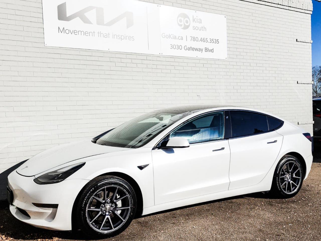 Recent Arrival! White 2021 Tesla Model 3 Standard Range Plus RWD 1-Speed Automatic Electric Motor4-Wheel Disc Brakes, 8 Speakers, ABS brakes, Air Conditioning, Alloy wheels, Auto High-beam Headlights, Auto-dimming door mirrors, Auto-dimming Rear-View mirror, Automatic temperature control, Brake assist, Bumpers: body-colour, Compass, Delay-off headlights, Driver door bin, Driver vanity mirror, Dual front impact airbags, Dual front side impact airbags, Electronic Stability Control, Exterior Parking Camera Rear, Four wheel independent suspension, Front anti-roll bar, Front Bucket Seats, Front dual zone A/C, Front reading lights, Fully automatic headlights, Genuine wood dashboard insert, Heated door mirrors, Heated Front Bucket Seats, Heated front seats, Heated rear seats, Heated steering wheel, Illuminated entry, Knee airbag, Low tire pressure warning, Memory seat, Navigation System, Occupant sensing airbag, Outside temperature display, Overhead airbag, Passenger door bin, Passenger vanity mirror, Power door mirrors, Power driver seat, Power passenger seat, Power steering, Power windows, Premium Seat Trim, Radio data system, Radio: Upgraded Audio System, Rear reading lights, Rear window defroster, Remote keyless entry, Security system, Speed control, Speed-sensing steering, Split folding rear seat, Steering wheel memory, Steering wheel mounted A/C controls, Steering wheel mounted audio controls, Telescoping steering wheel, Tilt steering wheel, Traction control, Trip computer, Wheels: 18" x 8.5" Aero.IN HOUSE FINANCING, IN HOUSE LEASING AVAILABLE O.A.C.If you are interested and need more information call or message our sales team, we will be glad to help you now!!Our knowledgeable sales staff will help assist you with every step. To book a test drive or receive further information give us a call at (780)-465-3535 or email us: kiahmed@gokia.caAt Go Kia, were happy to help! Proudly serving Edmonton and all of Alberta including St. Albert, Wetaskiwin, Fort McMurray, Grande Prairie, Drayton Valley, Nisku, Leduc, Rimby, Hinton, St. Paul, Lloydminster, Edson, and all of Western Canada!An AMVIC Licensed Business. Value Priced vehicles are aggressively priced and may require some additional mechanical or cosmetic repairs, all disclosed on a Vehicle Assessment Report!This vehicle may be leased or financed by anyone*, however, due to the recent increase in fraudulent vehicle purchase activity, Go Kia reserves the right to decline a transaction on suspicion of non-retail intentions including but not limited to wholesaling or exporting.*on approved credit, see dealer for details