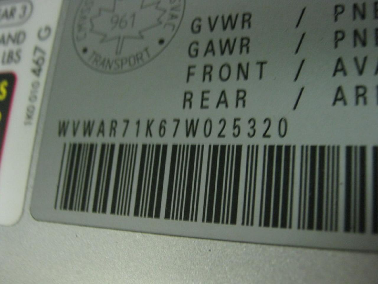 WVWAR71K67W025320