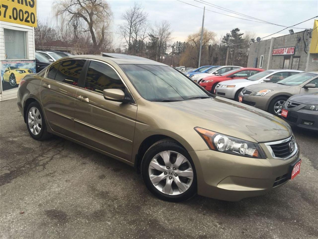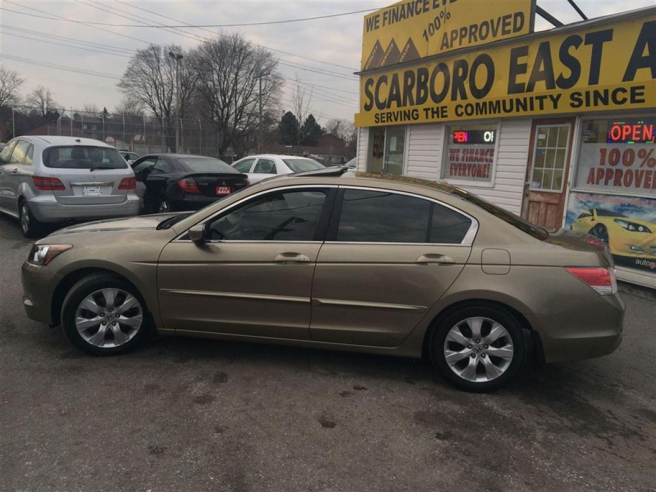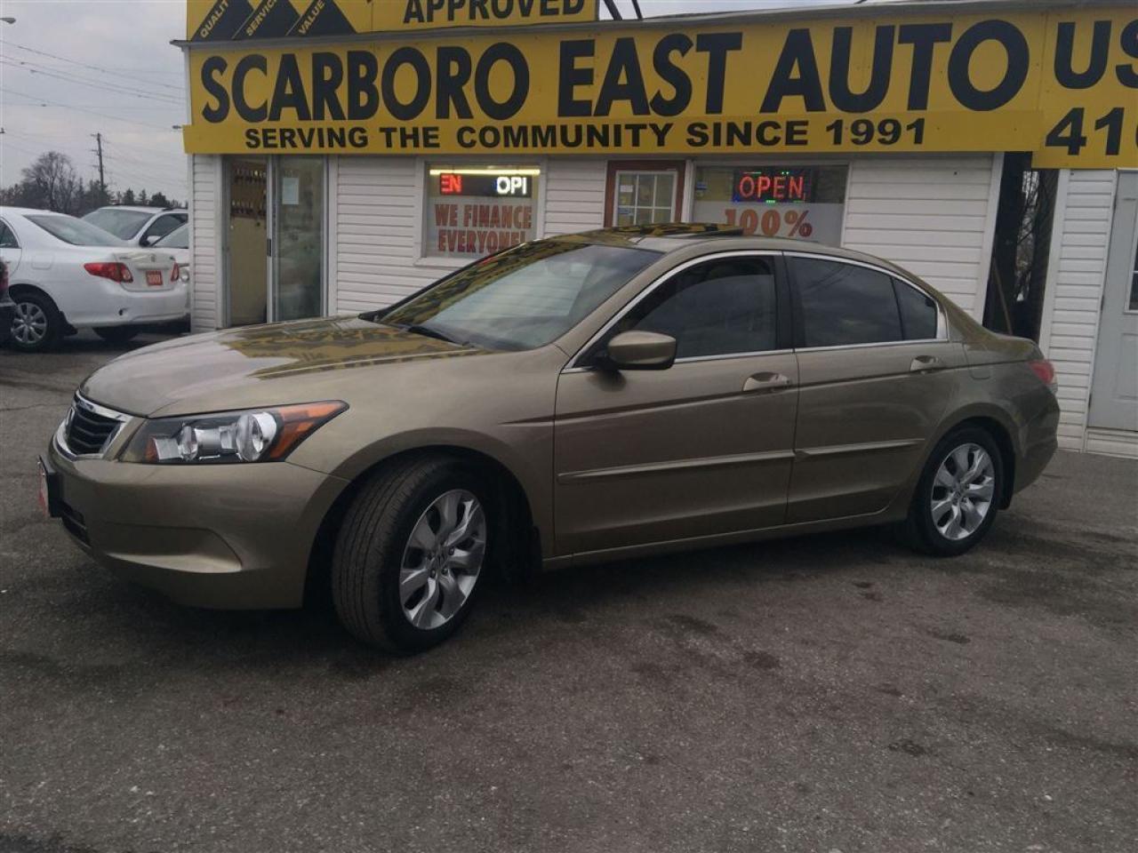 WE FINANCE EVERY ONE , 23 YEARS SERVING THE COMMUNITY,SAME LOCATION, SAME#4162870020 ------------------------------------------------------------------------------------------------------------------------------------ 4D , AUTO EXL WITH POWER MOON ROOF AND LEATHER INTERIOR , FULLY LOADED WITH POWER/HEATED SEATS AND ALLOY , EQUIPPED WITH AIR CONDITION , GOLD EXTERIOR ON TAN LEATHER INTERIOR , POWER WINDOWS , POWER DOOR LOCK , CRUISE CONTROL , TILT STEERING , STEERING CONTROL , POWER MIRRORS , INTERIOR TRIMS AND MUCH MORE , FULLY LOADED , LOCAL NEW CAR TRADE , LOOKS AND DRIVES LIKE NEW ------------------------------------------------------------------------------------------------------------------------------------ PLEASE MAKE SURE ALL INFORMATION AND OPTIONS ( AIR CONDITION) ARE CORRECT AND WORKING PRIOR TO PURCHASE , ADVERTISING COULD HAVE MISTAKES (COPY &PAST) PLEASE READ ALL DOCUMENTATION ( HISTORY ) AND BILL OF SALE , DUC FEE $495 WILL APPLY IN FINANCE DEALS ------------------------------------------------------------------------------------------------------------------------------------ ALL FUNDS HAS TO BE CERTIFIED ONLY . *All Prices are unfit prices plus HST. Vehicle is not drivable if not certified and not E-tested. SAFETY AND E TEST ARE AVAILABLE FOR $695 WITH 36 DAYS SAFETY WARRANTY ON ALL THE SAFETY ITEMS ------------------------------------------------------------------------------------------------------------------------------------ At SCARBORO E AUTO LTD we try and make your dreams come true at www.scarboroeauto.ca Good credit, bad credit or no credit at all. Our team of finance managers have worked their magic arranging finance or a lease for many of scarboro e auto?s customers. scarbro e auto, used car and all makes certified used vehicle volume dealer is located in scarborough ( pickering boarder) 4663 Kingston roads. Just 2 lights east of morning side scarborough. Not far from pickering , Ajax, Whitby, Oshawa, Markham, Toronto, New market, Richmond hill, Thorn hill, Agincourt, Milliken, Malvern and much of the greater Toronto area or GTA. if you are looking for a used Honda civic, a used Honda , a used toyota , a used nissan, a used mazda, a used , a used suzuki, a used kia, a used subaru, a used ford,a used chevy,a used gmc, a used pontiac, a used buick, a used bmw , a used mercedes , a used vw , a used audi , a used van or truck. scarboro e auto is waiting for you with one of the largest inventories in the greater Toronto and Pickering area. scarboro e auto has a great selection of certified used vehicles. our certified used vehicles are listed in auto trader, Toronto?s kijiji and our own web site www.scarboroeauto.ca to be eligible as one of the oldest certified used car . scarboro e auto offer preferred finance rates, powertrain warranty, e tested, safety and certified. Come in or call us at 416 287 0020 and ask us about a used car , a used van, a used SUV. Do not wait for a Saturday sale to take advantage of one of the biggest selection of used low price cars, vans and used SUV's in Ontario. scaroboro e auto ltd is your best