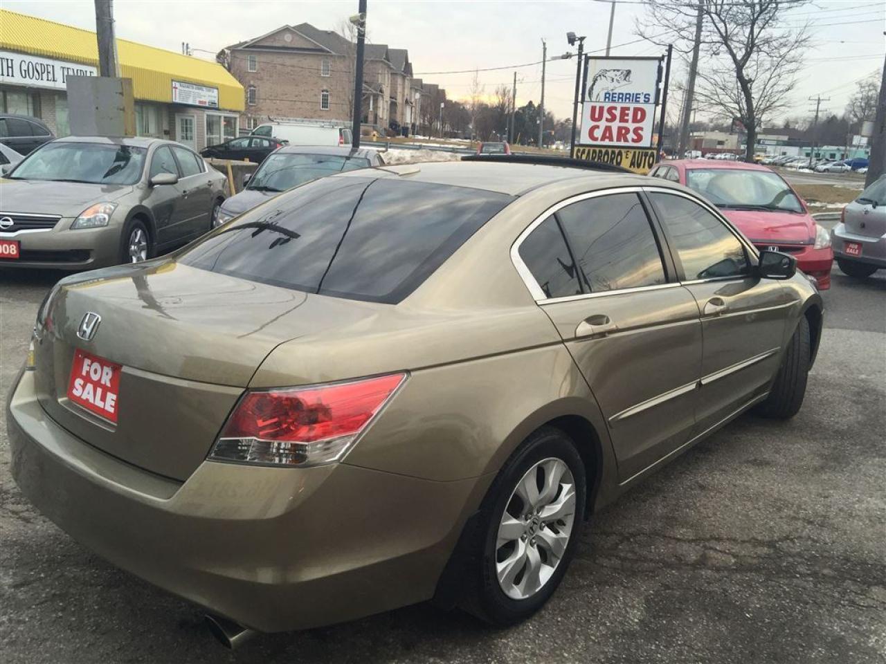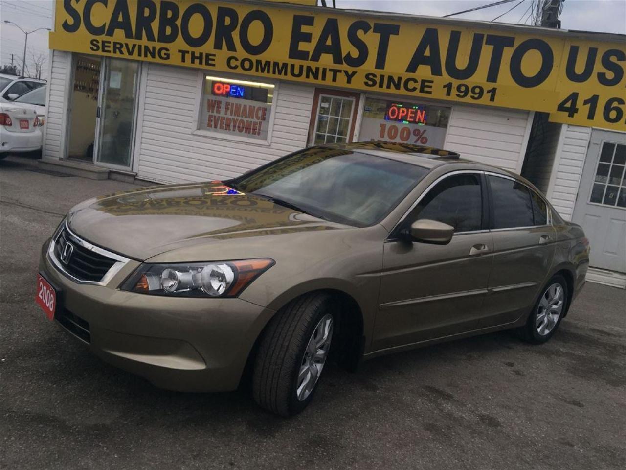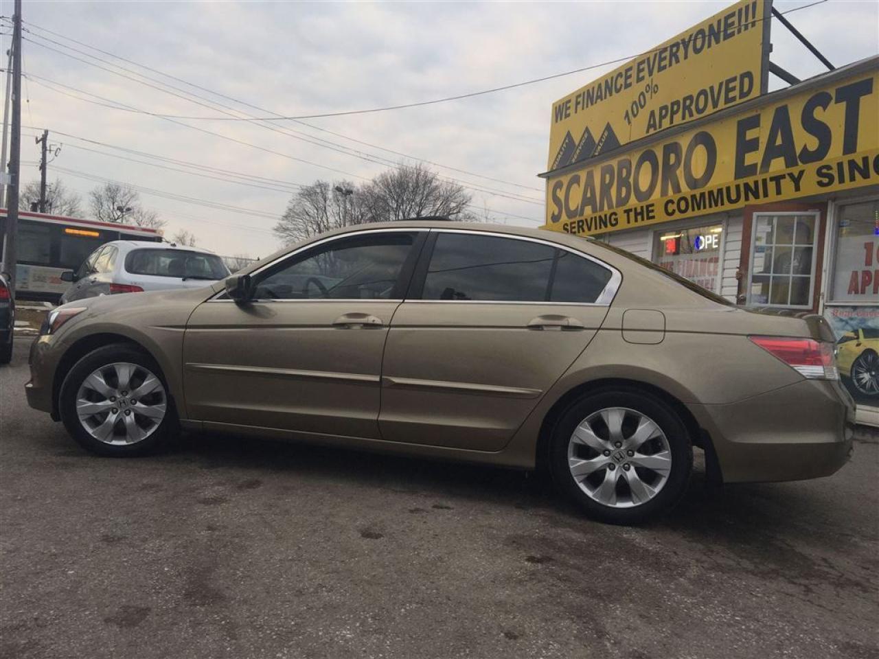 WE FINANCE EVERY ONE , 23 YEARS SERVING THE COMMUNITY,SAME LOCATION, SAME#4162870020 ------------------------------------------------------------------------------------------------------------------------------------ 4D , AUTO EXL WITH POWER MOON ROOF AND LEATHER INTERIOR , FULLY LOADED WITH POWER/HEATED SEATS AND ALLOY , EQUIPPED WITH AIR CONDITION , GOLD EXTERIOR ON TAN LEATHER INTERIOR , POWER WINDOWS , POWER DOOR LOCK , CRUISE CONTROL , TILT STEERING , STEERING CONTROL , POWER MIRRORS , INTERIOR TRIMS AND MUCH MORE , FULLY LOADED , LOCAL NEW CAR TRADE , LOOKS AND DRIVES LIKE NEW ------------------------------------------------------------------------------------------------------------------------------------ PLEASE MAKE SURE ALL INFORMATION AND OPTIONS ( AIR CONDITION) ARE CORRECT AND WORKING PRIOR TO PURCHASE , ADVERTISING COULD HAVE MISTAKES (COPY &PAST) PLEASE READ ALL DOCUMENTATION ( HISTORY ) AND BILL OF SALE , DUC FEE $495 WILL APPLY IN FINANCE DEALS ------------------------------------------------------------------------------------------------------------------------------------ ALL FUNDS HAS TO BE CERTIFIED ONLY . *All Prices are unfit prices plus HST. Vehicle is not drivable if not certified and not E-tested. SAFETY AND E TEST ARE AVAILABLE FOR $695 WITH 36 DAYS SAFETY WARRANTY ON ALL THE SAFETY ITEMS ------------------------------------------------------------------------------------------------------------------------------------ At SCARBORO E AUTO LTD we try and make your dreams come true at www.scarboroeauto.ca Good credit, bad credit or no credit at all. Our team of finance managers have worked their magic arranging finance or a lease for many of scarboro e auto?s customers. scarbro e auto, used car and all makes certified used vehicle volume dealer is located in scarborough ( pickering boarder) 4663 Kingston roads. Just 2 lights east of morning side scarborough. Not far from pickering , Ajax, Whitby, Oshawa, Markham, Toronto, New market, Richmond hill, Thorn hill, Agincourt, Milliken, Malvern and much of the greater Toronto area or GTA. if you are looking for a used Honda civic, a used Honda , a used toyota , a used nissan, a used mazda, a used , a used suzuki, a used kia, a used subaru, a used ford,a used chevy,a used gmc, a used pontiac, a used buick, a used bmw , a used mercedes , a used vw , a used audi , a used van or truck. scarboro e auto is waiting for you with one of the largest inventories in the greater Toronto and Pickering area. scarboro e auto has a great selection of certified used vehicles. our certified used vehicles are listed in auto trader, Toronto?s kijiji and our own web site www.scarboroeauto.ca to be eligible as one of the oldest certified used car . scarboro e auto offer preferred finance rates, powertrain warranty, e tested, safety and certified. Come in or call us at 416 287 0020 and ask us about a used car , a used van, a used SUV. Do not wait for a Saturday sale to take advantage of one of the biggest selection of used low price cars, vans and used SUV's in Ontario. scaroboro e auto ltd is your best