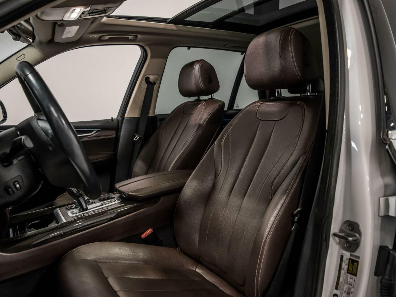 2015 BMW X5. white on brown leather interior, power windows, power locks, power mirrors, power seats, heated seats, memory seats, parking sensors, Fresh Start, GPS navigation, backup camera, panoramic sunroof, keyless entry and much more