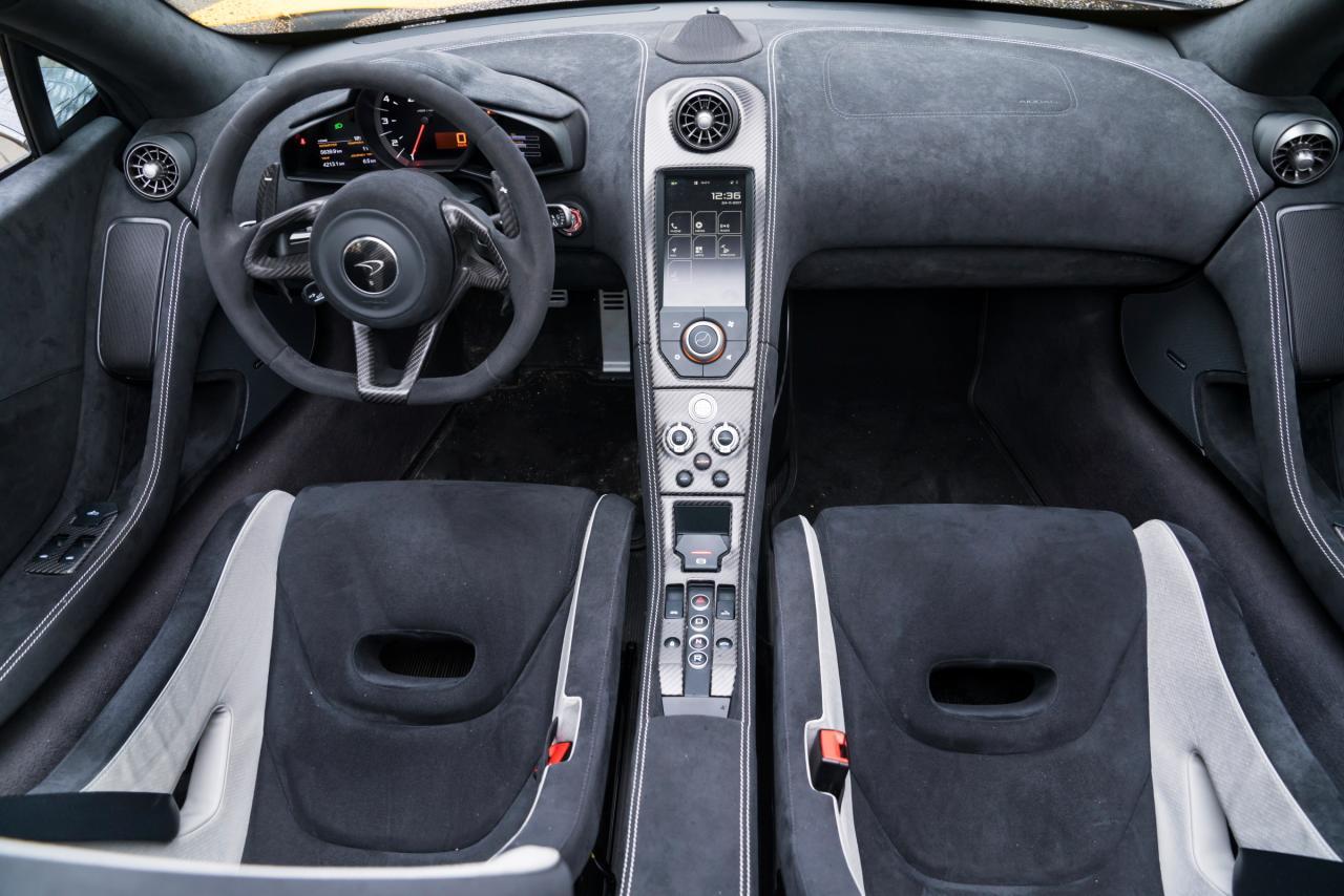 Options are: - 675LT Spider - Dual Zone Climate Control - Fire Extinguisher - Vehicle Lift - Front and Rear Parking Sensors and Rear View Camera - Meridian 10-Speaker Sound System Upgrade - Racing Seat w/ Manual Fore/Aft Adjustment for Passenger (Driver Fore/Aft Adjustment Standard) - Racing Seat in Leather - Soft Close Doors - Stealth Badges - Side Intakes in Visual Carbon Fibre - Carbon Fibre Exterior Upgrade Pack - Ultra-Lightweight 10-Spoke Forged Alloy Wheels - Stealth Finish