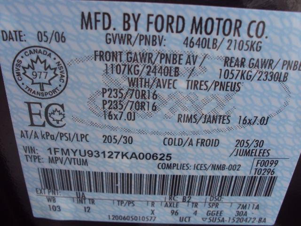 1FMYU93127KA00625