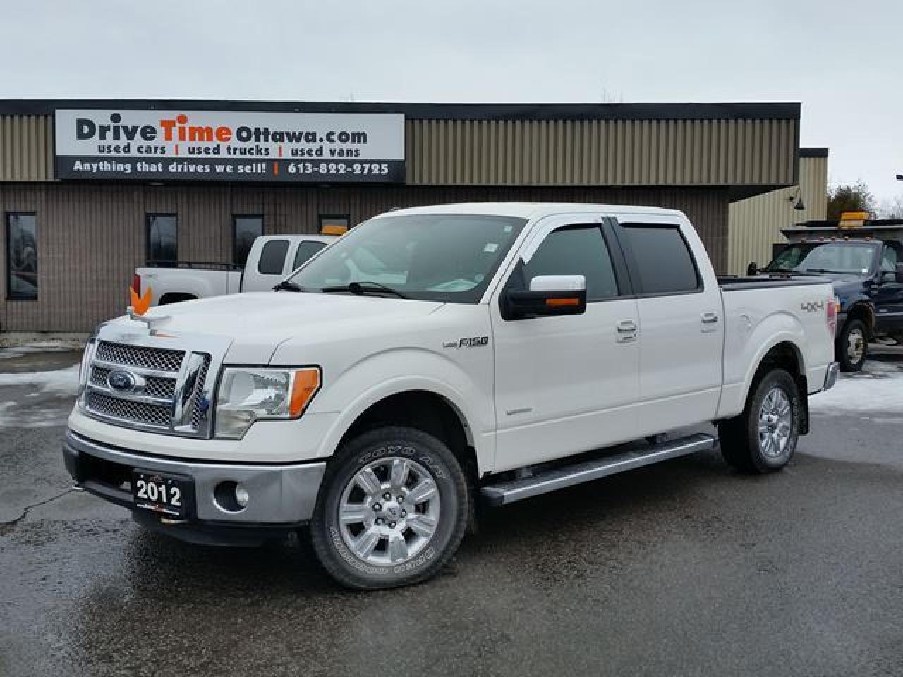CHOCOLATE WHITE LARIAT, LOOKS AND DRIVES AND WAS MAINTAINED IMMPECIABLE . BLACK LEATHER POWER HEATED AND A/C SEATS, CLIMATE CONTROL, SYNC, NICE CHROME PACAGE WITH CHROME WHEELS, CHROME GRILL, CHROME RUNNING BOARDS. THIS TRUCK MUST BE CHECKED OUT NOT A CLEANER OR NICER LOOKING ONE AROUND. QUICK AND EASY FINANCING.. DRIVETIMEOTTAWA.COM, DRIVE4LESS. *TAXES AND LICENSE EXTRA. COME VISIT US/VENEZ NOUS VISITER!