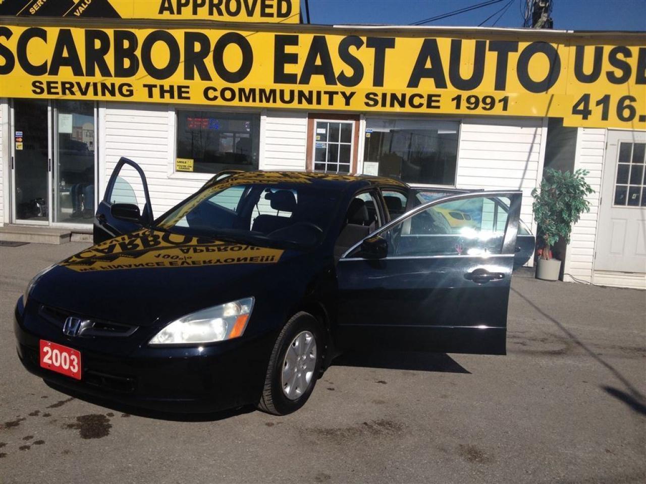 1YEAR WARRANTY,WE FINANCE EVERY ONE , 23 YEARS SERVING THE COMMUNITY, 4162870020 ------------------------------------------------------------------------------------------------------------------------------------ 4D , 4 CY , AUTO , FULLY LOADED WITH COLD AIR CONDITION , BLACK EXTERIOR IN GREY INTERIOR , POWER WINDOWS , POWER DOOR LOCK , CRUISE CONTROL , TILT STEERING , POWER STEERING CONTROL , POWER AND HEATED MIRRORS , AM FM CD PLAYER , AND MUCH MORE , FULLY LOADED , CLEAN , LOCAL NEW CAR TRADE , LOOKS AND DRIVES LIKE NEW ------------------------------------------------------------------------------------------------------------------------------------ PLEASE MAKE SURE ALL INFORMATION AND OPTIONS ( AIR CONDITION) ARE CORRECT AND WORKING PRIOR TO PURCHASE , ADVERTISING COULD HAVE MISTAKES (COPY &PAST) PLEASE READ ALL DOCUMENTATION ( HISTORY ) AND BILL OF SALE , DUC FEE $495 WILL APPLY IN FINANCE DEALS , ALL FUNDS HAS TO BE CERTIFIED ONLY . *All Prices are unfit prices plus HST. Vehicle is not drivable if not certified and not E-tested. Certification available for $495 including a 36 day safety warranty., *Call now and book your appointment for a test drive.-.-. 416 287 002.-.-. no admin fee on any used vehicle purchase!.!.!.! Features include... At SCARBORO E AUTO LTD we try and make your dreams come true at www.scarboroeauto.ca Good credit, bad credit or no credit at all. Our team of finance managers have worked their magic arranging finance or a lease for many of scarboro e auto?s customers. scarbro e auto, used car and all makes certified used vehicle volume dealer is located in scarborough ( pickering boarder) 4663 Kingston roads. Just 2 lights east of morning side scarborough. Not far from pickering , Ajax, Whitby, Oshawa, Markham, Toronto, New market, Richmond hill, Thorn hill, Agincourt, Milliken, Malvern and much of the greater Toronto area or GTA. if you are looking for a used Honda civic, a used Honda , a used toyota , a used nissan, a used mazda, a used , a used suzuki, a used kia, a used subaru, a used ford,a used chevy,a used gmc, a used pontiac, a used buick, a used bmw , a used mercedes , a used vw , a used audi , a used van or truck. scarboro e auto is waiting for you with one of the largest inventories in the greater Toronto and Pickering area. scarboro e auto has a great selection of certified used vehicles. our certified used vehicles are listed in auto trader, Toronto?s kijiji and our own web site www.scarboroeauto.ca to be eligible as one of the oldest certified used car . scarboro e auto offer preferred finance rates, powertrain warranty, e tested, safety and certified. Come in or call us at 416 287 0020 and ask us about a used car , a used van, a used SUV. Do not wait for a Saturday sale to take advantage of one of the biggest selection of used low price cars, vans and used SUV's in Ontario. scaroboro e auto ltd is your best pick
