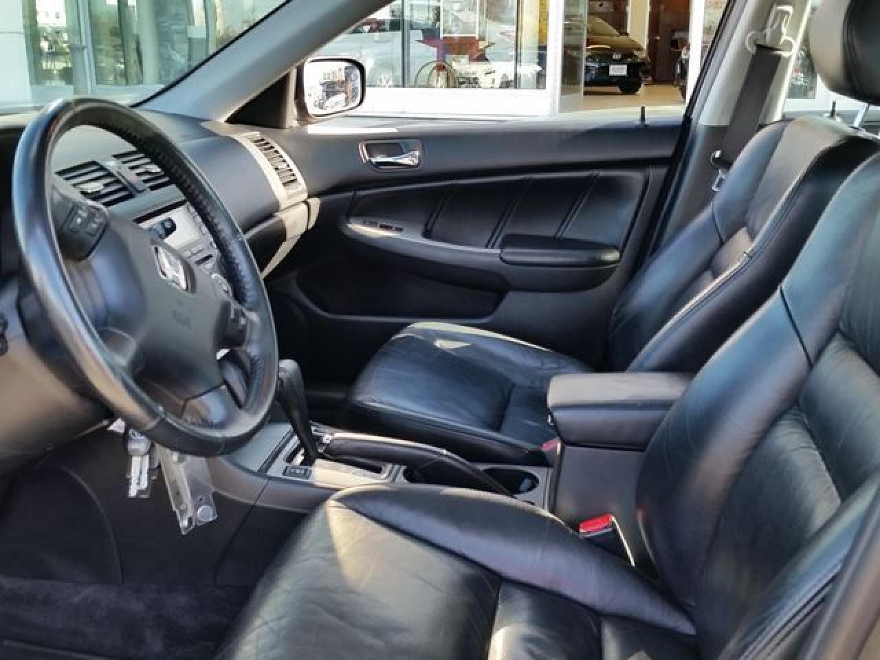 This "Graphite Pearl" 2004 Honda Accord is the EX-L Model. This vehicle was just traded in and is ACCIDENT-FREE! This Accord is nicely equipped with Custom Alloy Rims, Power Windows / Lock / Mirrors, Heated Seats, MoonRoof, Leather Seats, Cruise Control and more! Recent Reconditioning on this vehicle includes a FRESH Oil Change, NEW Engine Air Filter, NEW Rear Wheel Bearing, NEW Front Brake Rotors and NEW Rear Brake Rotors. This vehicle is being offered full Dealer Certified and E-Tested. Call in for more information and to book a Road Test Today!